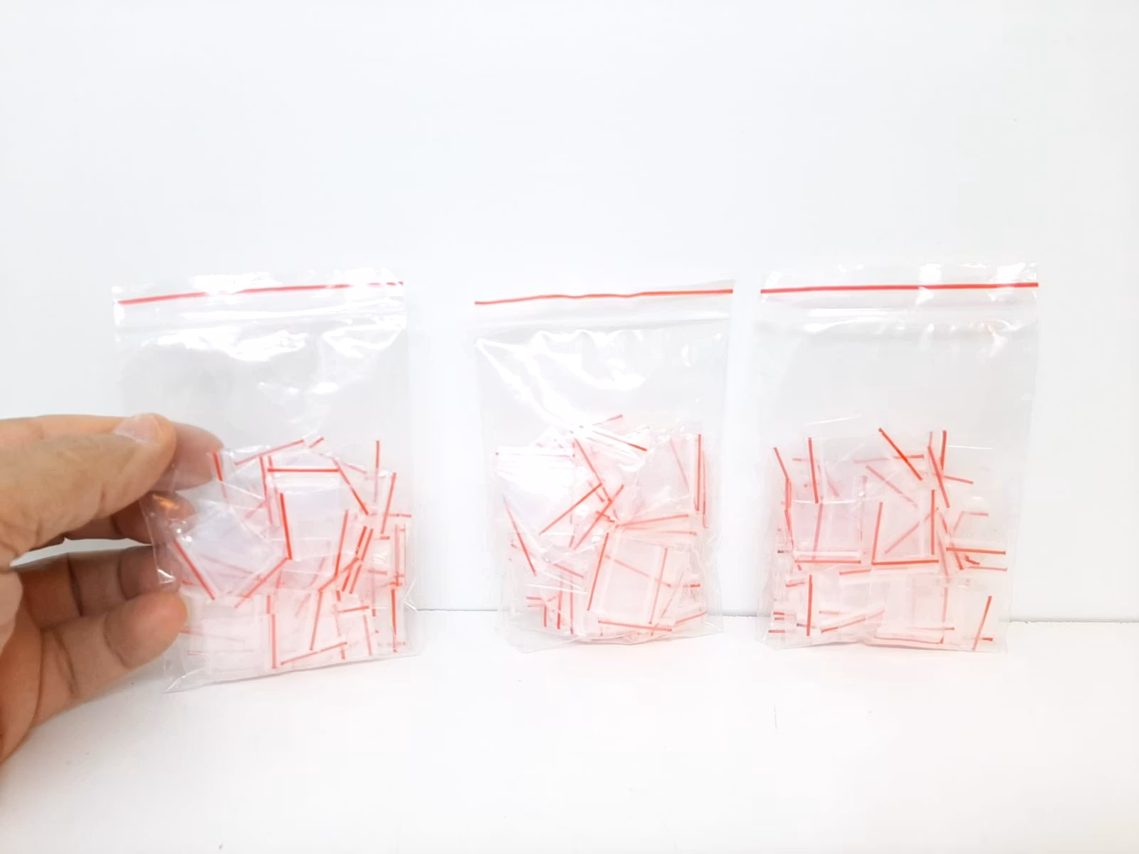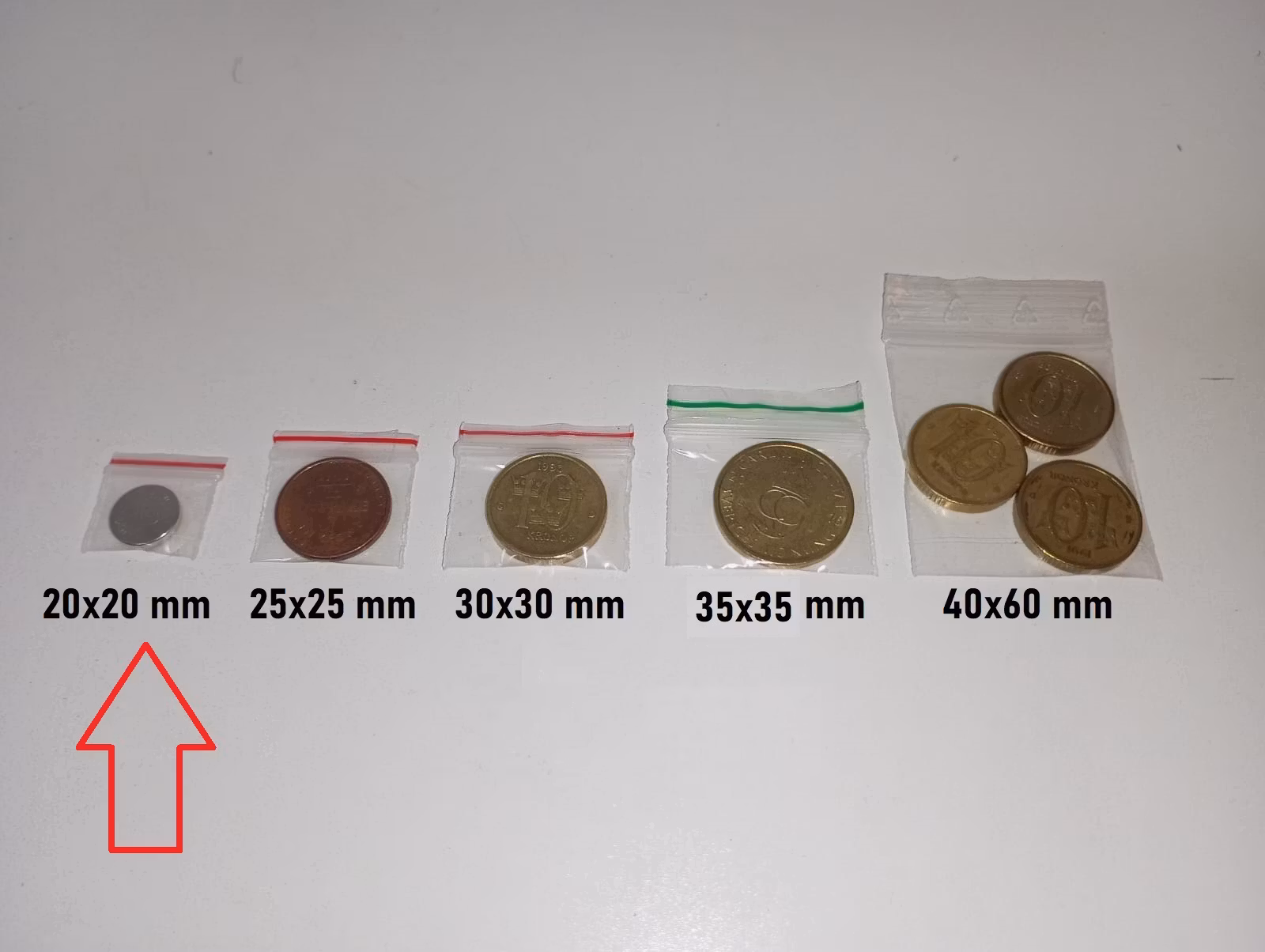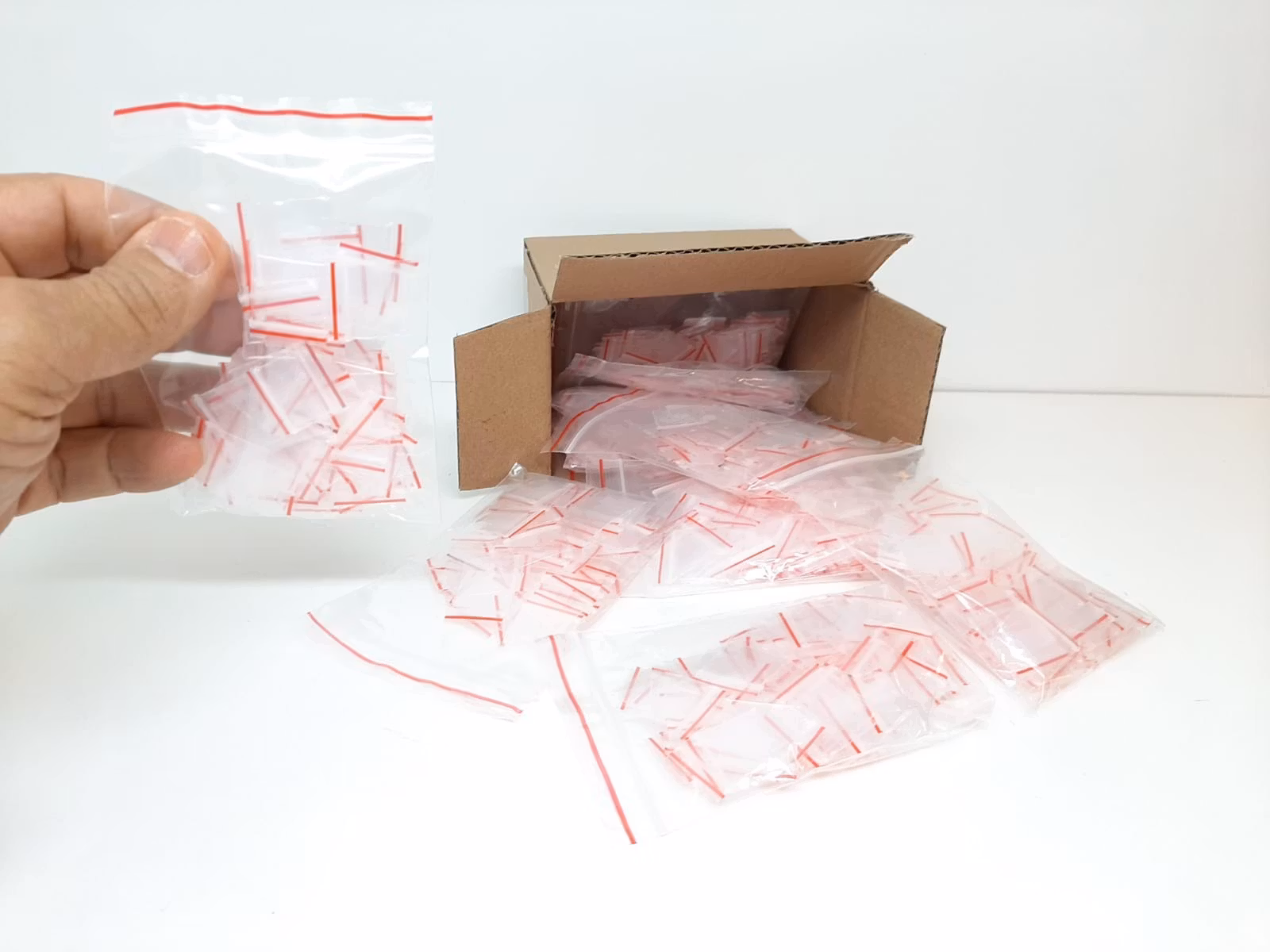 Du köper blixtlåspåsar / zippåsar av storleken 20x20 mm. Du köper 3 buntar, där varje bunt innehåller 100 påsar (totalt köper du 300 påsar).