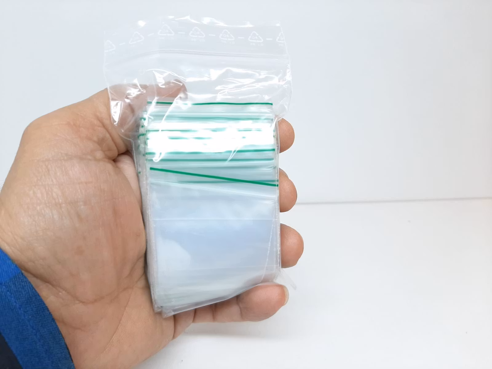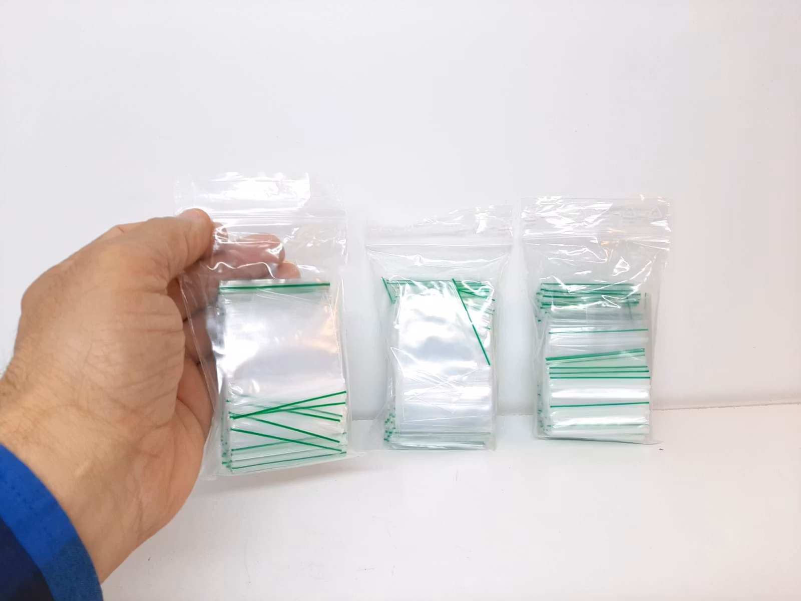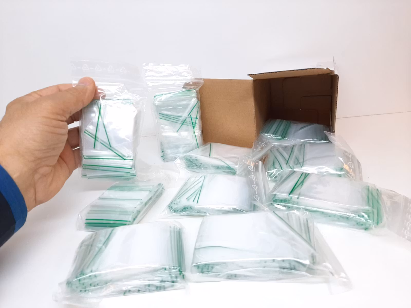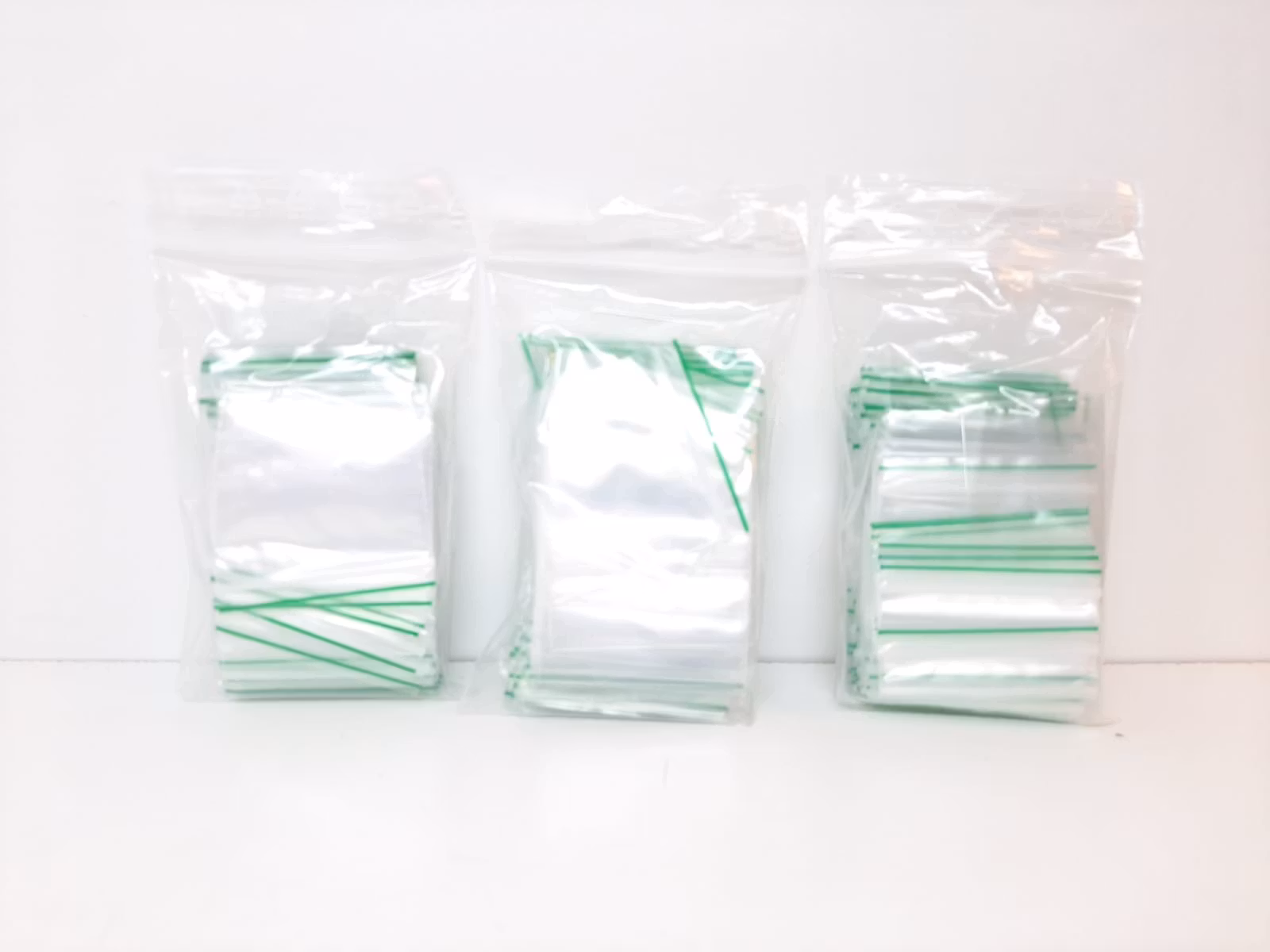 Du köper blixtlåspåsar / zippåsar av storleken 50x50 mm. Du köper 3 buntar, där varje bunt innehåller 100 påsar (totalt köper du 300 påsar).