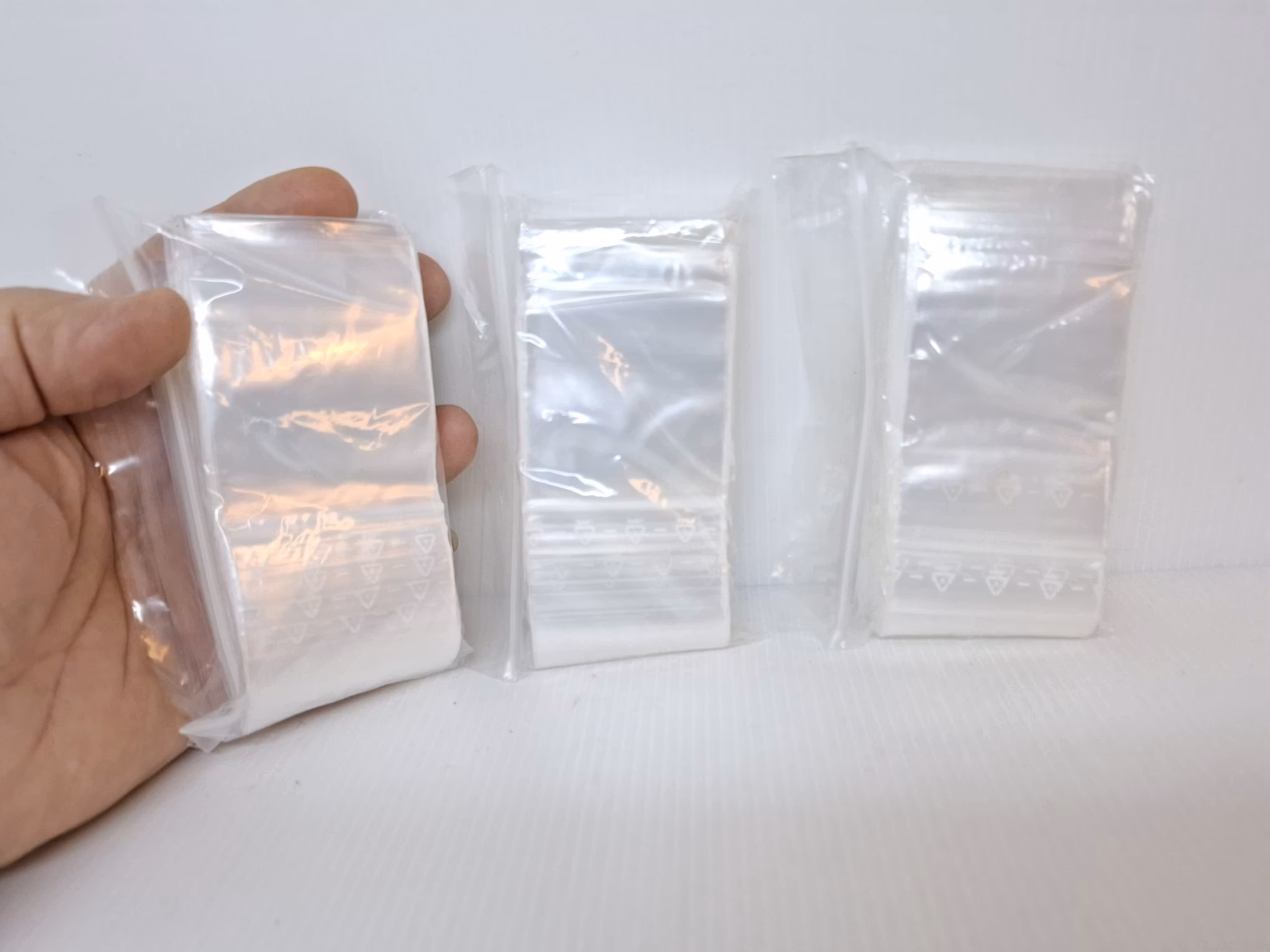 Du köper blixtlåspåsar / zippåsar av storleken 50x70 mm. Du köper 3 buntar, där varje bunt innehåller 100 påsar (totalt köper du 300 påsar).