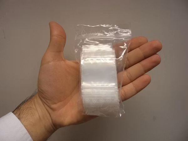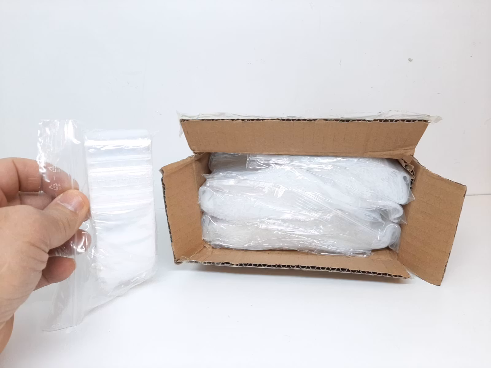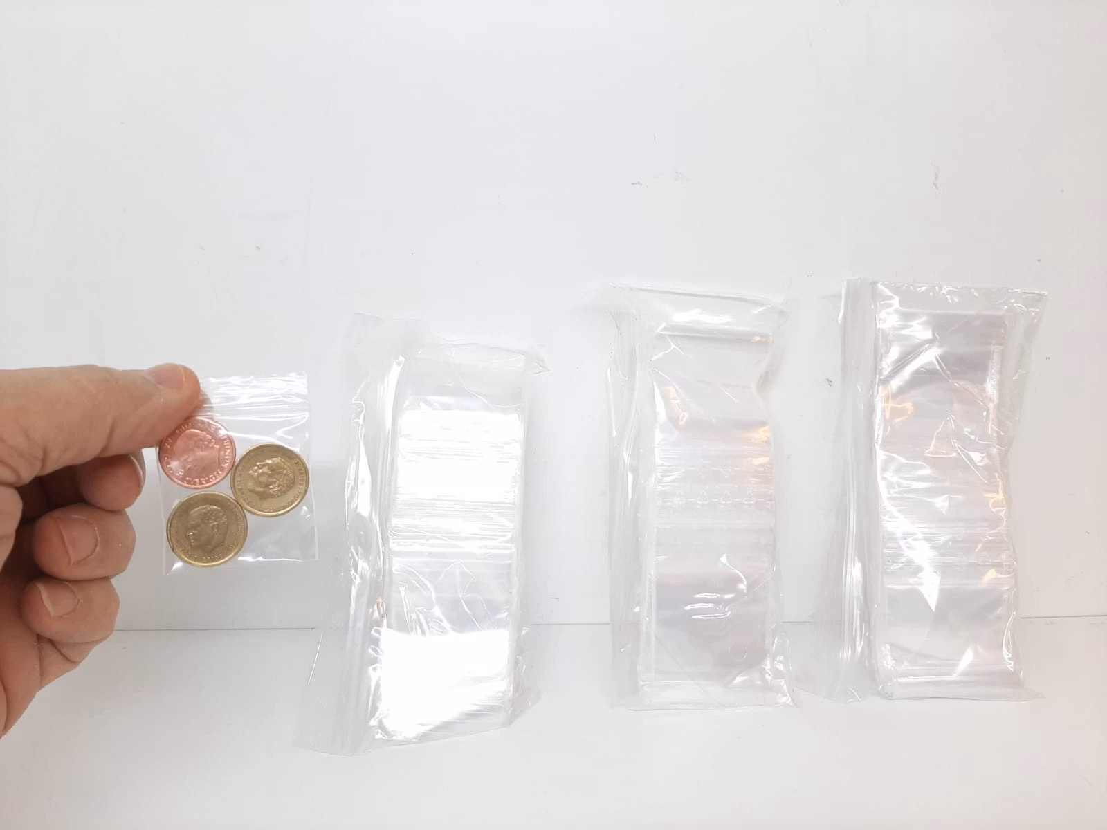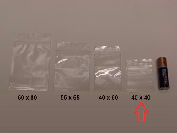 Du köper blixtlåspåsar / zippåsar av storleken 40x40 mm. Du köper 3 buntar, där varje bunt innehåller 100 påsar (totalt köper du 300 påsar).
