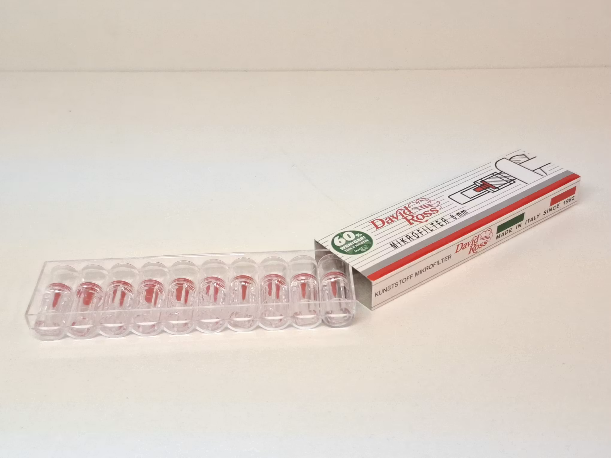 Du köper 5 paket filtermunstycken av det italienska märket David Ross.