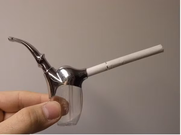 Du köper ett cigarett munstycke som har en behållare. I behållaren kan du lägga vätska som exempelvis vatten, coca cola, fanta, eller annan vätska för att ge mer smak till cigaretten!