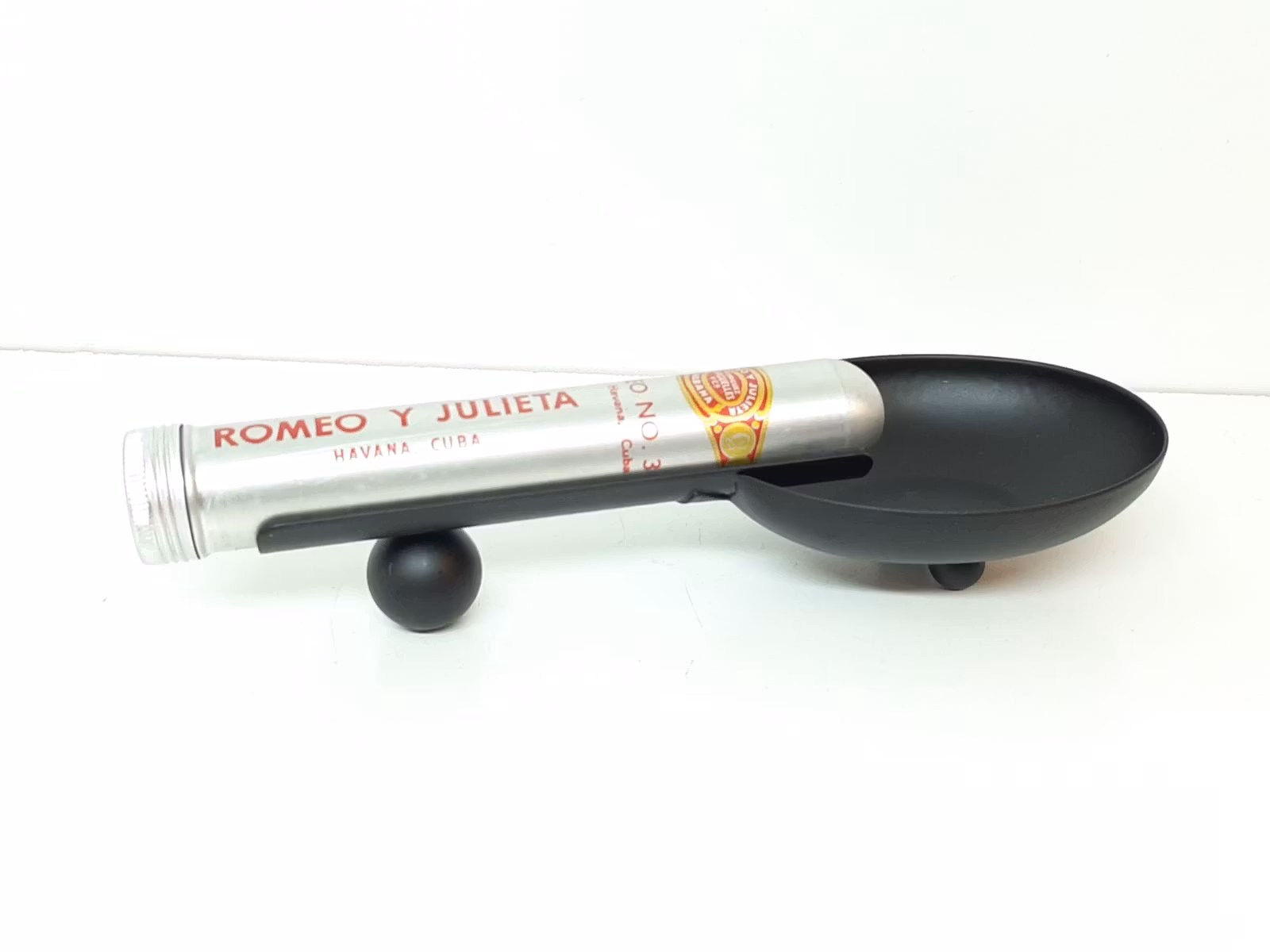 1) En cigarr askkopp / ett ask fat av märket Angelo som har plats för en cigarr. Den är gjord av plåt och väger ca 85 gram. Den är ca 15.5 cm lång.