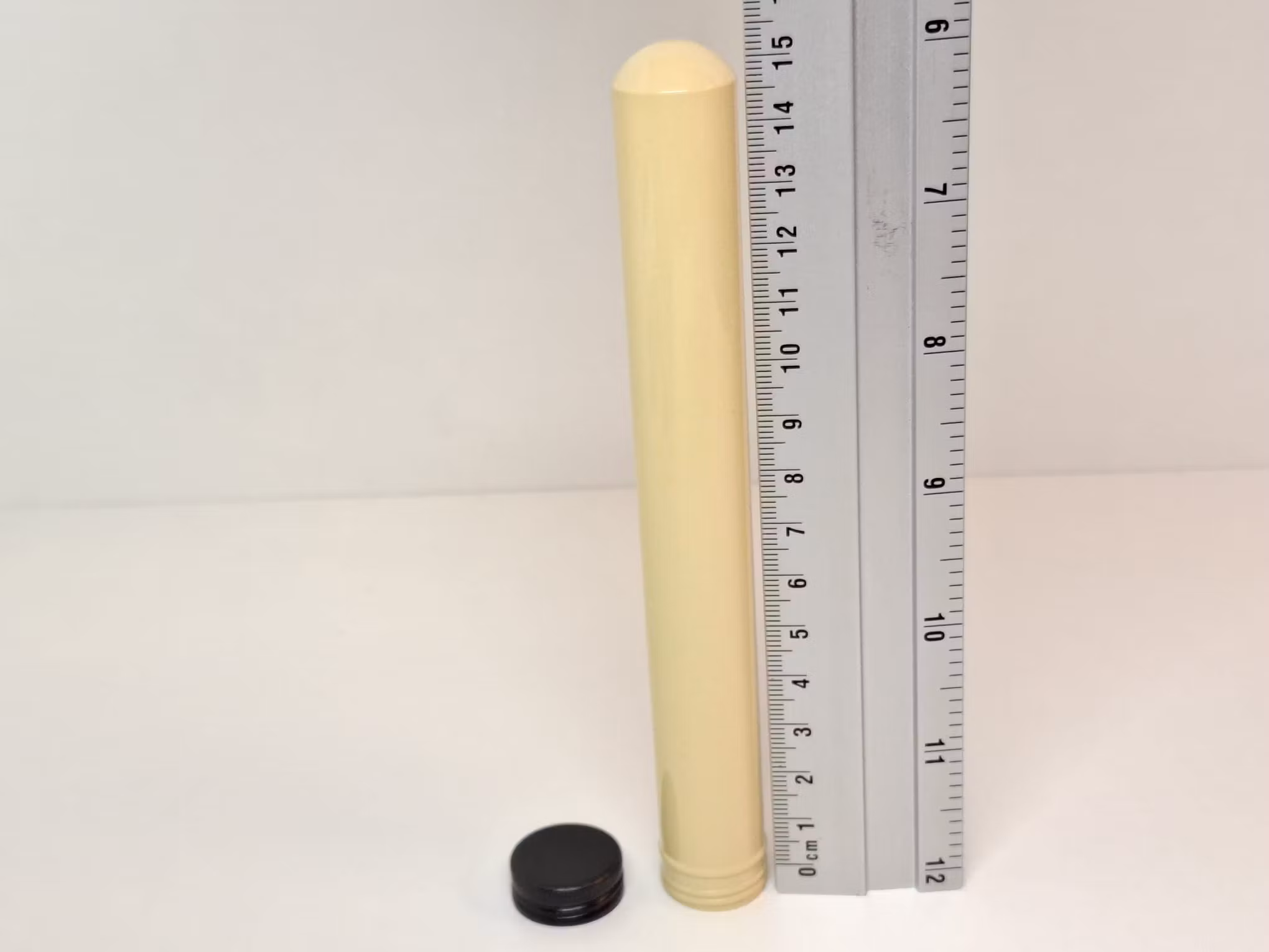 3) En tom cigarrtub i aluminium. Tuben är ca 16 cm lång och har en inre diameter på ca 19 mm.