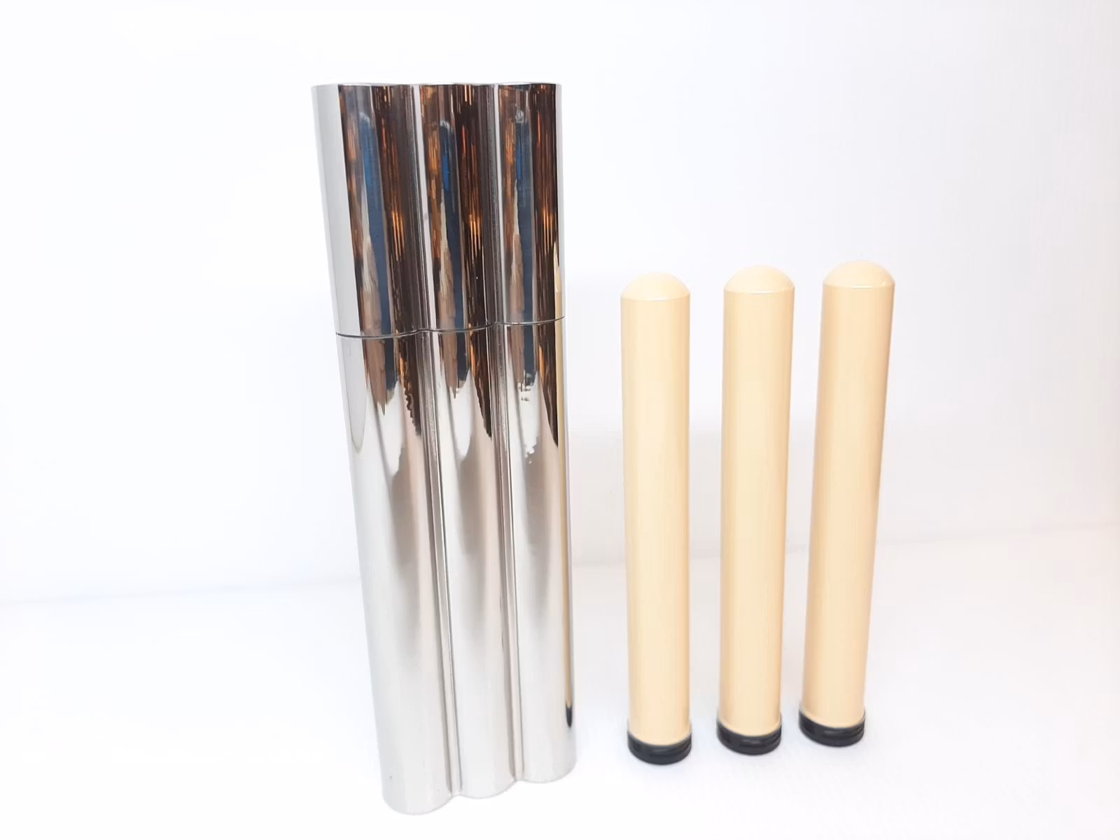 Vid köp av detta cigarrfodral så bjuder vi på tre stycken gula cigarrtuber. Dessa cigarrtuber är gjorda av aluminium. Varje tub är ca 16 centimeter lång och har en diameter på ca 19 millimeter (räknat i insidan av tuben).