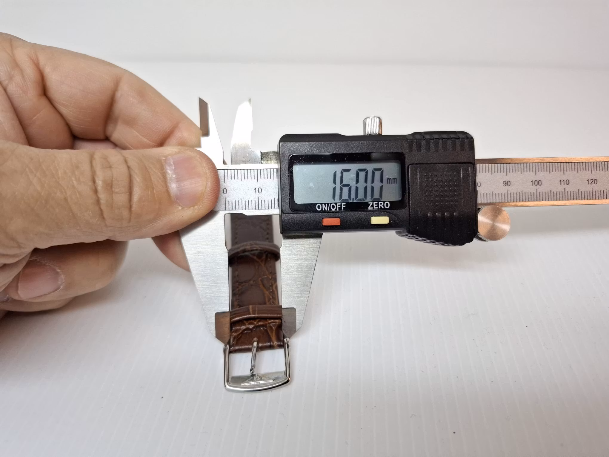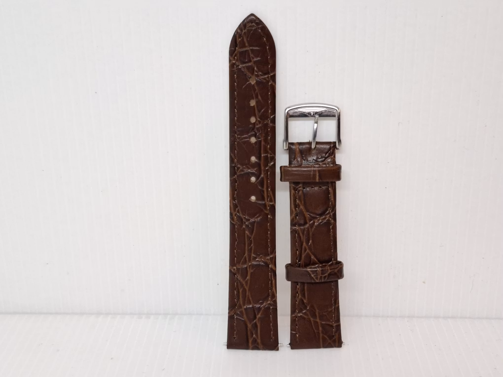 Du köper ett armband i brun färg. Armbandet är tillverkad av äkta läder (kalvskinn) i hög kvalité från Hong Kong. Armbandet har ett mönster som påminner om mönster som krokodiler har (se bilderna). På undersidan finns loggan LONGINES. Armbandet passar till både dam- och herrklockor. Bredden på armbandet är 18 mm och bredd vid spännet är 16 mm. Längd på armbandet (den långa delen) är ca 11 cm. Längden på armbandet (den korta delen) är ca 8 cm (inklusive spänne, se bild).