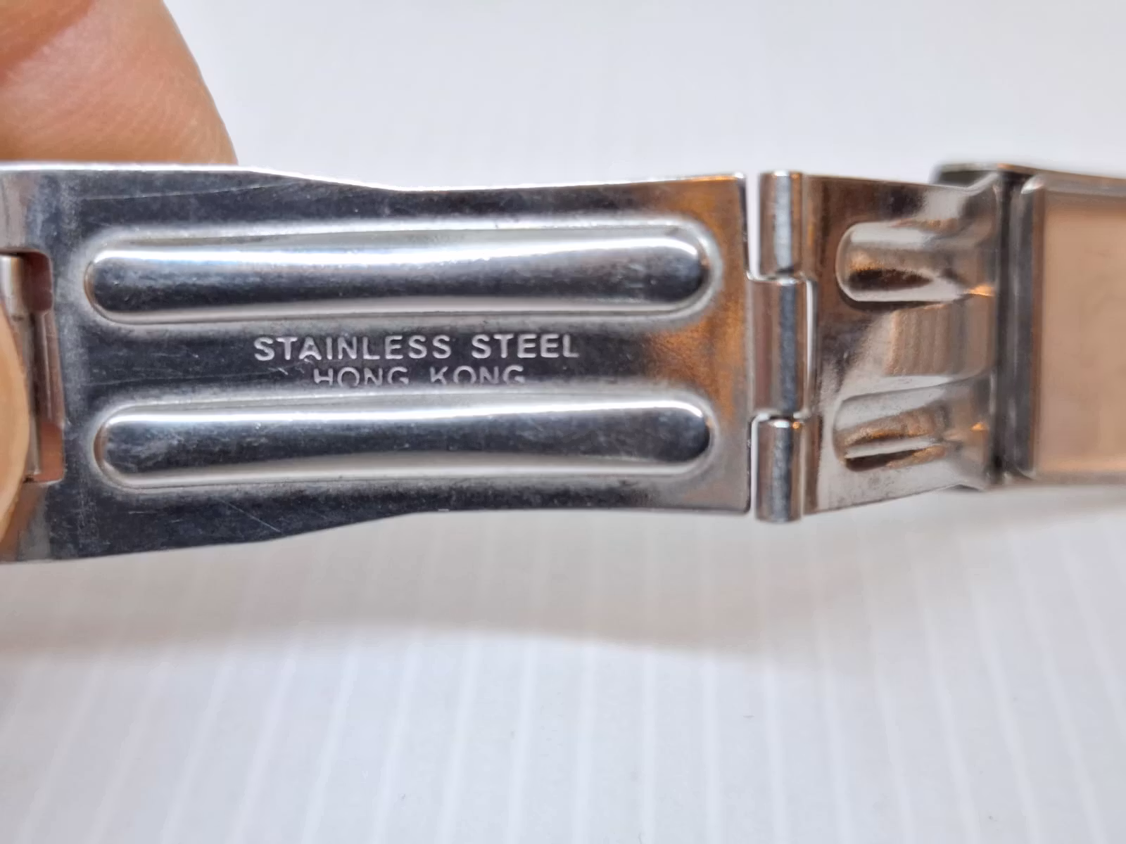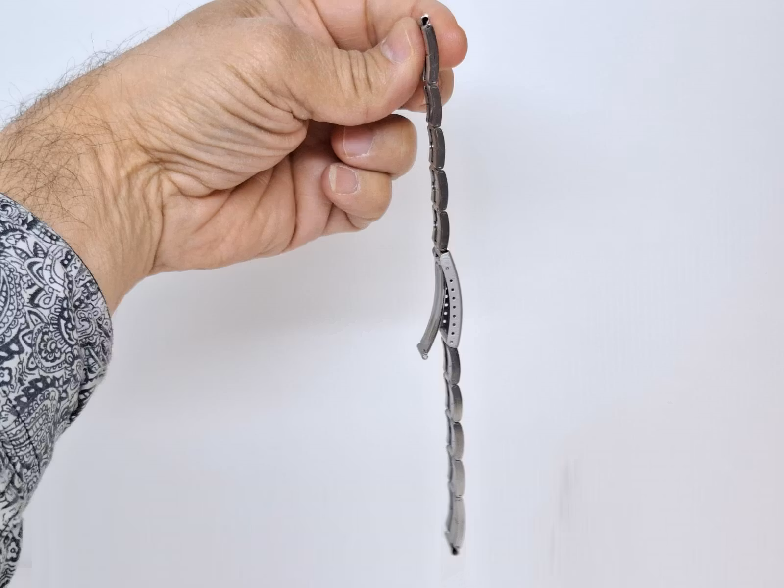 Du köper ett armband som är tillverkad av rostfritt stål. Den är tillverkad i Hong Kong. Det medföljer bandstift.