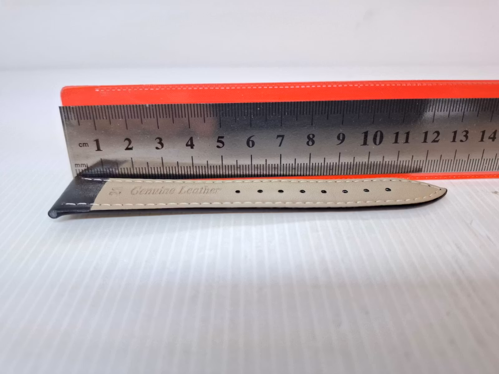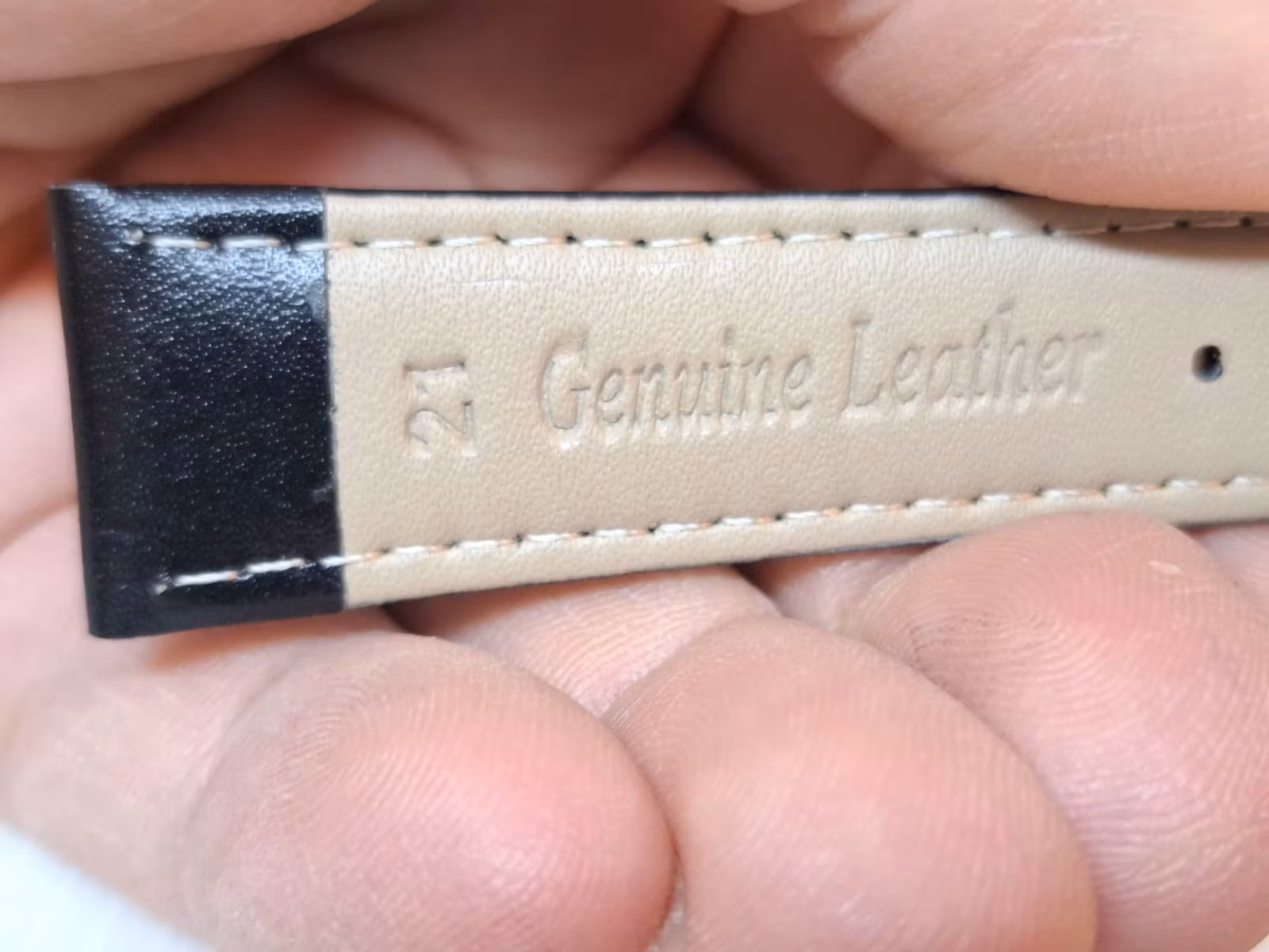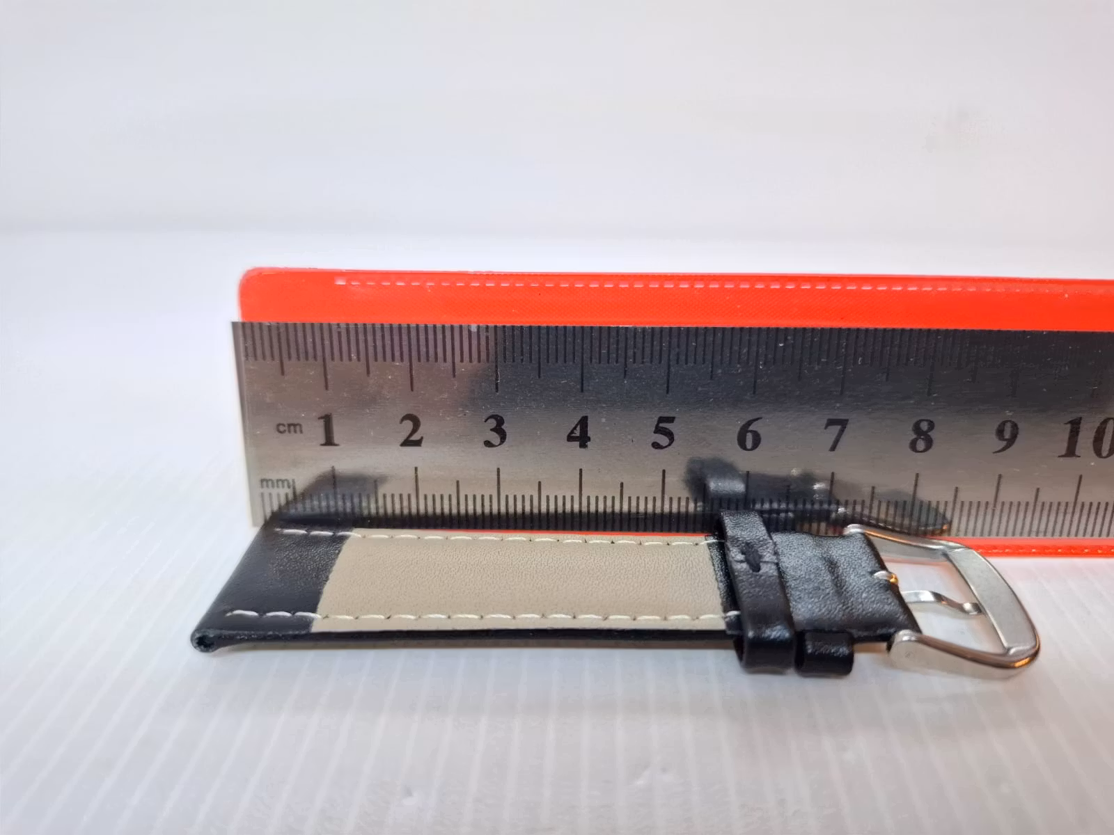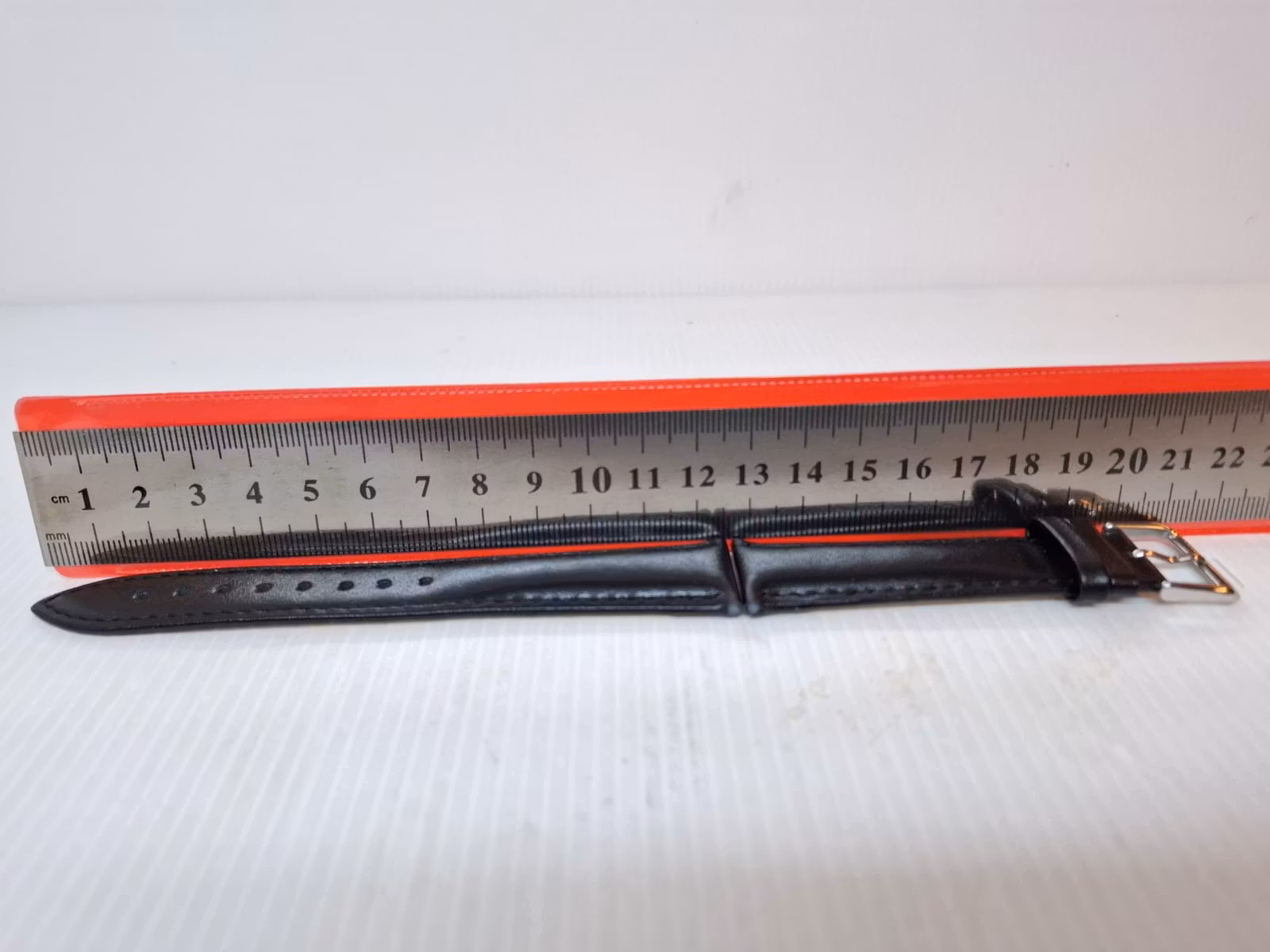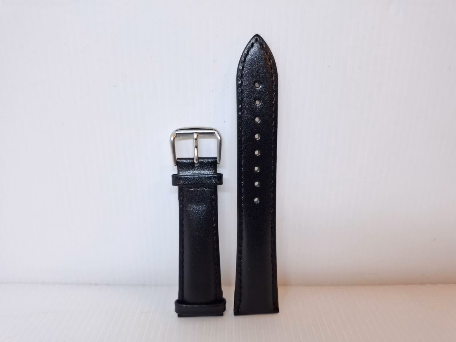 1) Ett armband i svart färg. Armbandet är tillverkad av äkta läder i hög kvalité. Det svarta armbandet har ett spänne i silver färg. Armbandet passar till både dam- och herrklockor. Bredden på armbandet är 21 mm och bredd vid spännet är 19 mm. Längd på armbandet (den långa delen) är ca 12 cm. Längden på armbandet (den korta delen) är ca 9 cm (inklusive spänne, se bild).