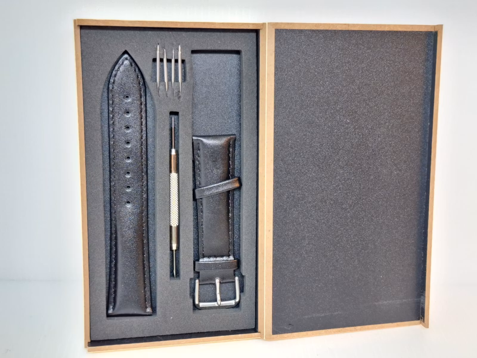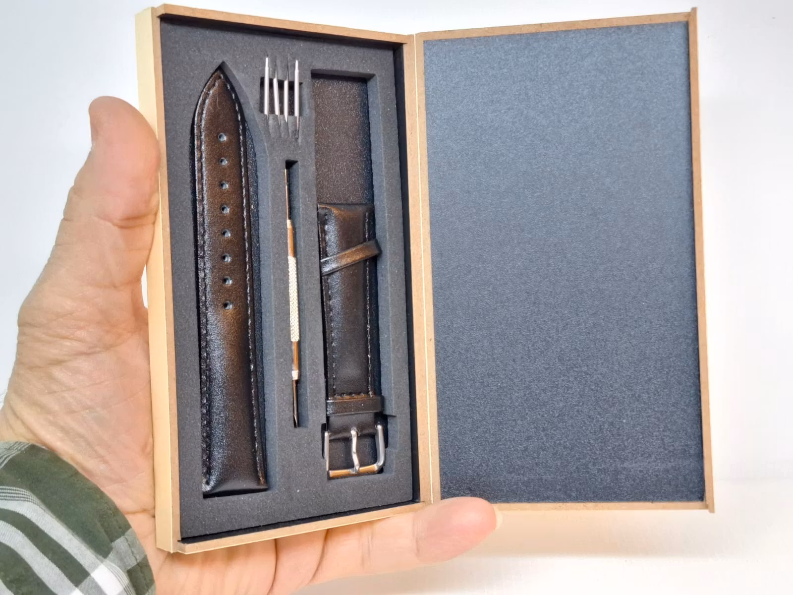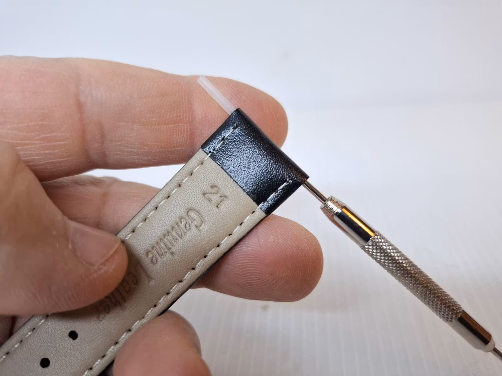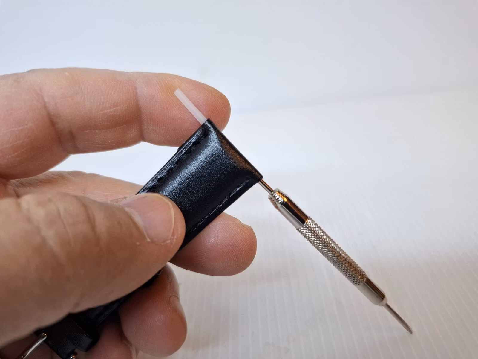 2) Ett bandstiftsverktyg. Detta verktyg är praktisk att använda vid byte av klockarmband på klockor. Verktyget har en så kallad svanhals och som används för att enkelt komma åt stift utan att skada bandet eller klockan. Verktyget är tillverkad i metall.