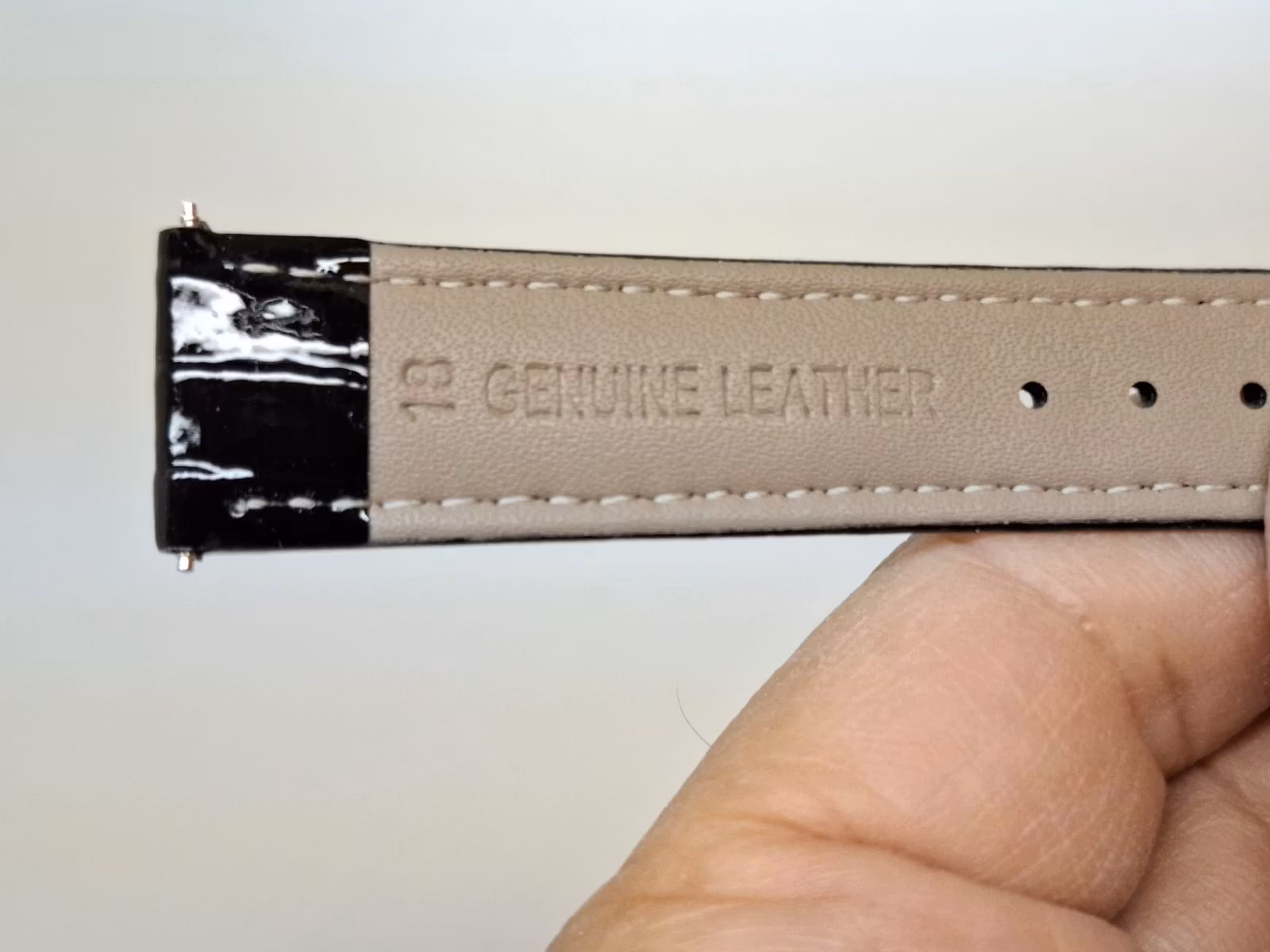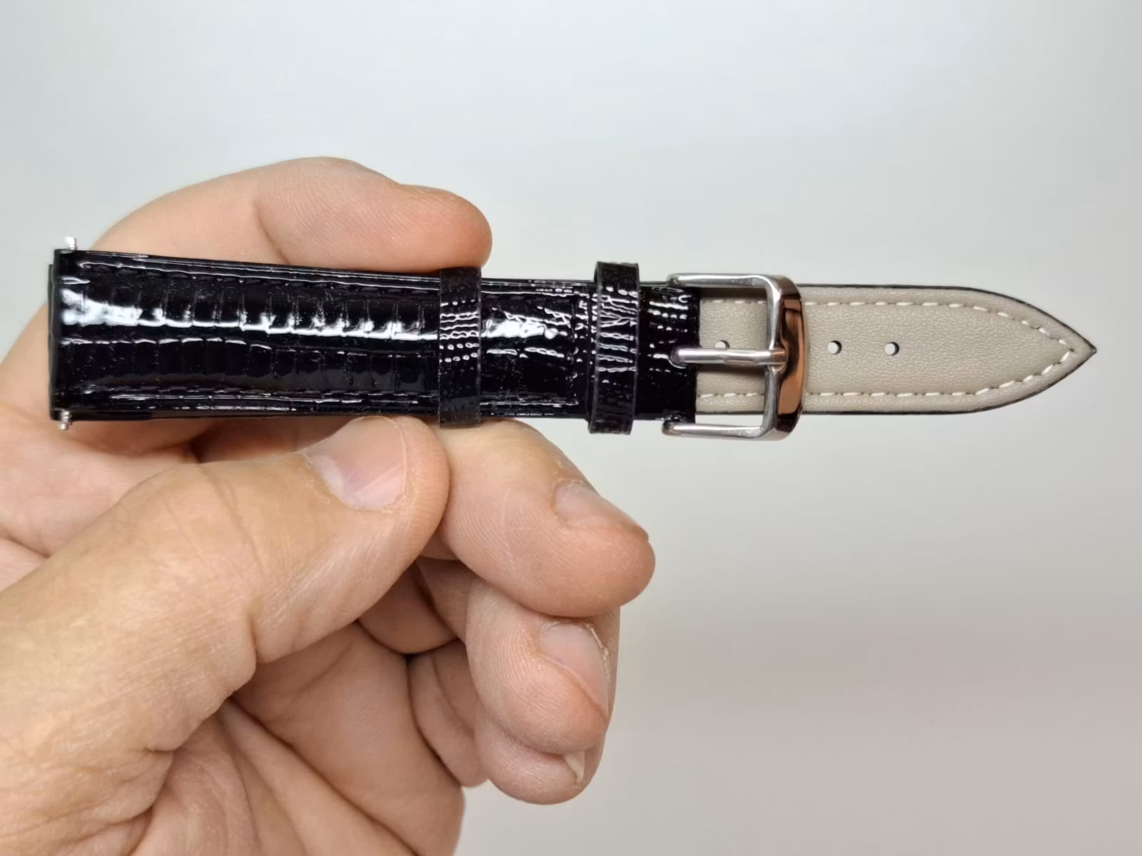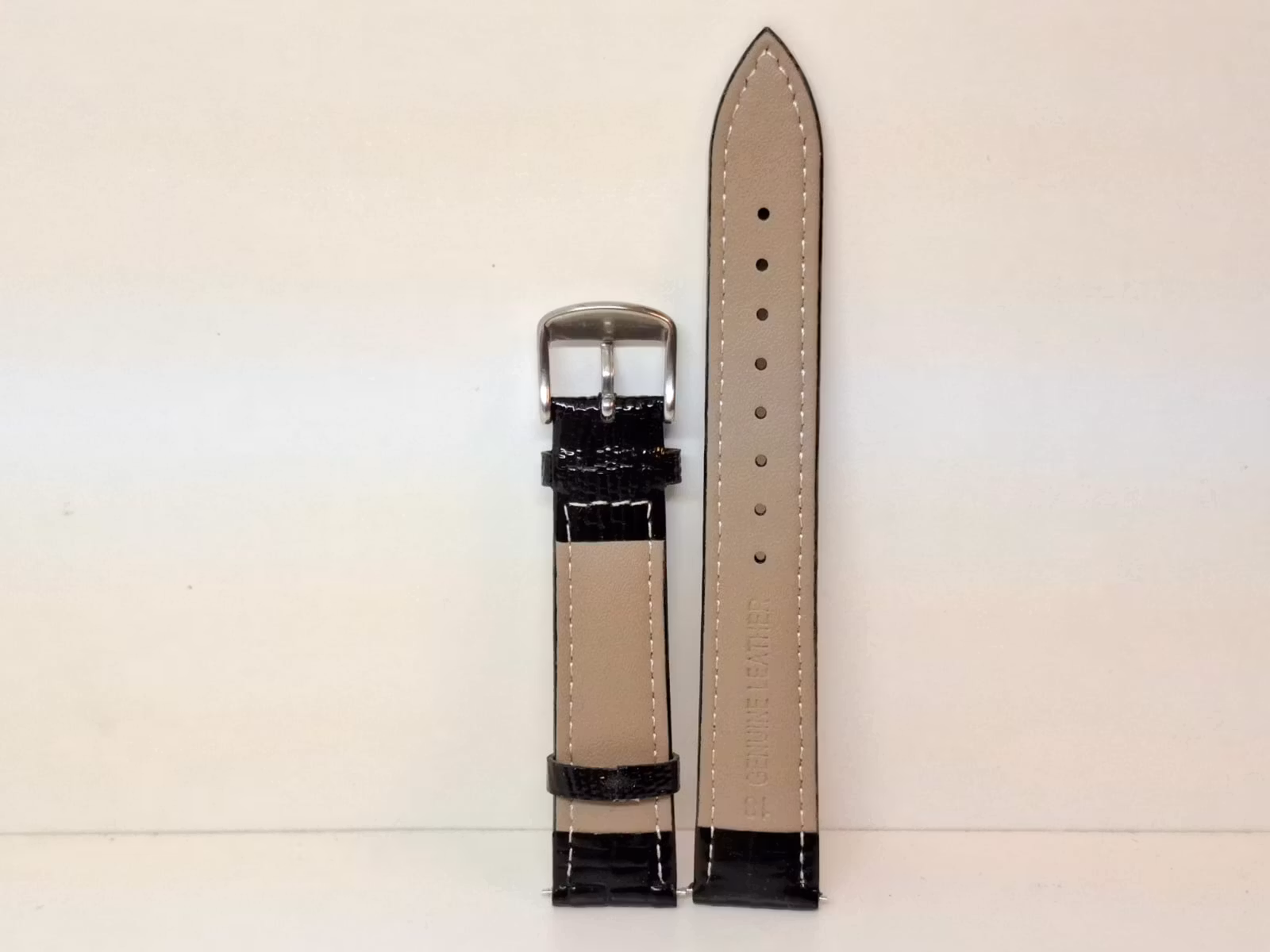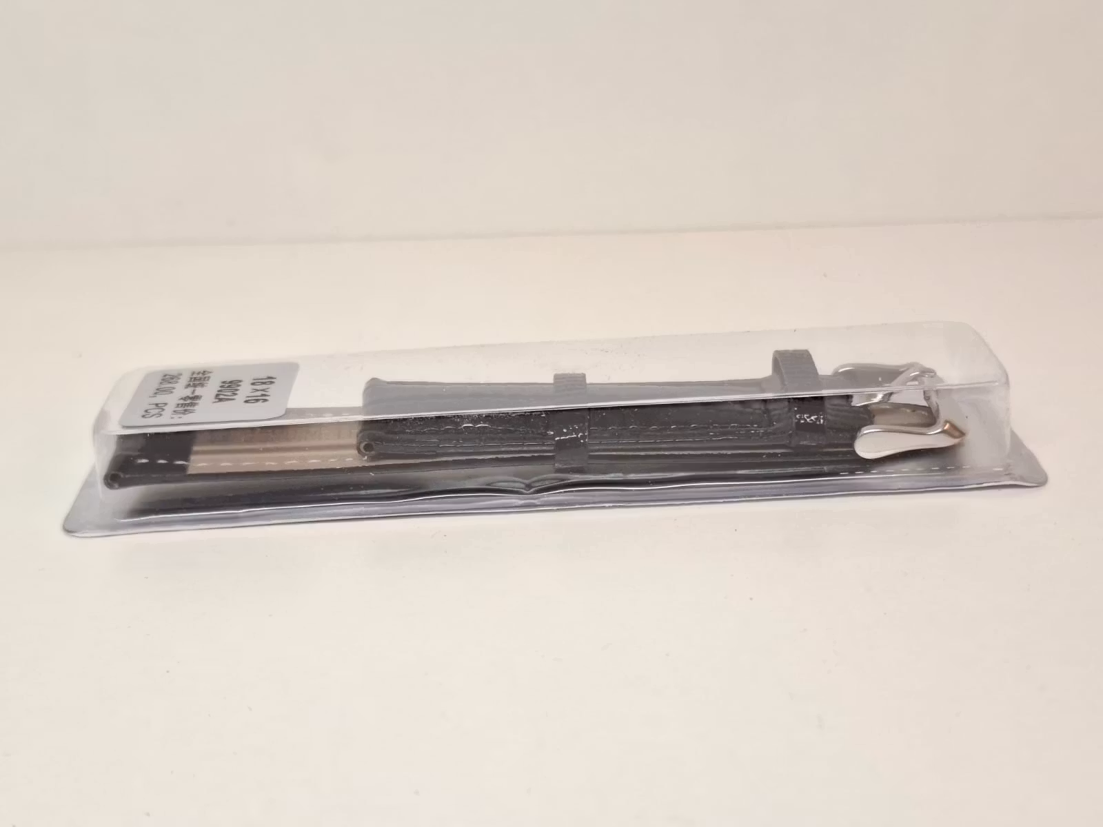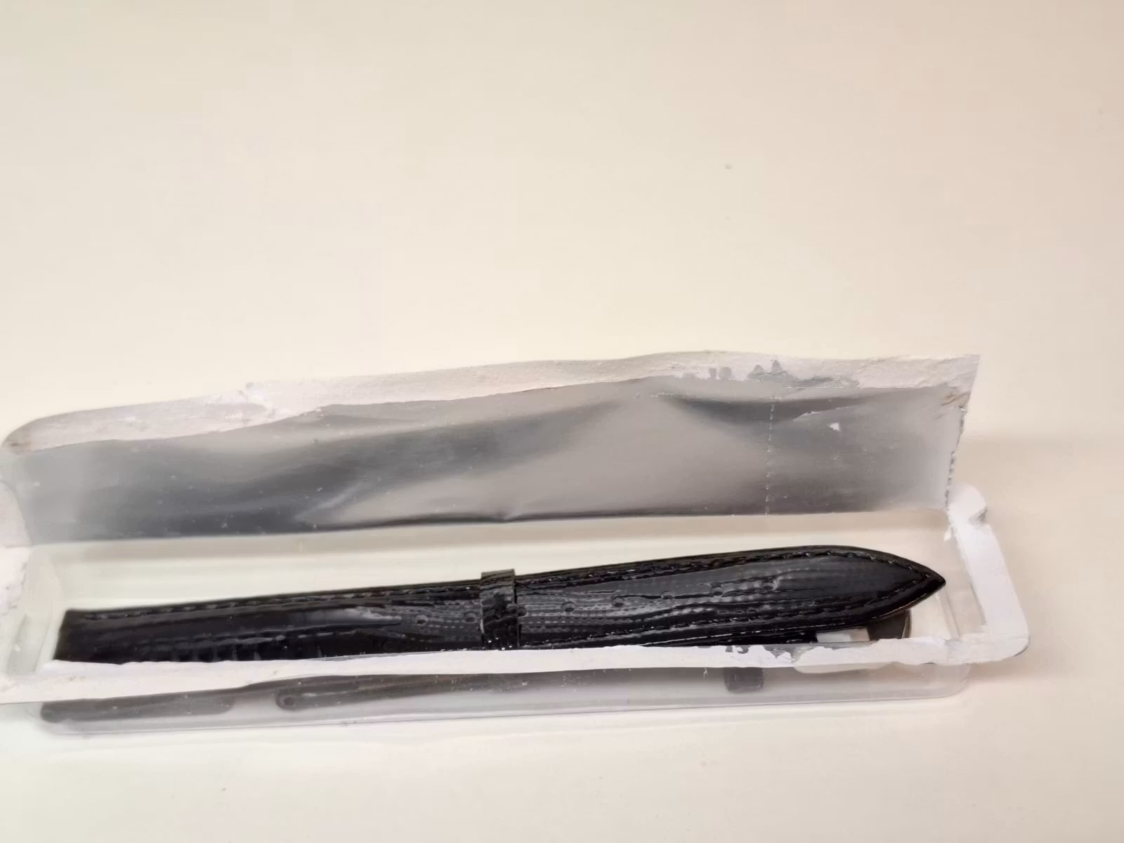Du köper ett armband som kommer i svart färg. Armbandet är tillverkad i Kina och är gjord av äkta läder. Armbandet har ett spänne i silver färg. Det medföljer bandstift till armbandet. Klockarmbandet kommer i sin förpackning (se bilder).