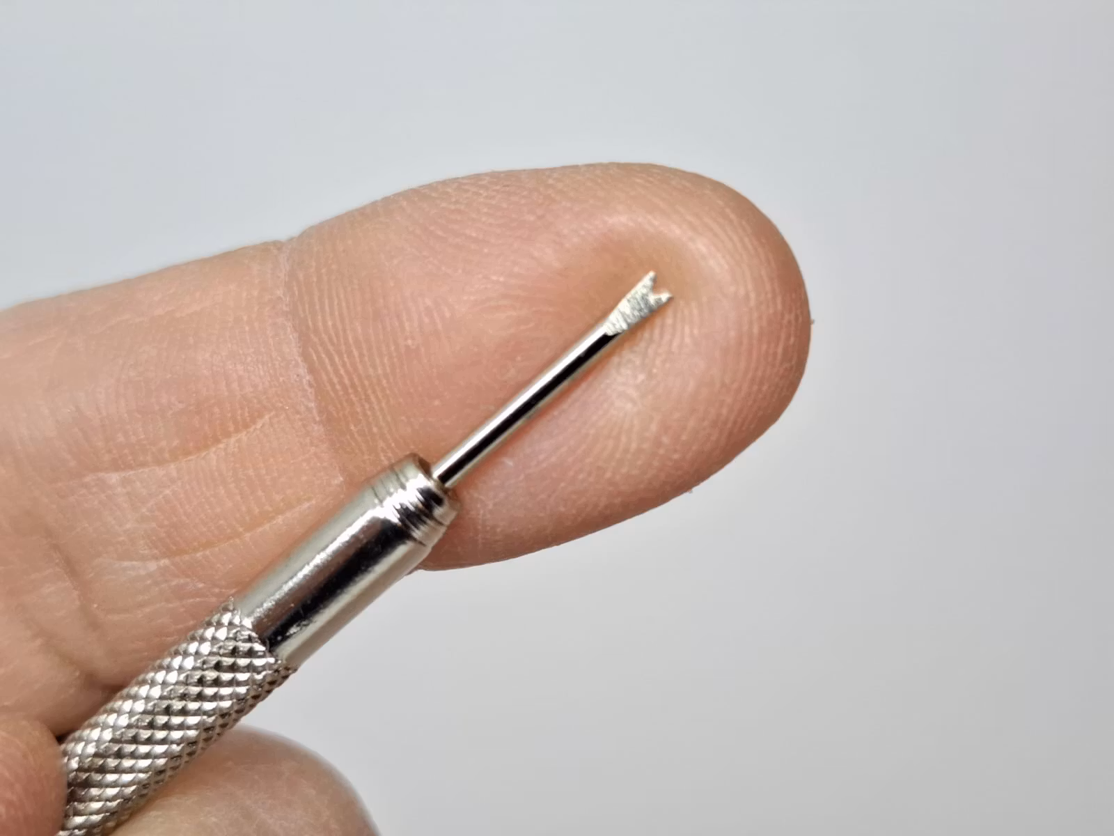 2) Ett bandstiftsverktyg. Detta verktyg är praktisk att använda vid byte av klockarmband på klockor. Verktyget har en så kallad svanhals och som används för att enkelt komma åt stift utan att skada bandet eller klockan. Verktyget är tillverkad i metall.