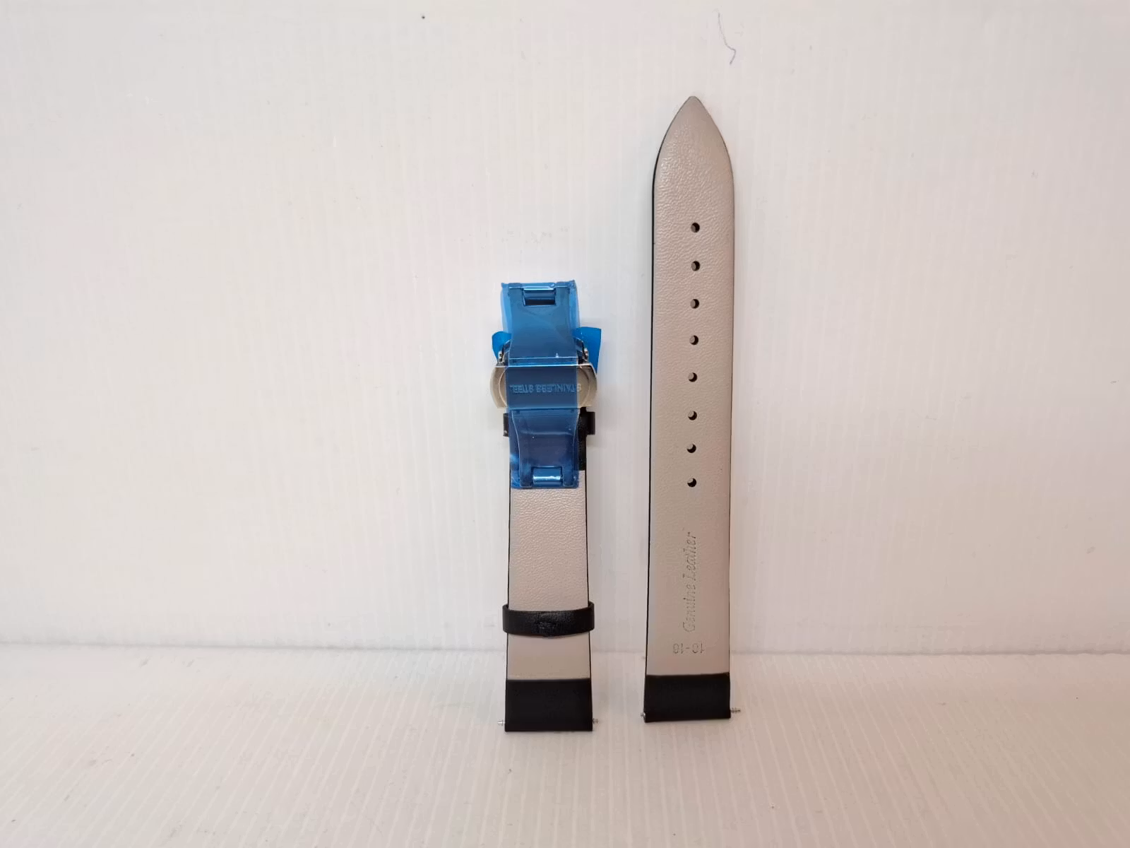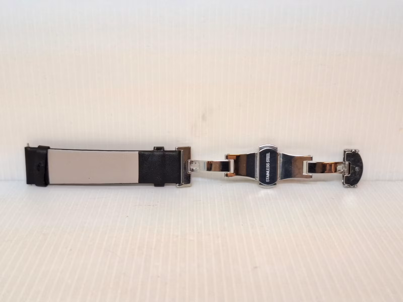 Du köper ett armband i svart färg. Armbandet är tillverkat i Hong Kong av äkta läder. Det svarta armbandet har ett spänne av rostfritt stål. Det medföljer bandstift.