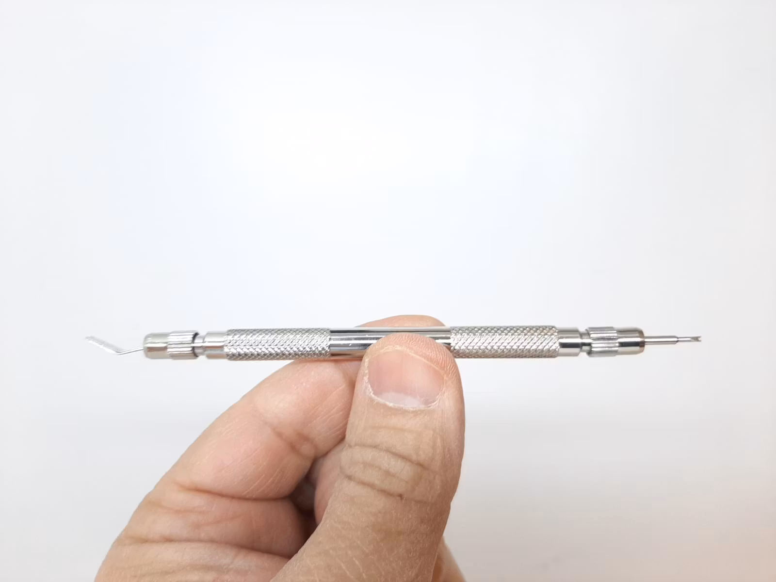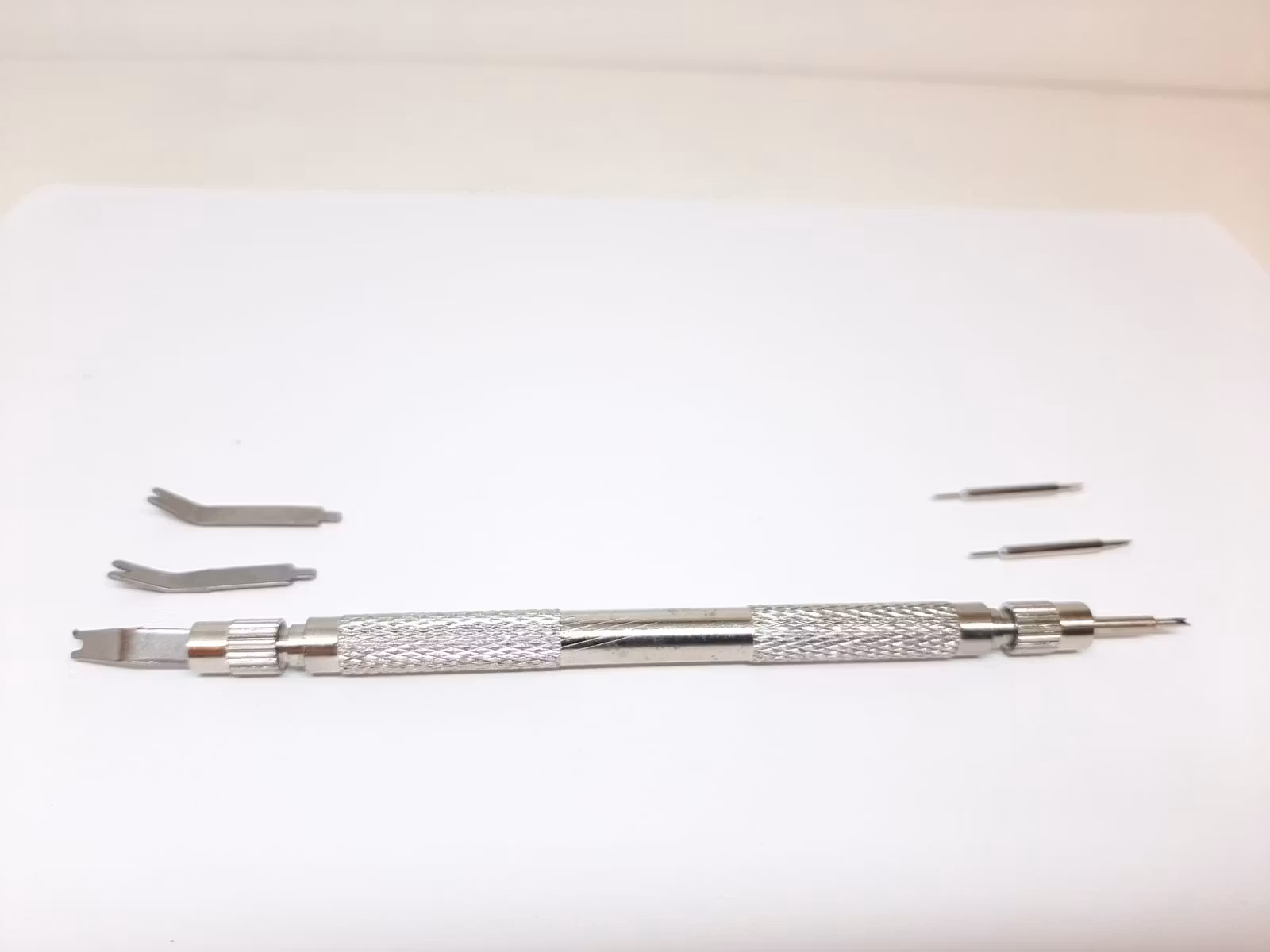 Verktyget har en så kallad svanhals och som används för att enkelt komma åt stift utan att skada bandet eller klockan.