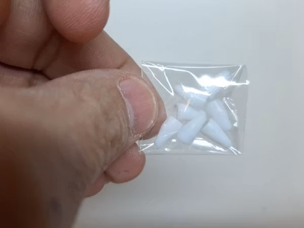 3) En påse med 7 stycken plasttoppar (eller don som de också kallas för). Dessa går att byta ut och fungerar som reserver till vispressarna.