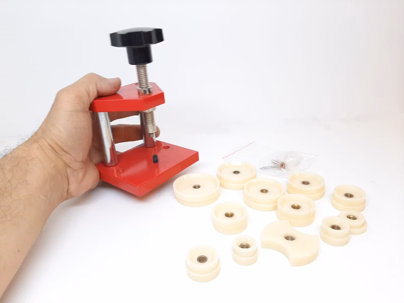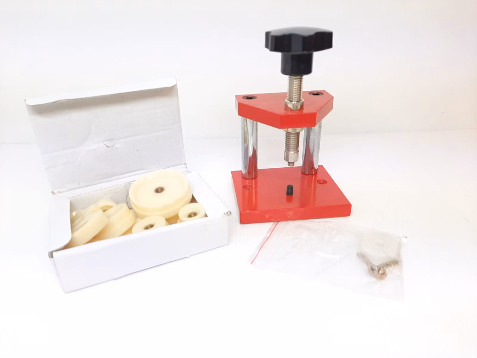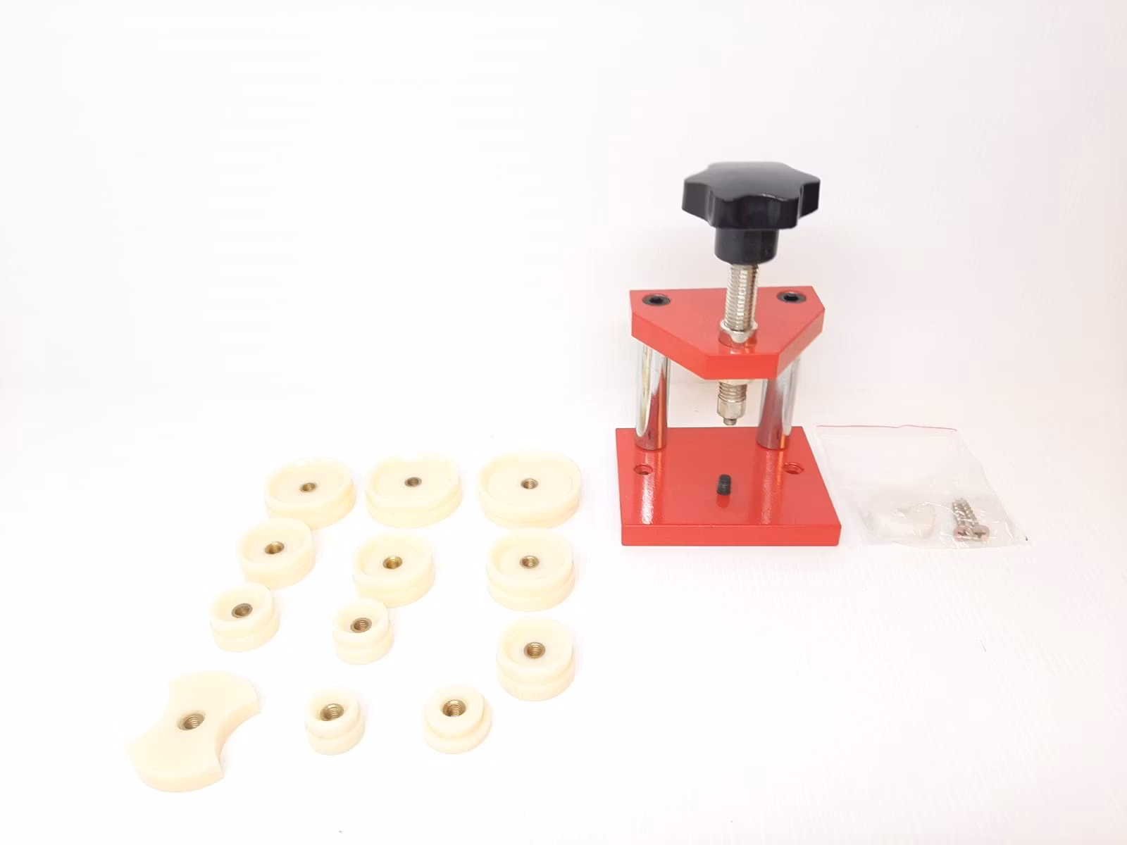 Du köper en boett press (ett verktyg för klocka och urmakeri) samt 12 stycken medföljande press plattor. Denna kraftiga boettpress används för enkel fastsättning av boetter på baksidor av klockor. På det sättet skadar man inte glaset. Pressplattorna är av nylon, för skonsam hantering av glaset. Boettpressen väger ca 700 gram. Produkten kommer i sin förpackning.