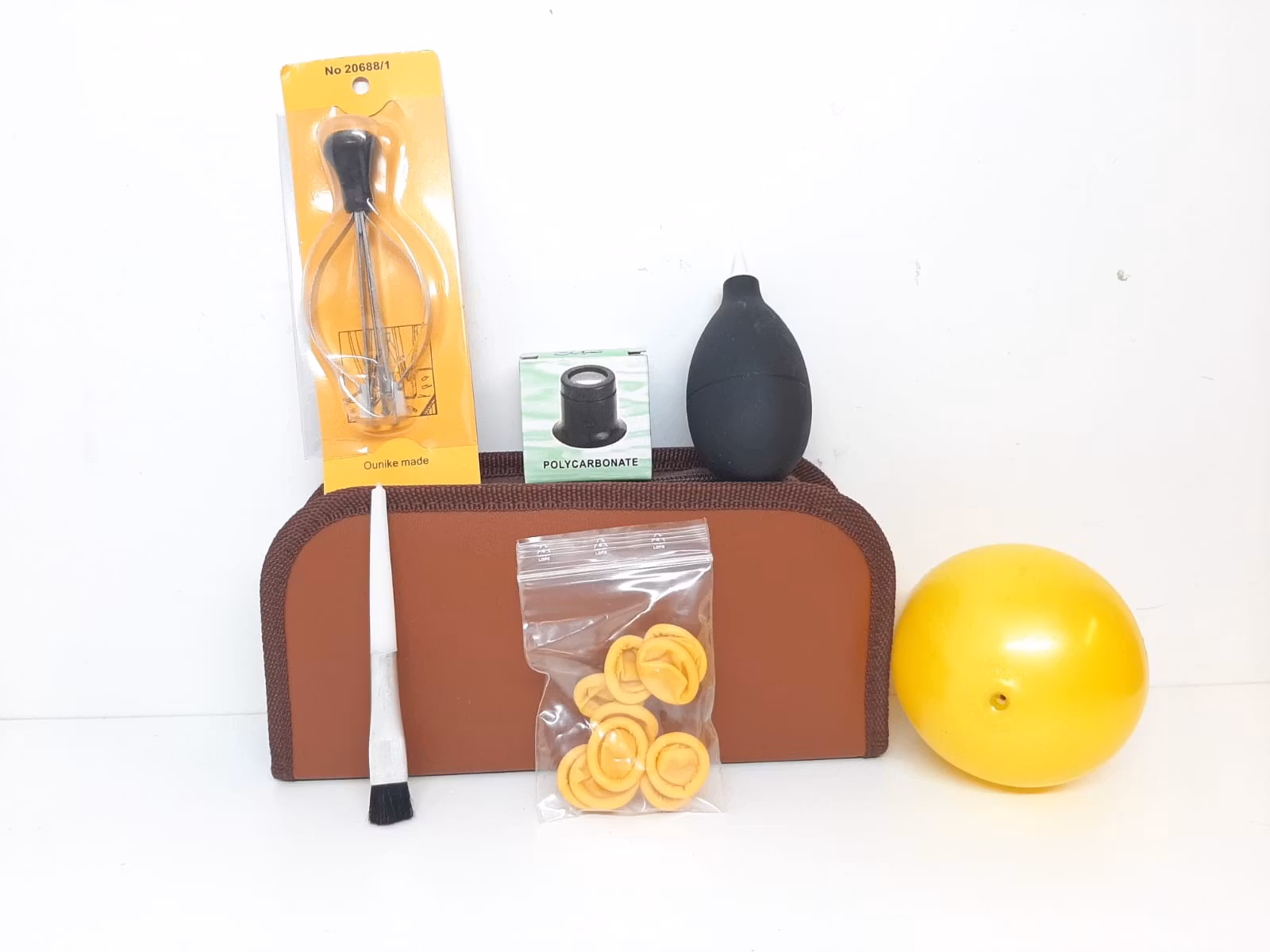 16) En dammblåsare (svart färg). Används för att blåsa bort damm utan att skada klockan
