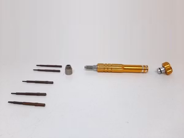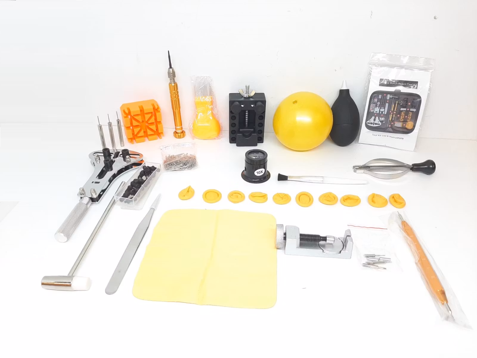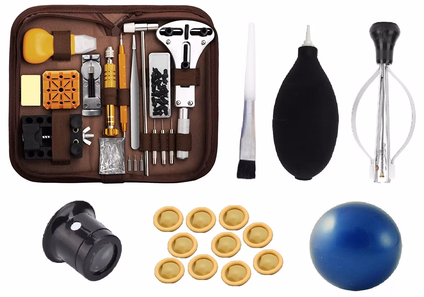 Du köper en väska (med dragkedja) som innehåller följande klockverktyg: