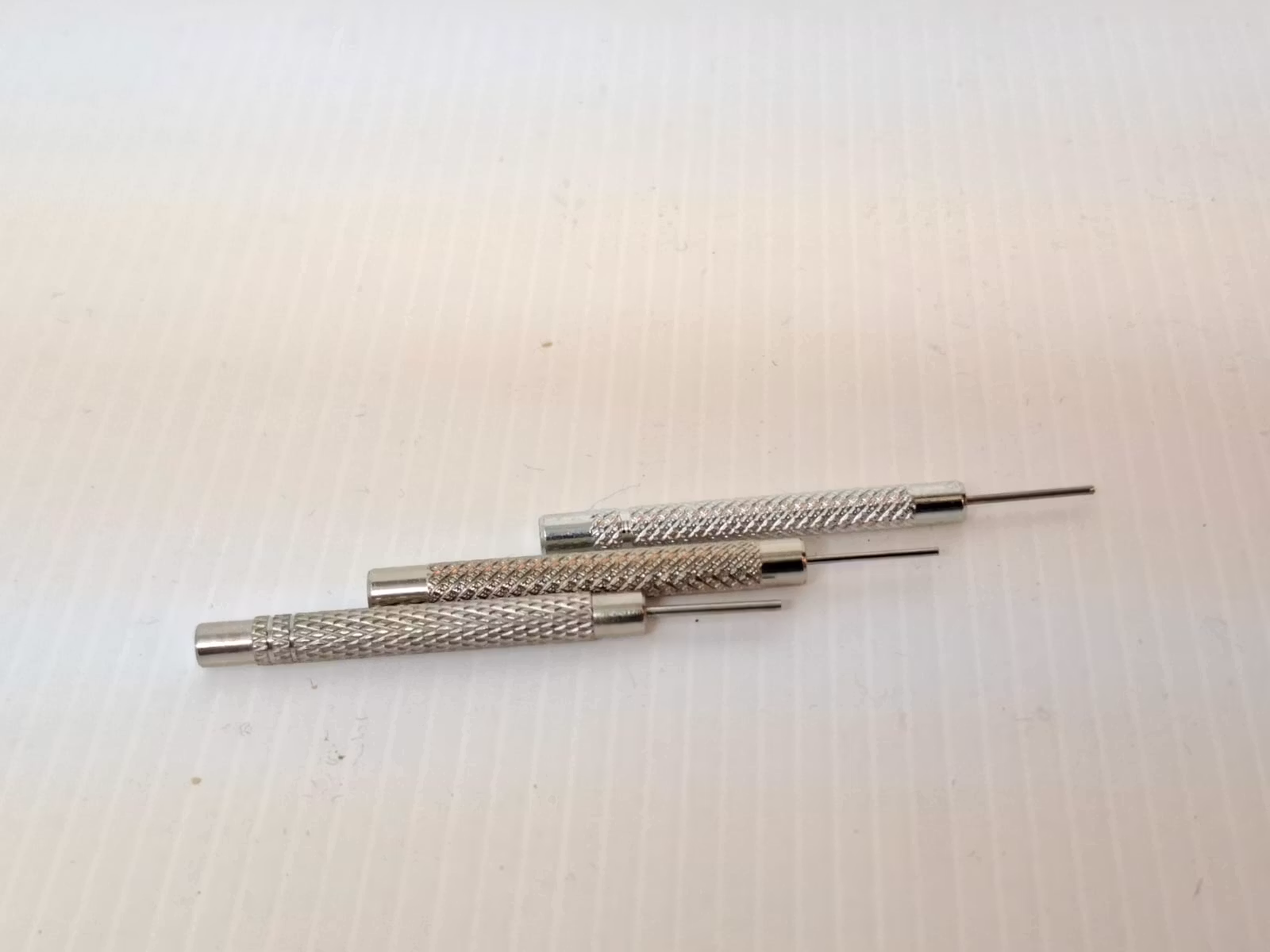 9) Tre stycken nålar som används för att ta bort länkar på metall-armband
