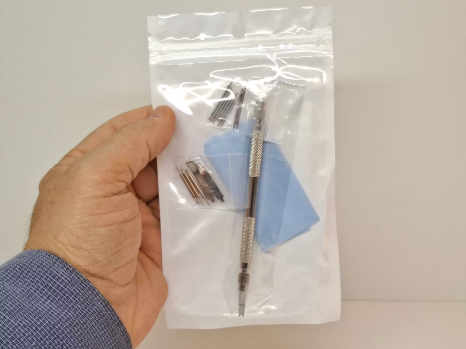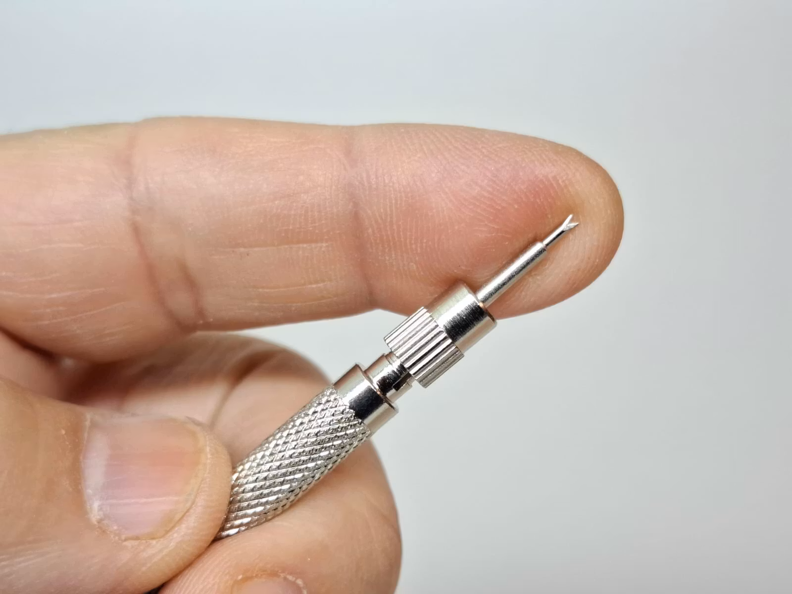 Verktyget har en så kallad svanhals och som används för att enkelt komma åt stift utan att skada bandet eller klockan.
