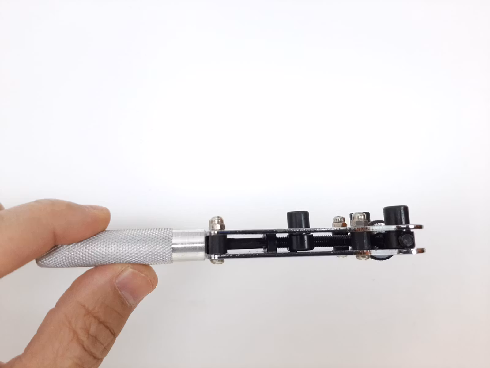 3) Ett skruvstäd (svart färg). Placera din klocka i denna hållare och spänn sedan fast klockan så den sitter stadigt.