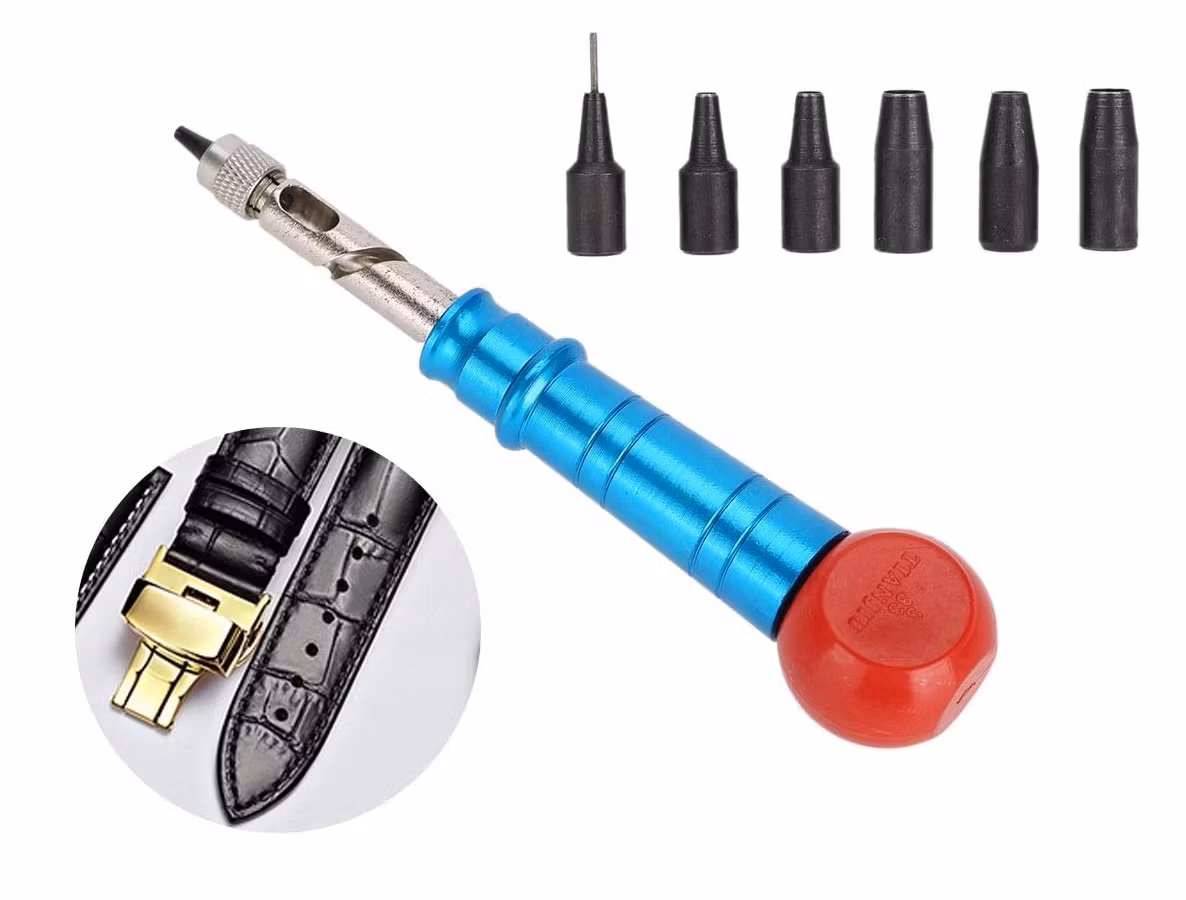 Du köper en håltagare som är ett praktiskt verktyg för att göra hål i klockarmband.