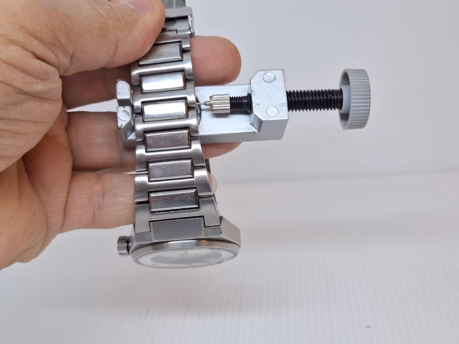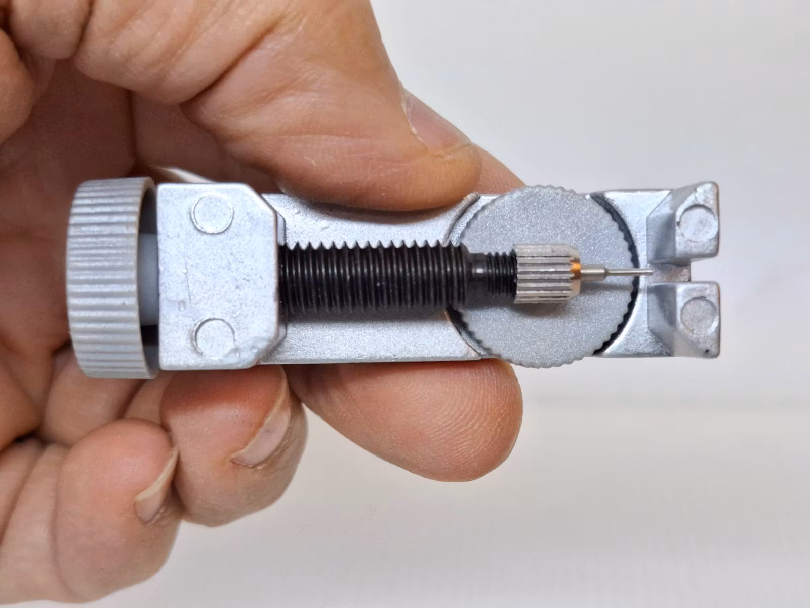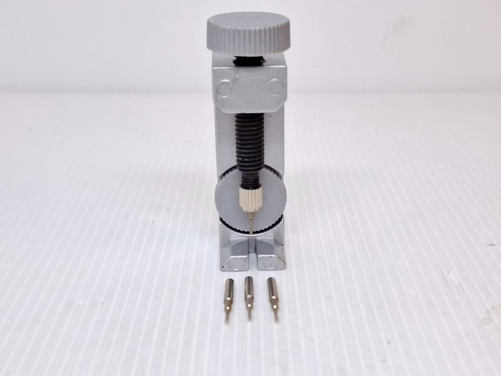 Du köper ett klockverktyg som är ett så kallat länkborttagare. Använd detta verktyg för att enkelt ta bort länkar från ditt metallarmband. Skruvstolpen har en liten nål i sig och som är tänkt att skruvas in i de små hålen som klockarmbandet har, för att initialt få bort länken från armbandet. Den runda skruvplattan som är placerad på botten av verktyget är ämnad att ställas i anpassad höjd så att armbandet är i rätt höjd med skruvstolpen. Skruvplattan är löstagbar.