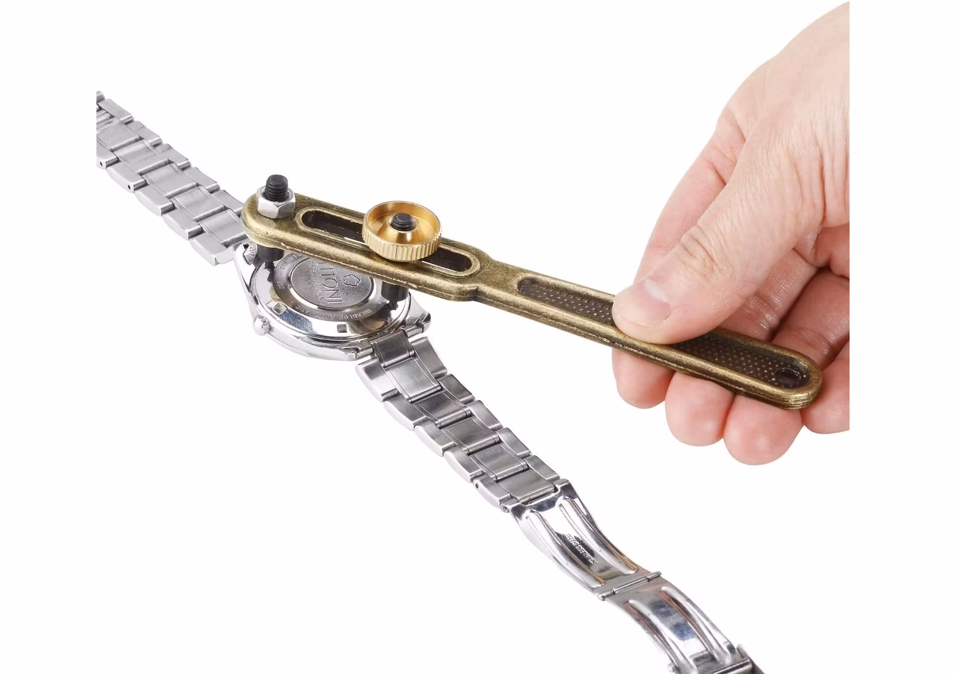 10) Ett bandstiftsverktyg. Detta verktyg används för att byta klockarmband på din klocka snabbt och enkelt.