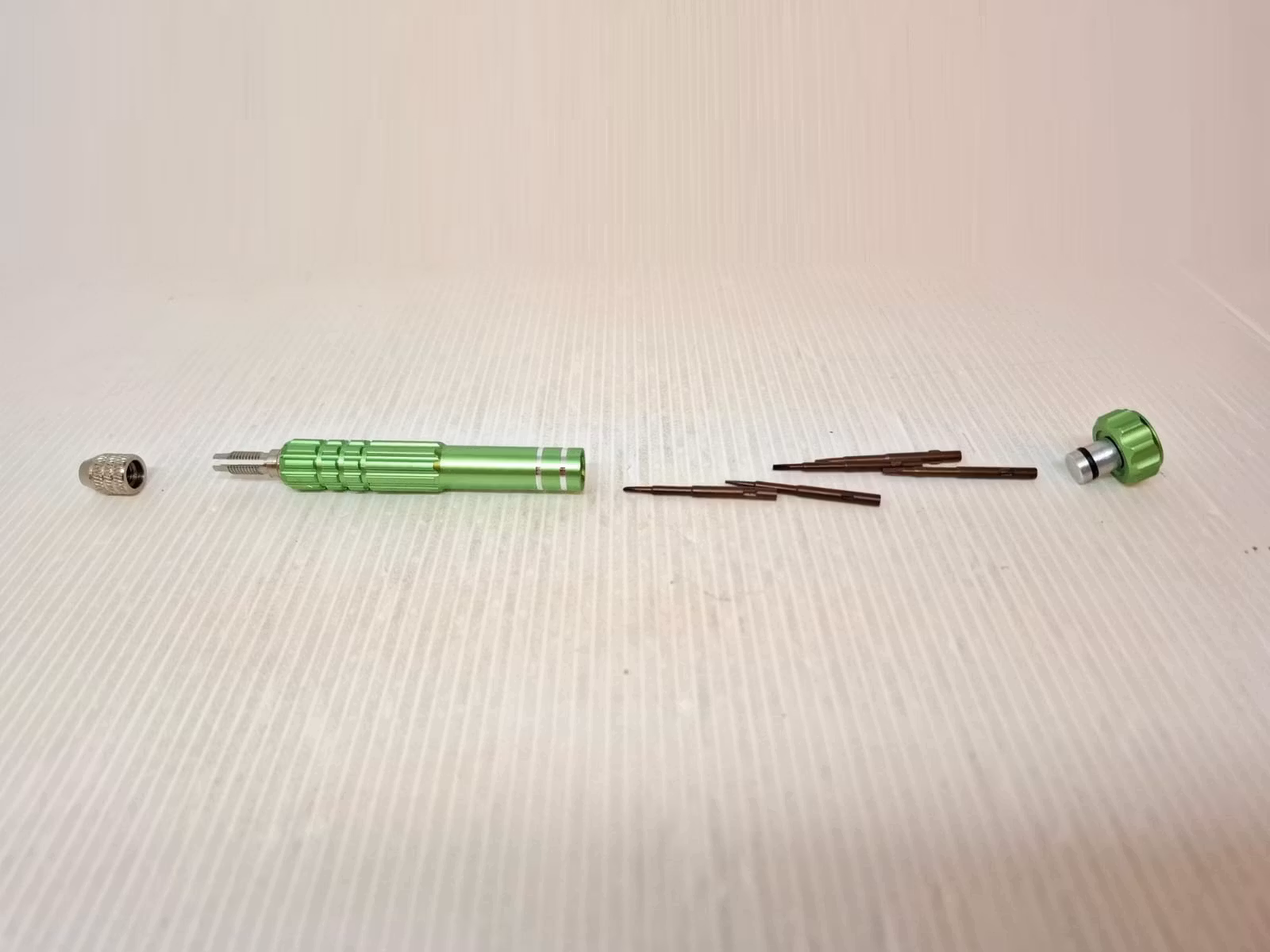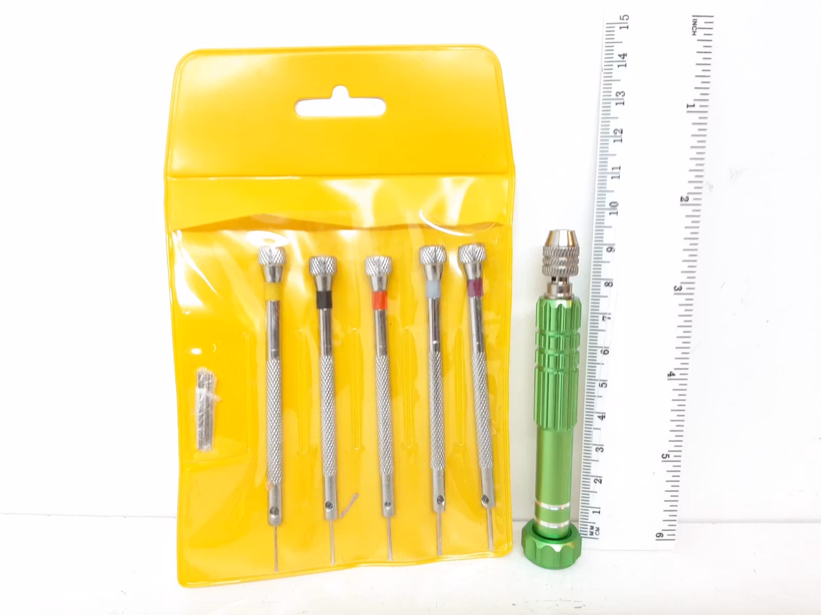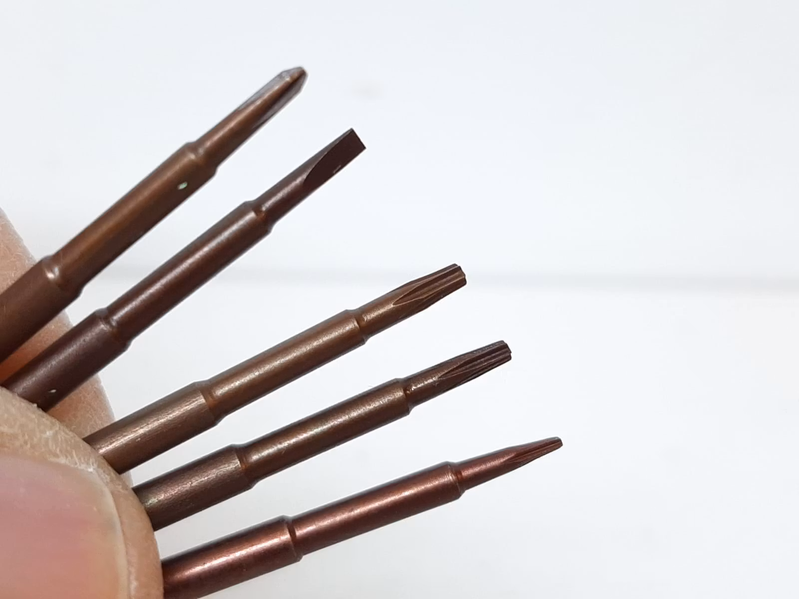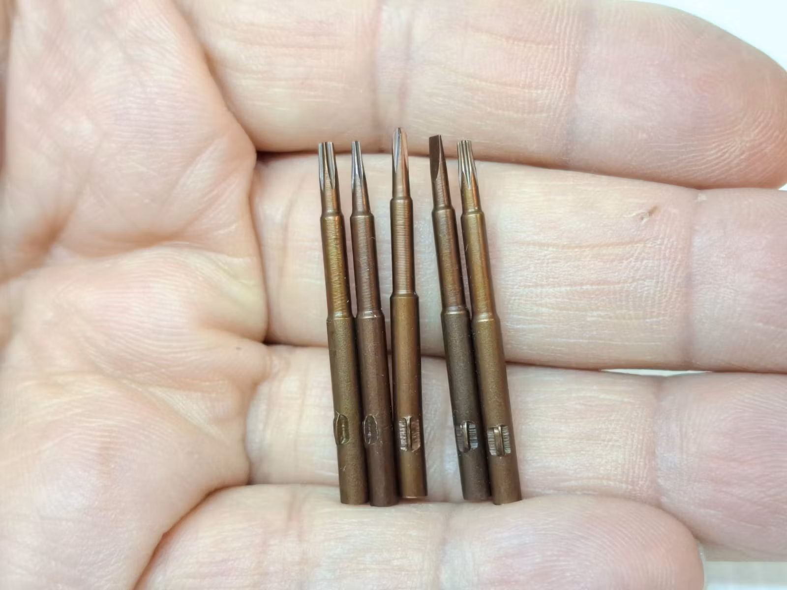 1) Ett set som innehåller fem skruvmejslar (spårmejslar) med följande mått: 0.8 mm, 1.0 mm, 1.2 mm, 1.4 mm och 1.6 mm.