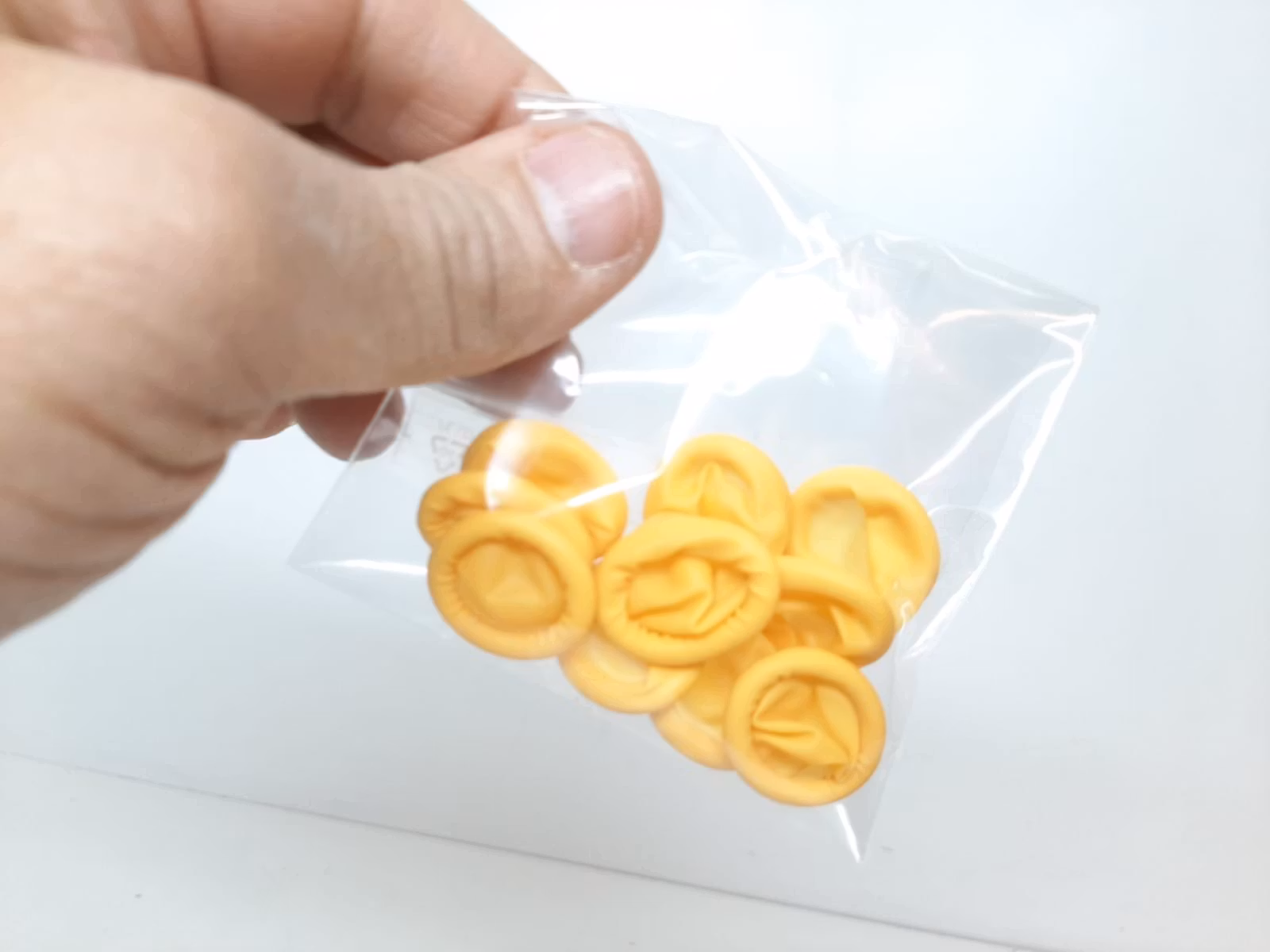 1) Tio stycken fingertutor / fingeröverdrag som hjälper till att greppa om små föremål och minskar eventuell friktion. Tutorna/överdragen är tillverkade av plast/vinyl.