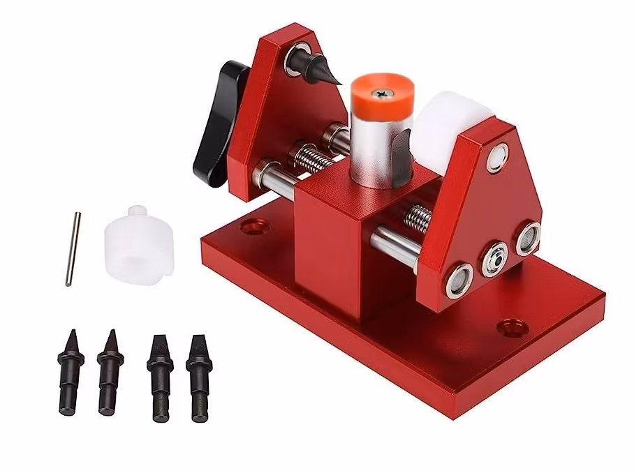 Du köper ett verktyg som fungerar som en boettöppnare men också som en arbetsbänk för att kunna utföra reparationer och annat underhåll av klockor och urmakeri. Det medföljer fyra olika munstycken som fungerar som boettöppnaren. Välj det munstycke som passar din klocka bäst och placera munstycket inne i arbetsbänken. Placera sedan klockan på stolpen i mitten av arbetsverktyget och snurra/vrid sedan försiktigt på det svarta snurrhandtaget tills munstycket träffar boettkanten. Snurra vidare för att sedan få upp boetten.