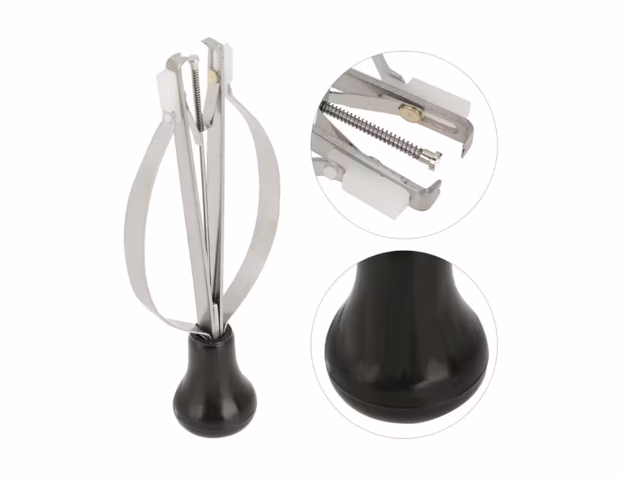 Du köper en visborttagare, som också kallas för visavdragare. Detta verktyg används för att kunna ta bort visarna på ett säkert sätt, utan att skada själva urtavlan. Tack vare mittkolvens utformning på denna visborttagare hålls visarna ordentligt och stadigt på plats. Materialet är av metall (toppen är av plast).