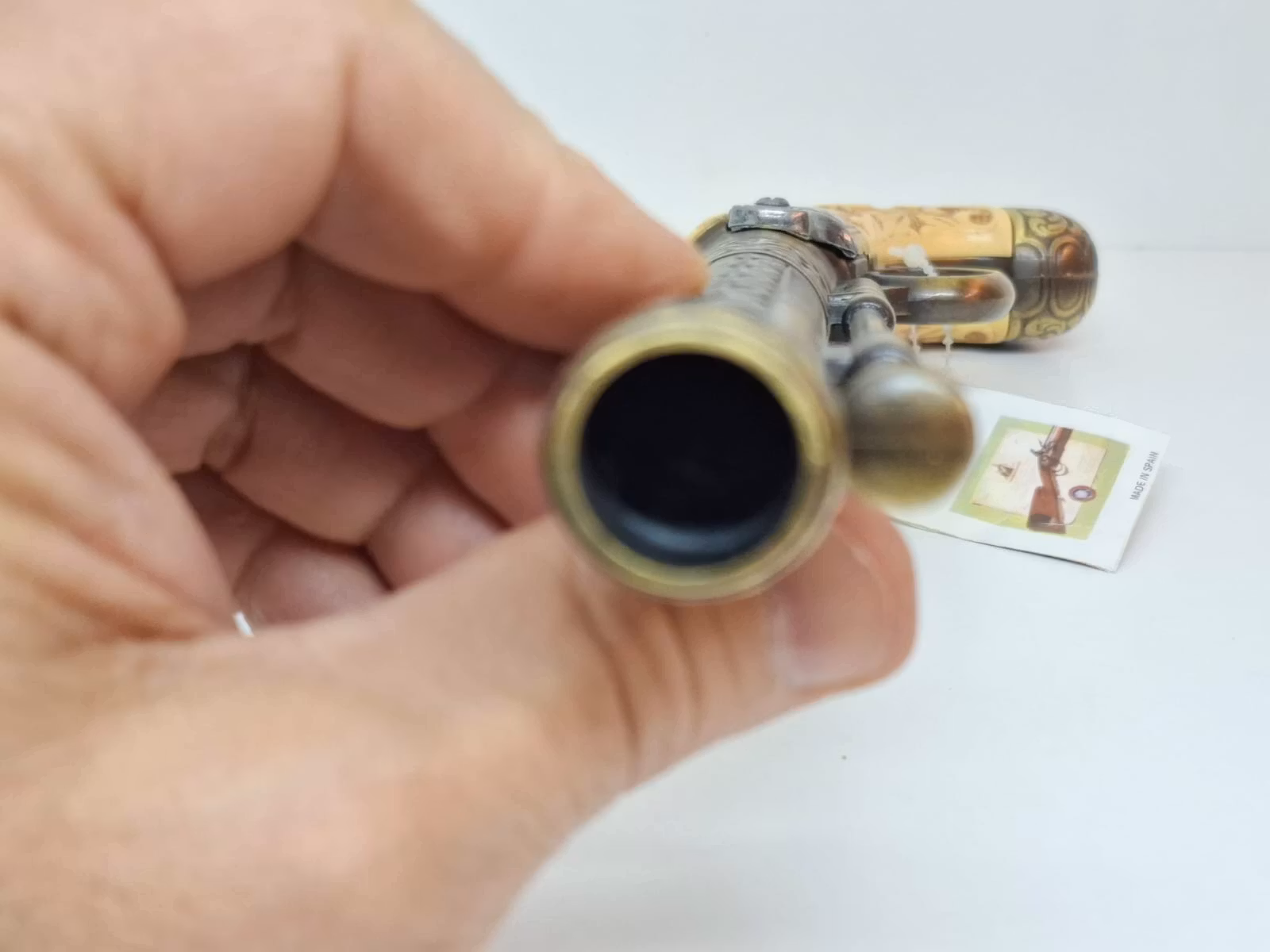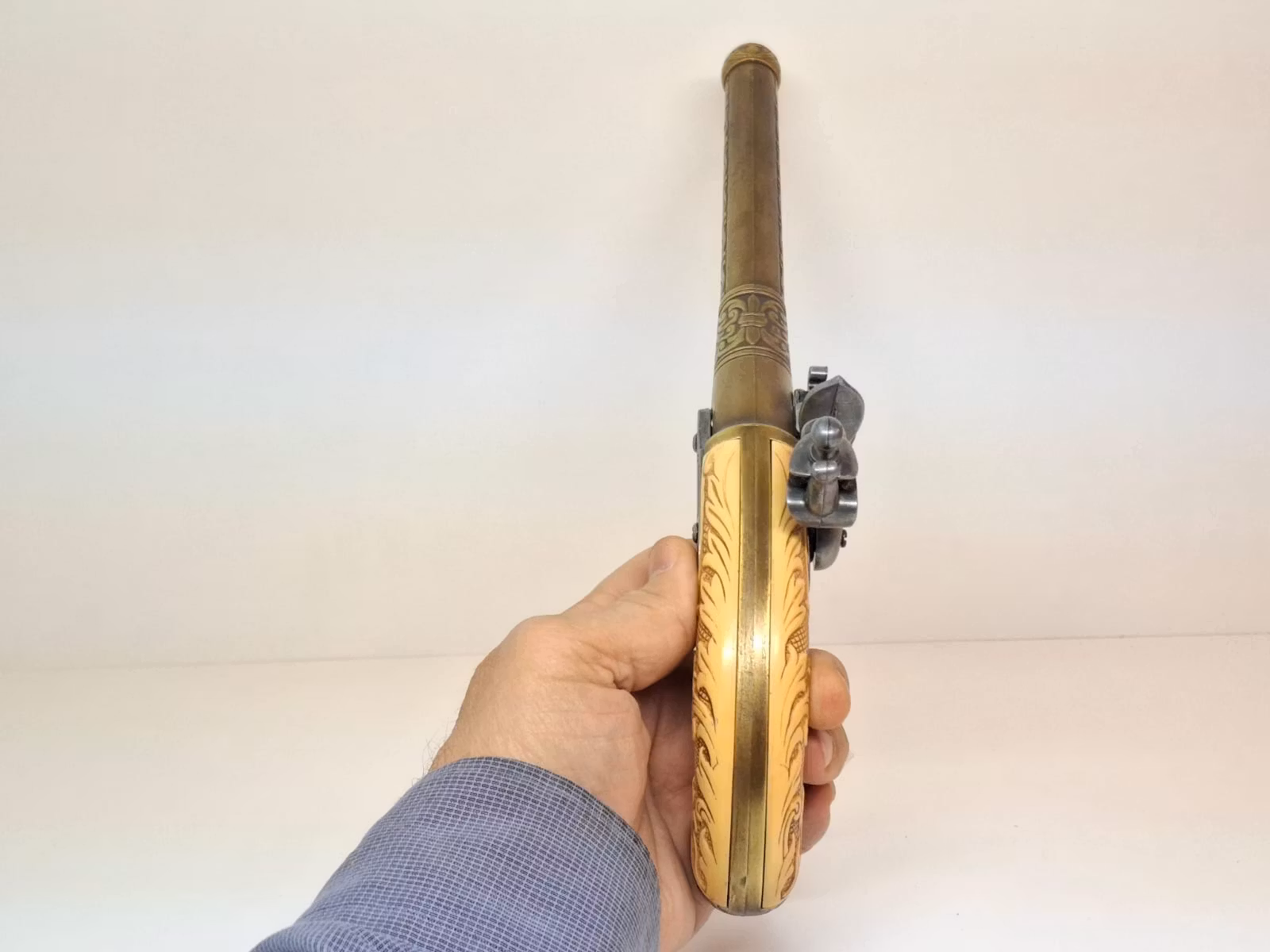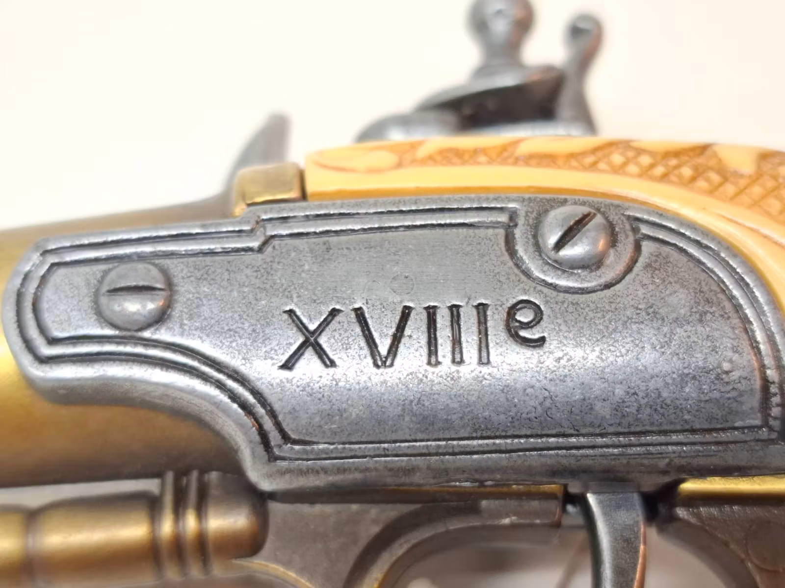 Du köper en replika av en belgisk flintlås pistol med en design från 1700-talet. Denna replika passar perfekt för samlare och historieentusiaster. Mekaniken hos denna flintlåspistolen är fungerande men har inga verkliga funktioner, utan fungerar som prydnad. Denna replika är tillverkad av det spanska replika-företaget Denix. Replikan kommer i en förpackning och med broschyr.