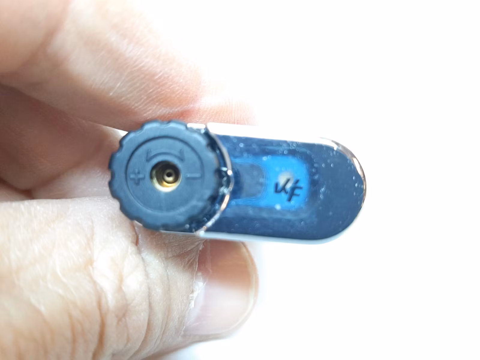 4) En piptändare av det tyska märket WildFire. Tändaren är påfyllbar och lågan går att justera genom att snurra på hjulet som finns på tändarens undersida.