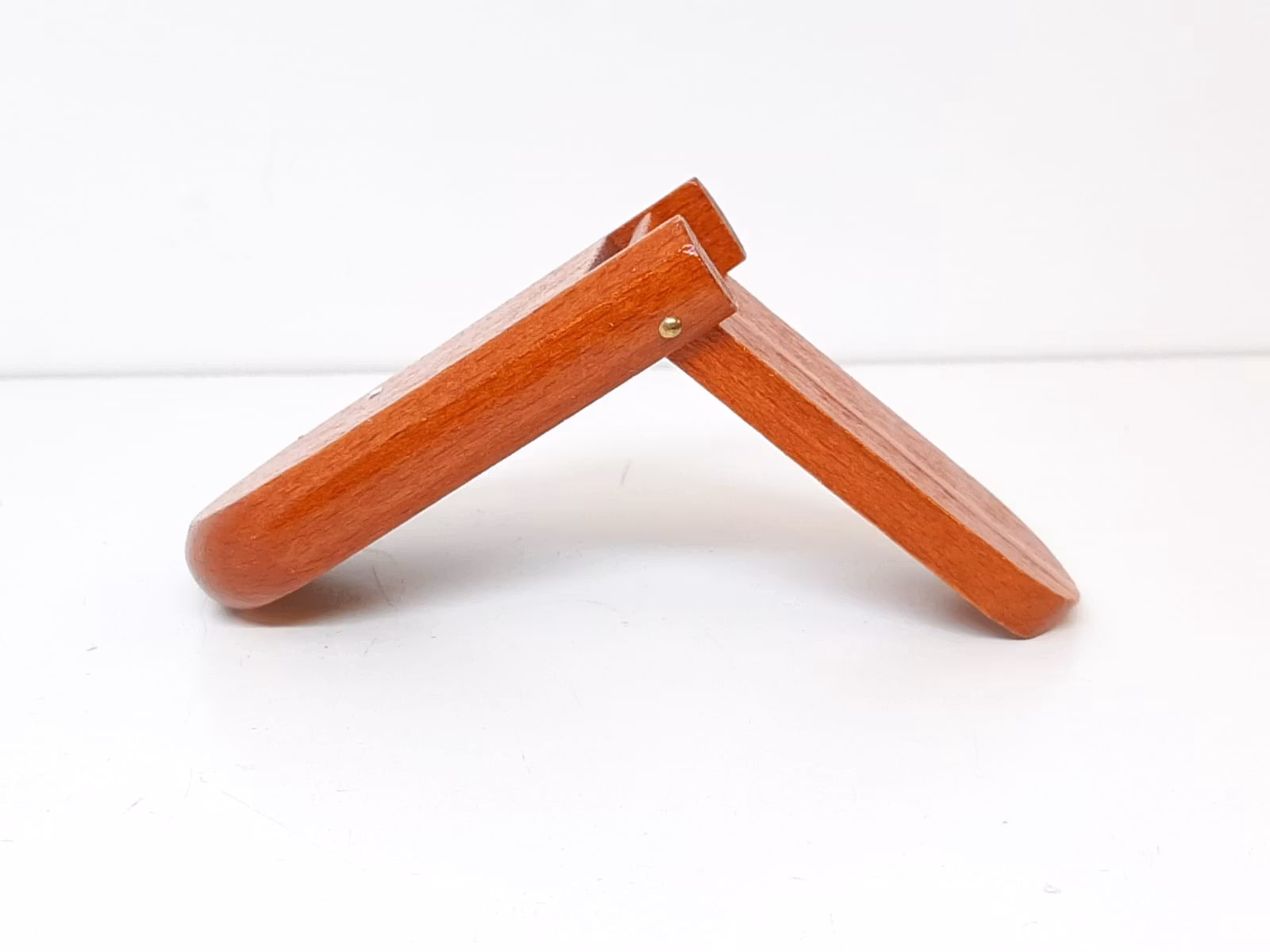 2) Ett Pipställ i trä som går att fälla ihop. På insidan av pipstället finns len tyg.