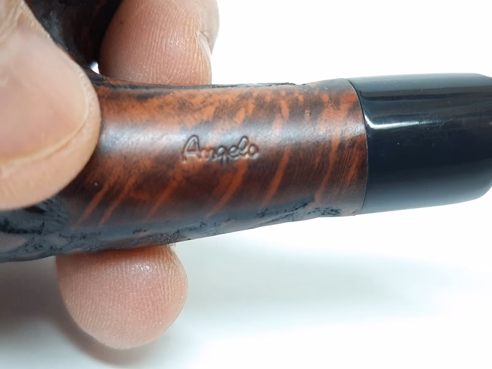 Du köper en pipa av märket Angelo. Pipan är tillverkad inom EU. Vid sidan av pipan finns texten "ANGELO" inristat.
