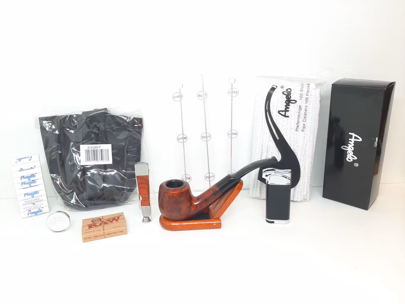 Du köper en pipa av det tyska märket Angelo. Pipan är tillverkad inom EU och är gjord av äkta briarträ. På sidan av pipan finns texten "ANGELO" inristat. Pipan kommer i en exklusiv ask från Angelo.
