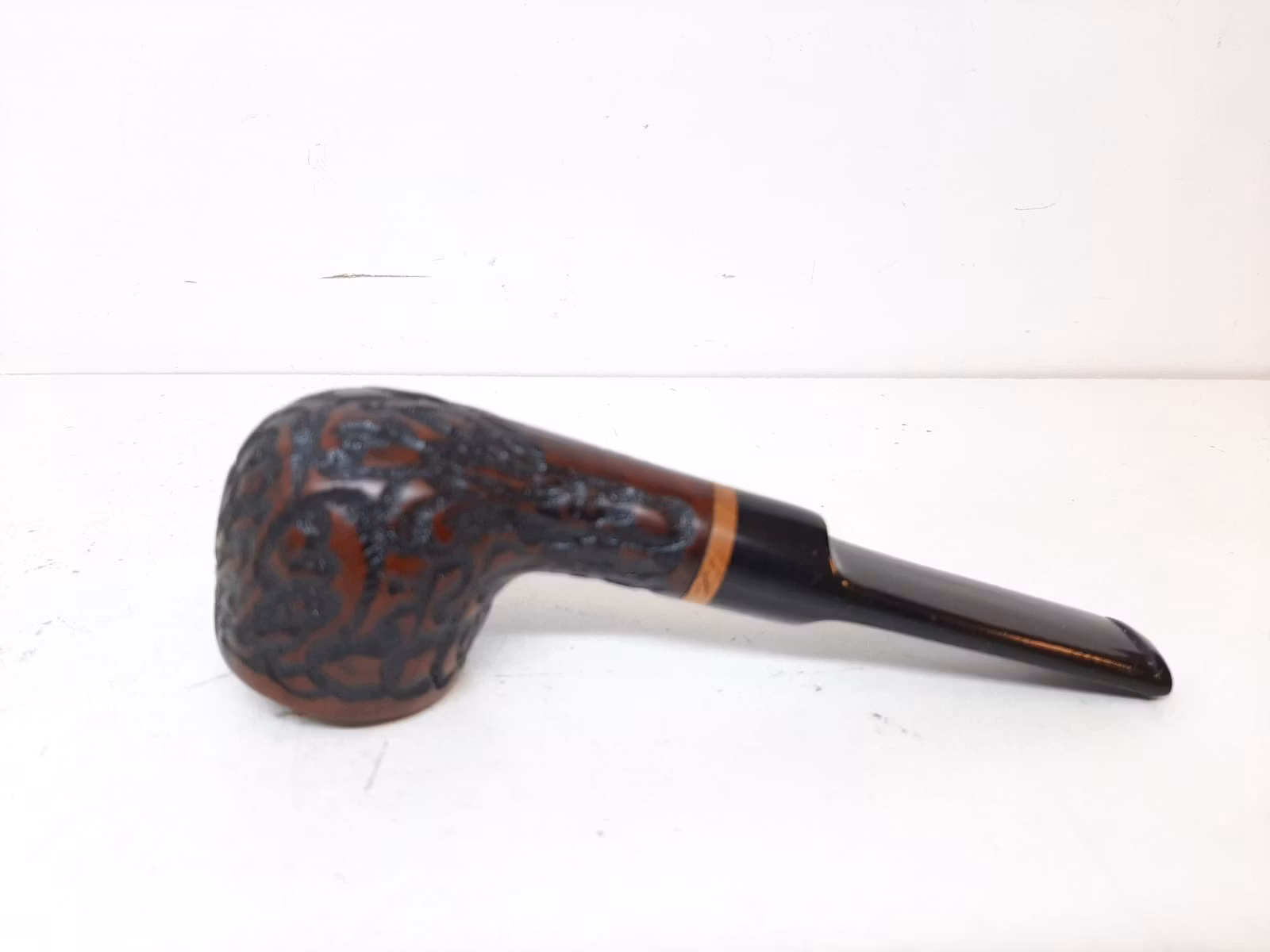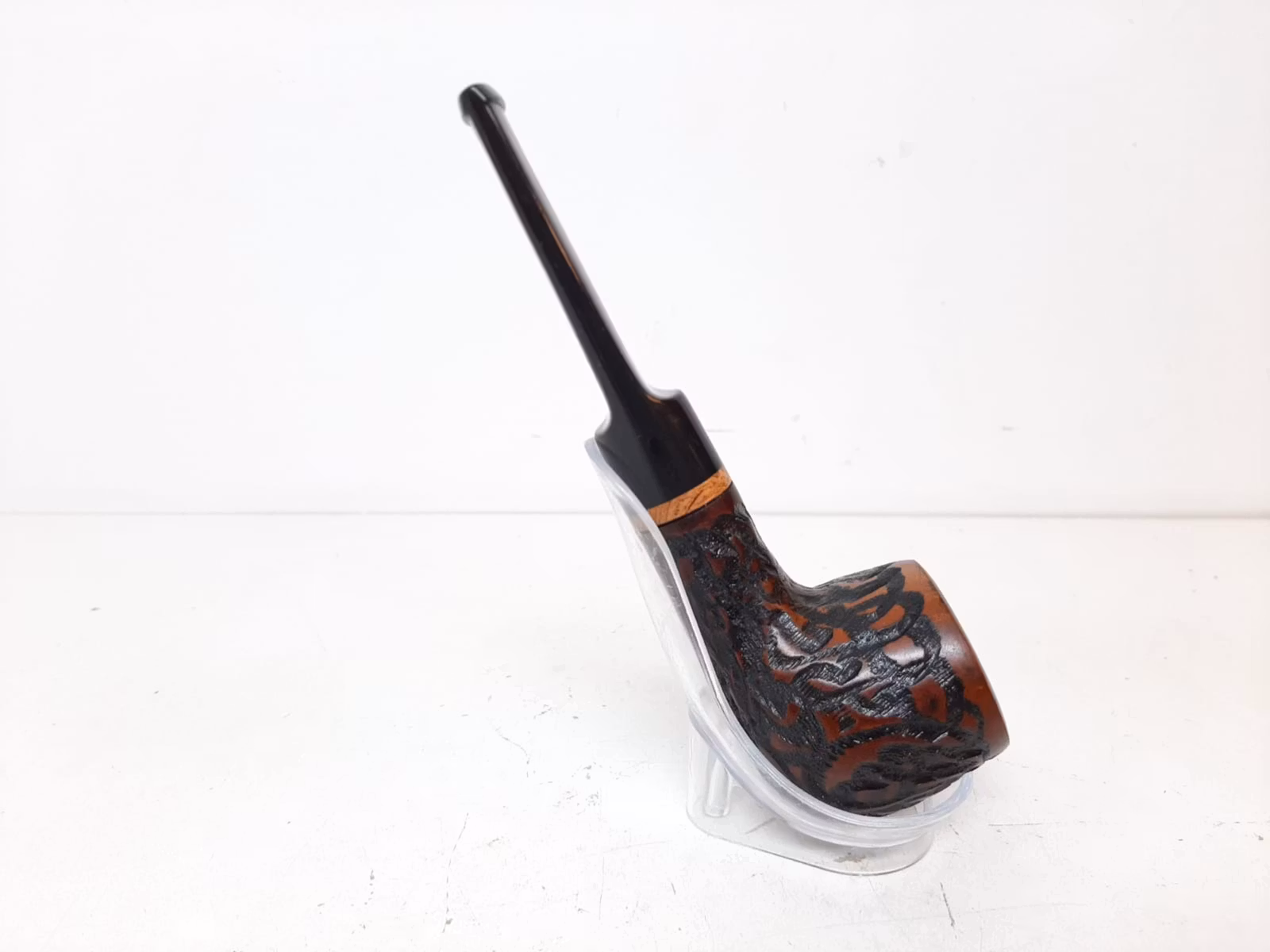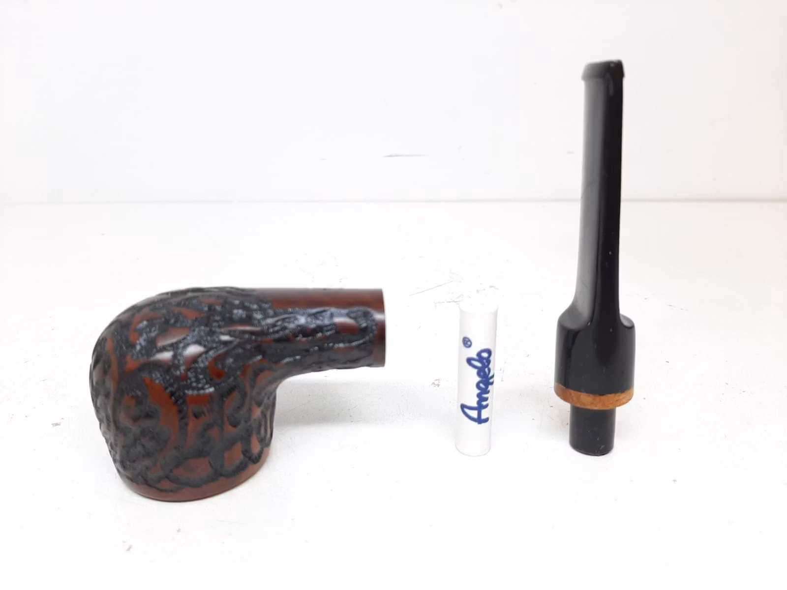 Du köper en pipa av det tyska märket Angelo, tillverkad inom EU. Pipan är tillverkad av äkta grekisk briarträ. På undersidan av pipan finns texten "ANGELO" inristat.