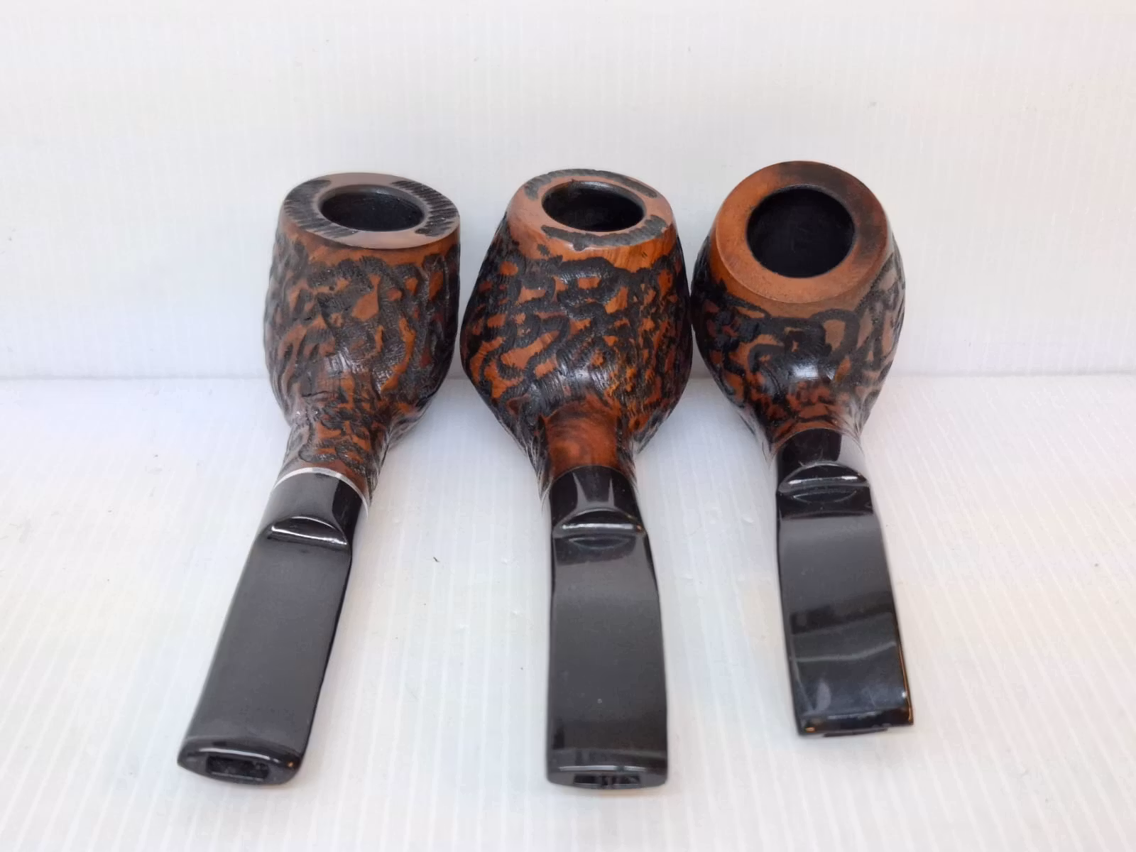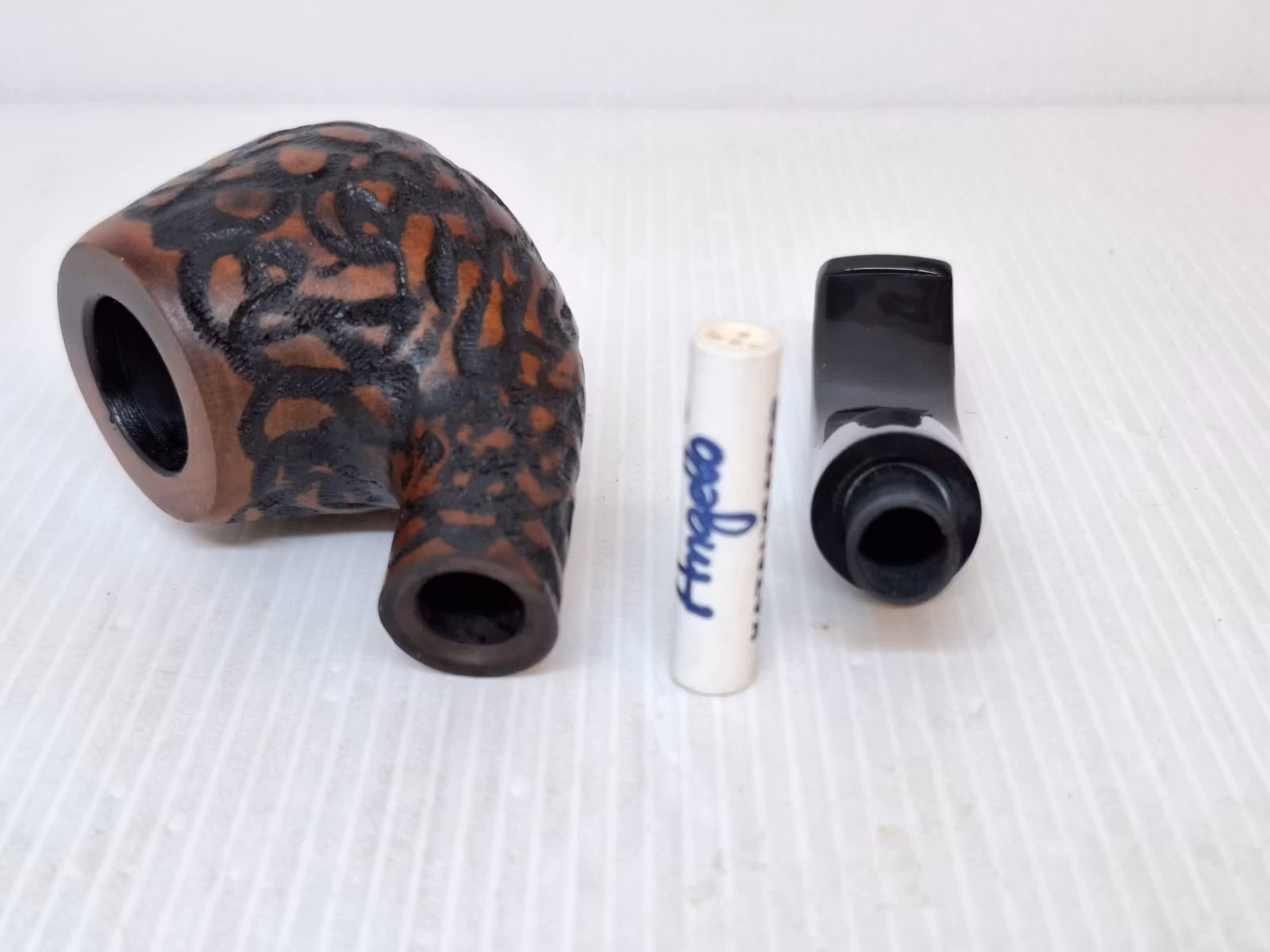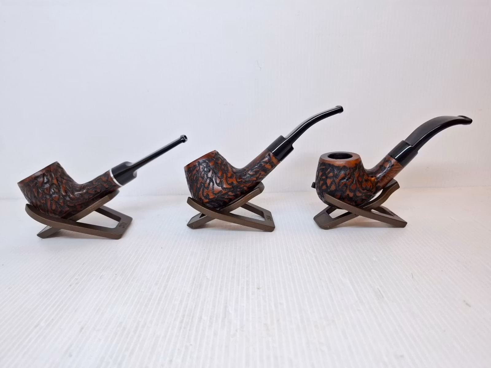 Du köper tre stycken pipor (en rak, en halvböjd och en böjd) av märket Angelo som är tillverkade inom EU. Piporna är gjorda av äkta briarträ. På varje pipa finns texten "ANGELO" inristat. Man kan ha pipfilter i dessa pipor (9mm).