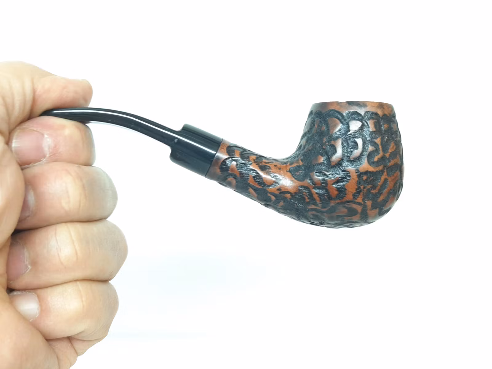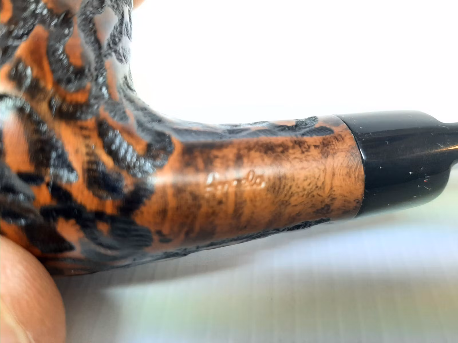 Du köper en pipa av märket Angelo. Pipan är tillverkad inom EU. På undersidan av pipan finns texten "ANGELO" inristat.