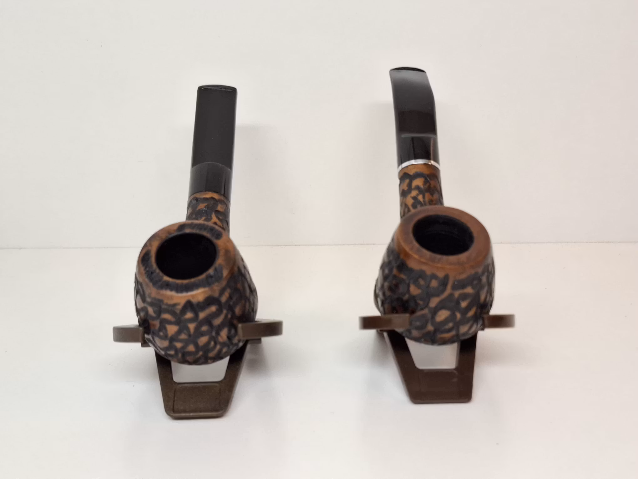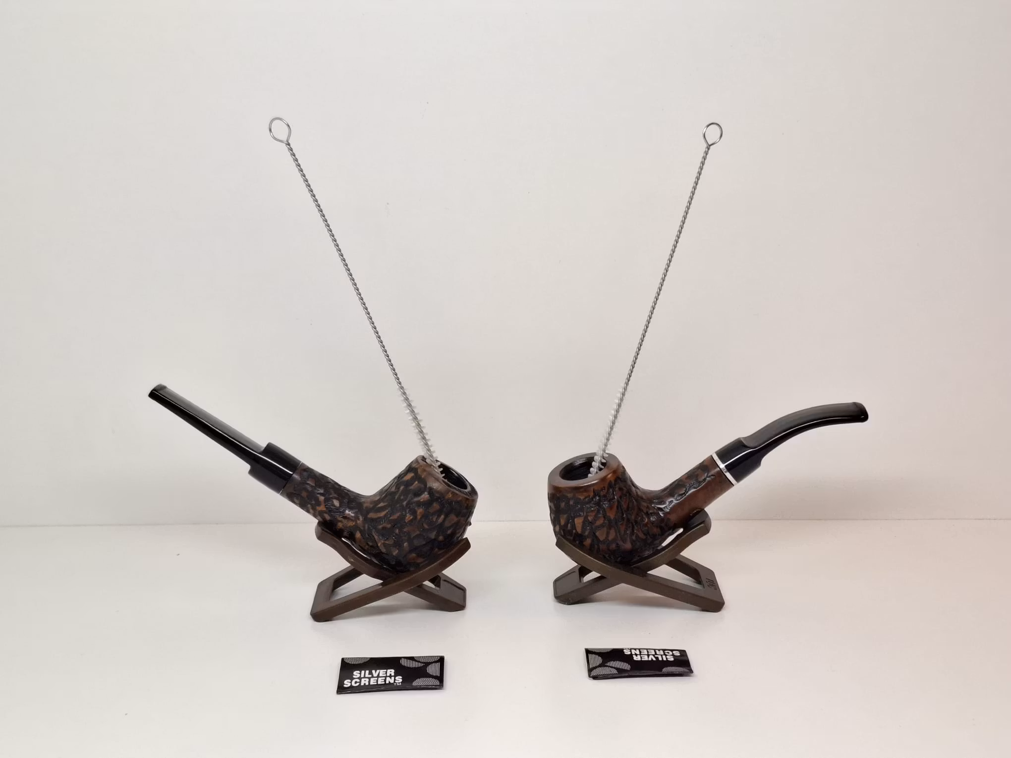 Du köper två stycken pipor (en rak och en böjd) av det tyska märket Angelo som är tillverkade inom EU. Piporna är gjorda av äkta briarträ. På varje pipa finns texten "Angelo" inristat. Man kan ha pipfilter i dessa pipor (9mm).