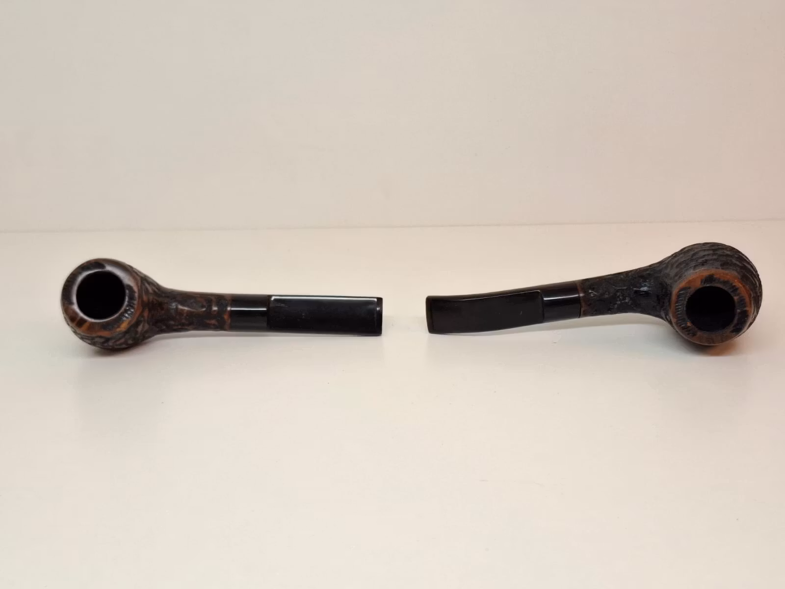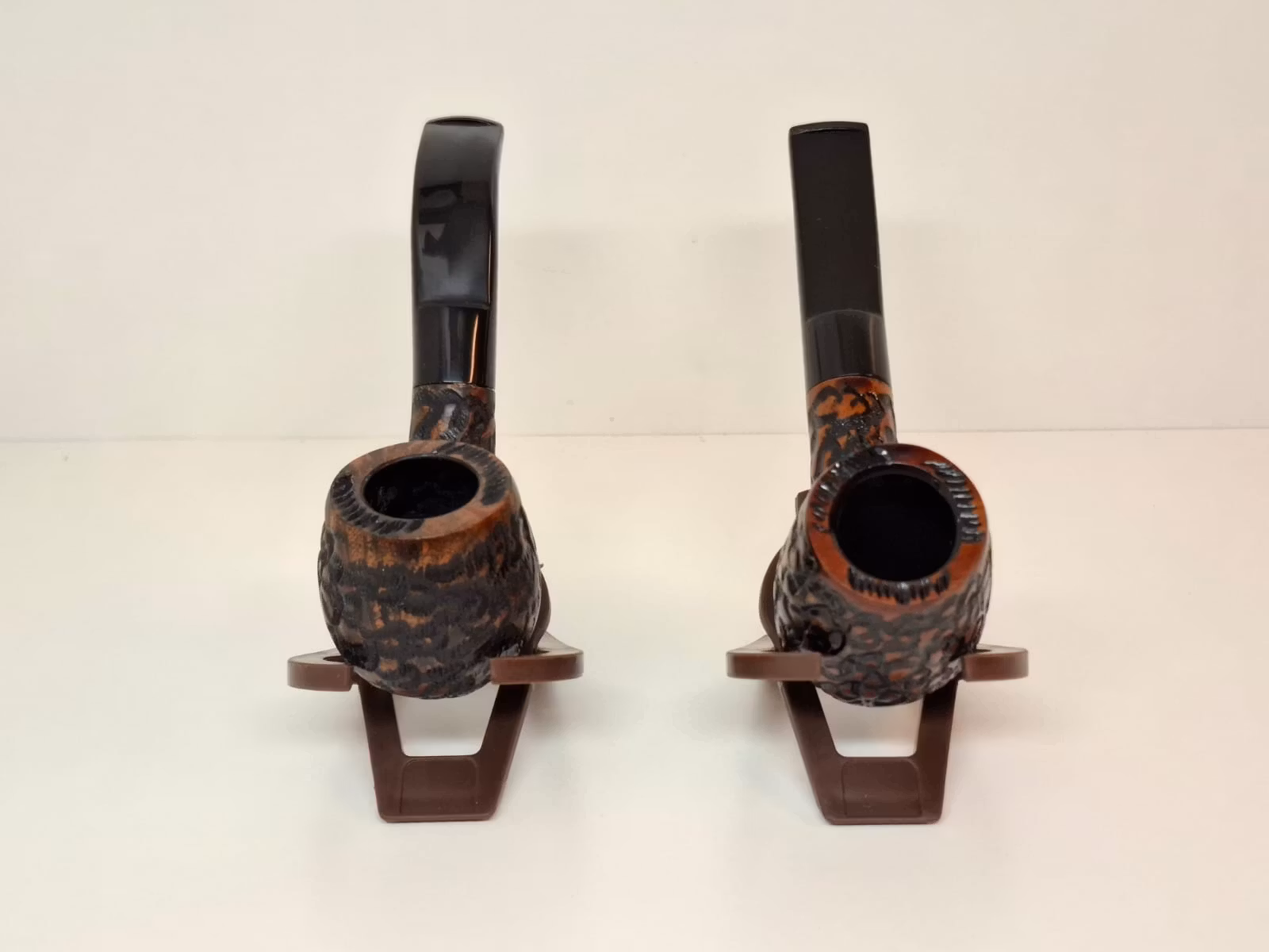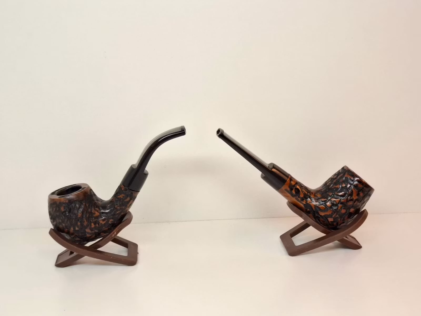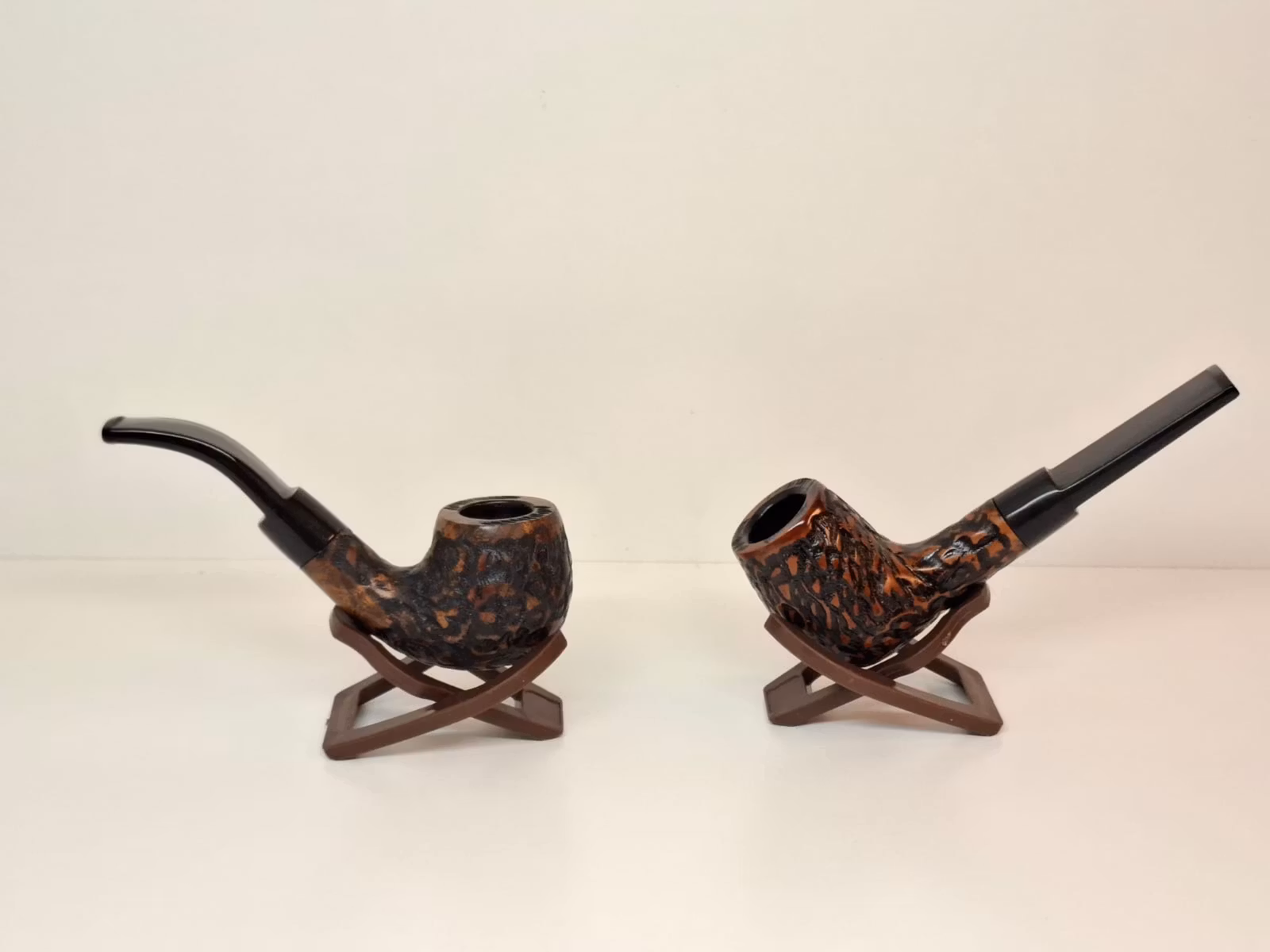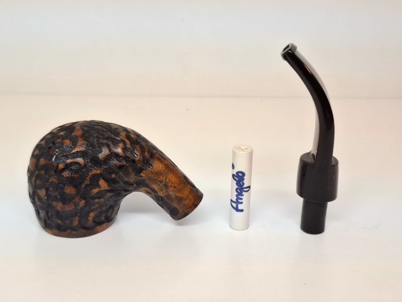 Du köper två stycken pipor (en rak och en halvböjd) av märket Angelo som är tillverkade inom EU. Piporna är gjorda av äkta briarträ. På varje pipa finns texten "ANGELO" inristat. Man kan ha pipfilter i dessa pipor (9mm).