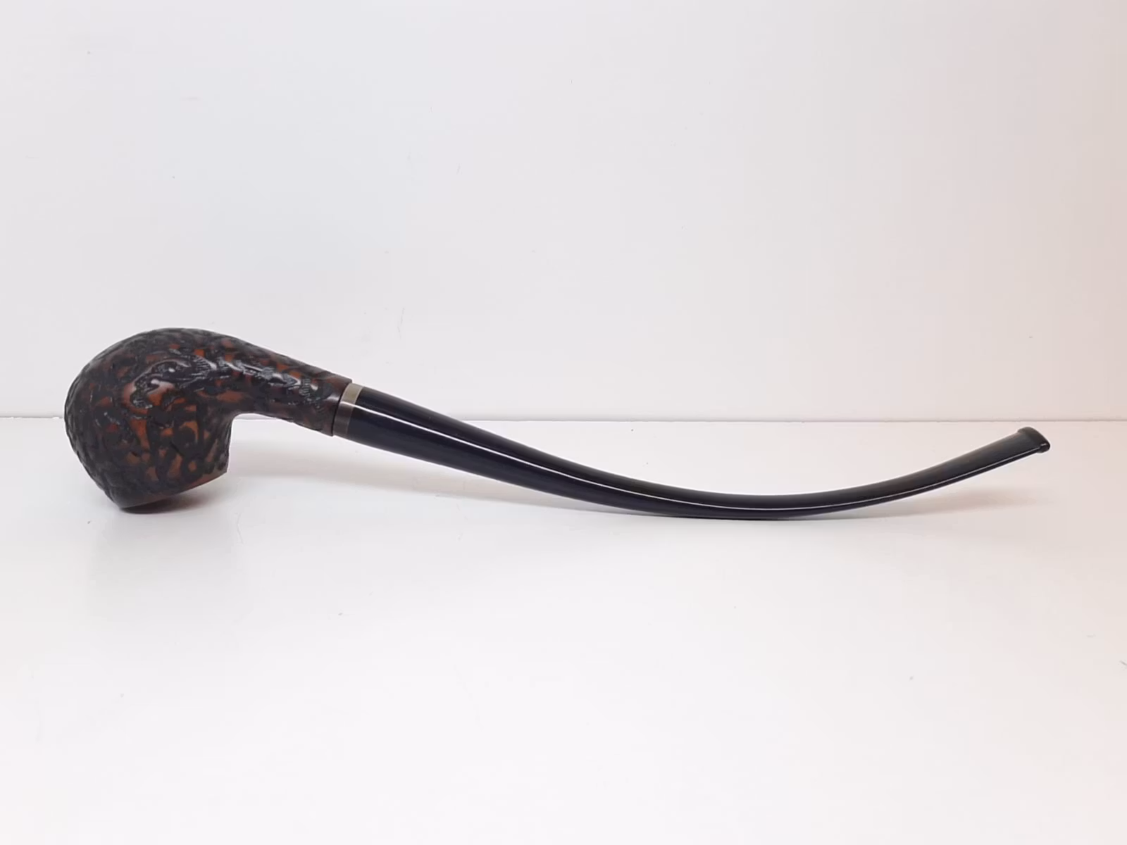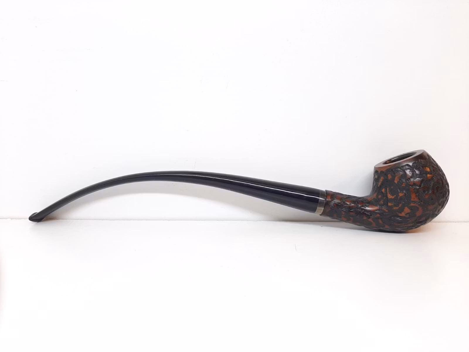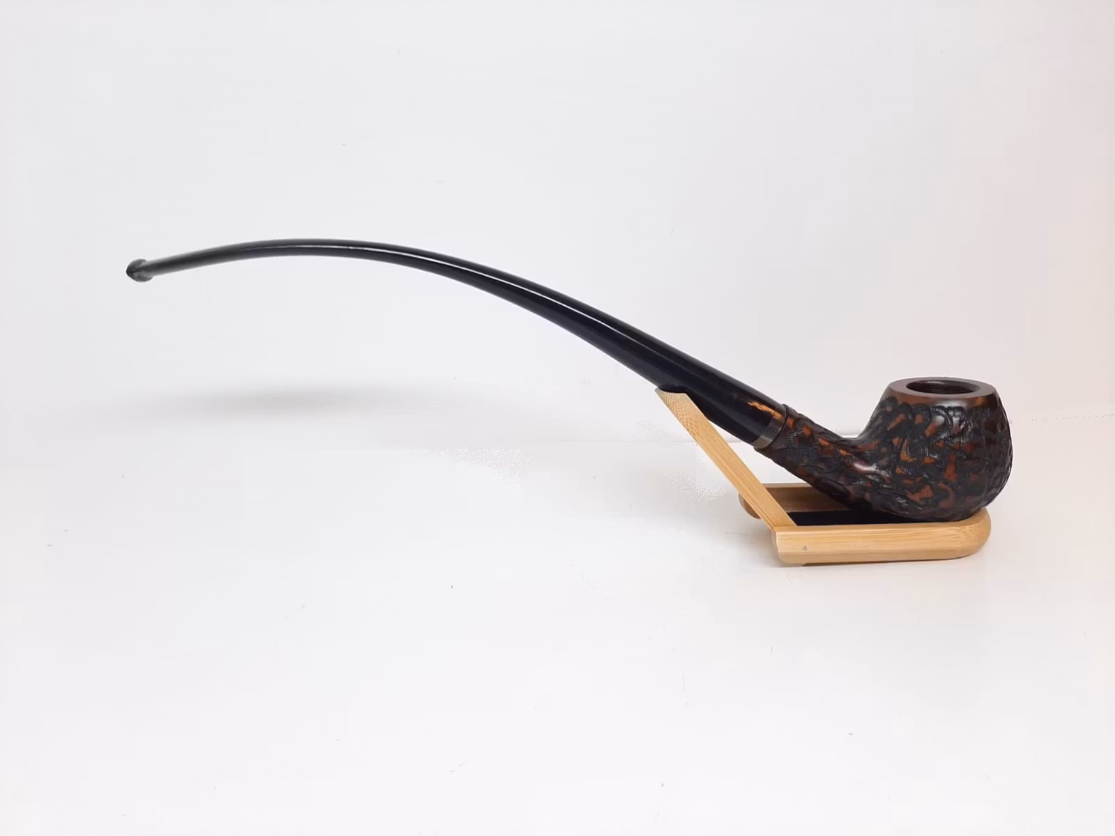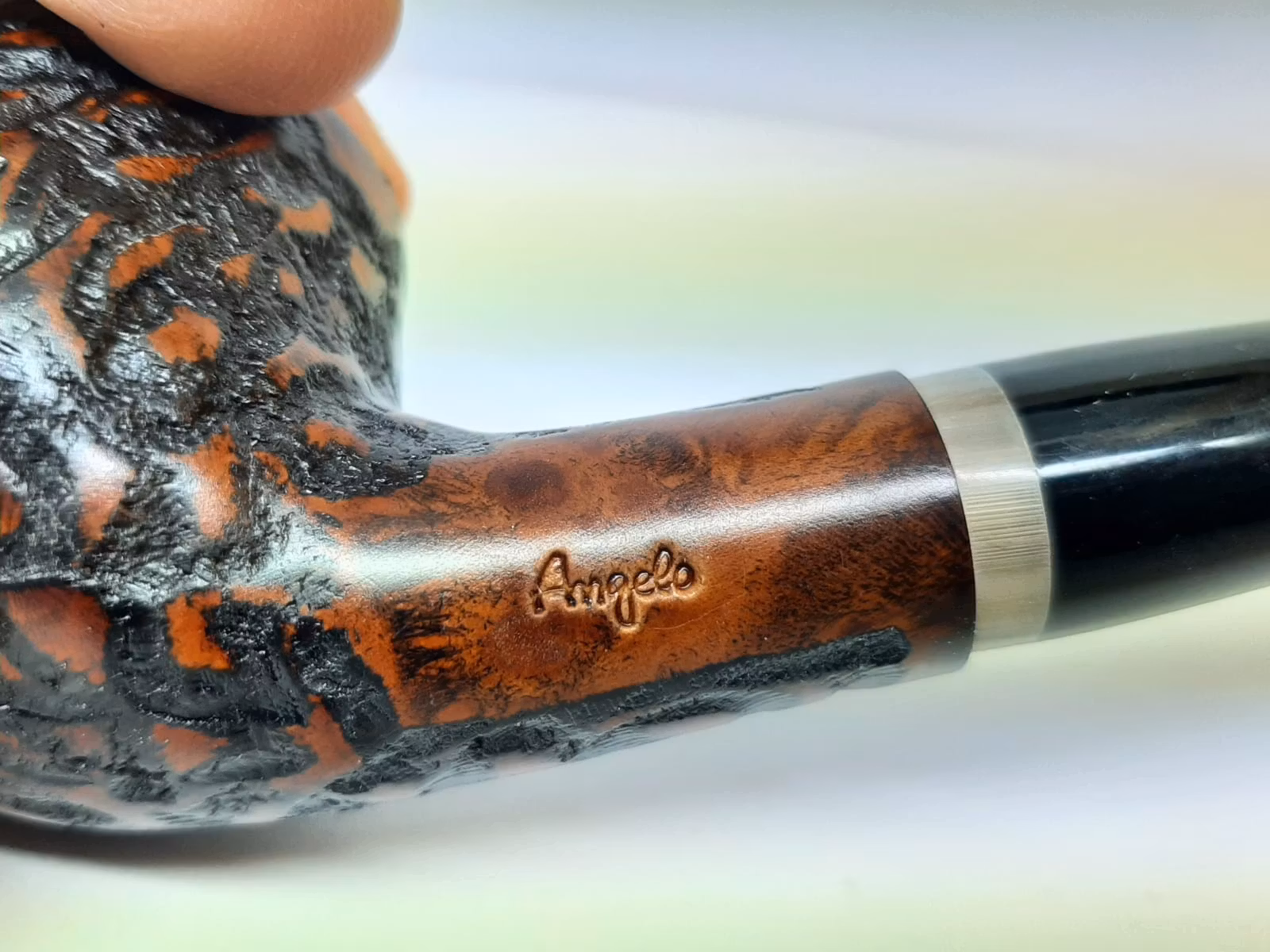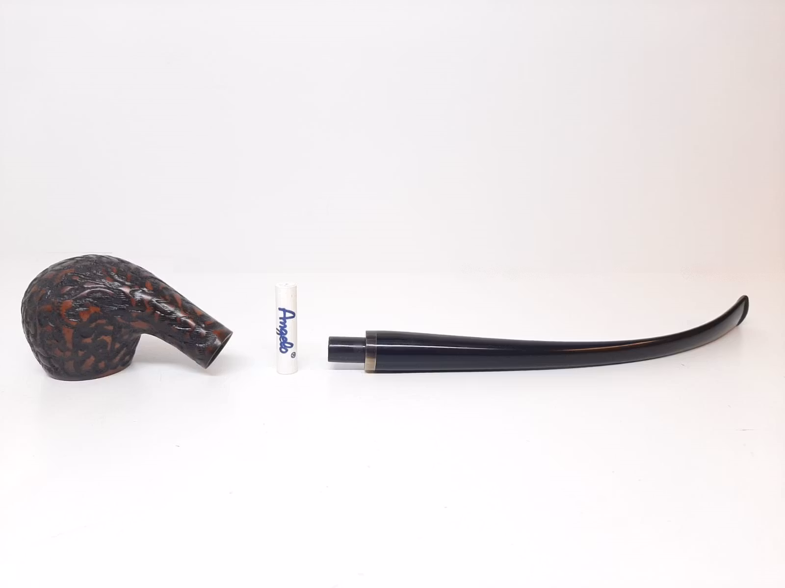 Du köper en lång pipa av det tyska märket Angelo. Pipan är gjord av äkta briarträ. Man kan ha 9mm pipfilter i pipmunstycket. På sidan av pipan finns texten "ANGELO" inristat.