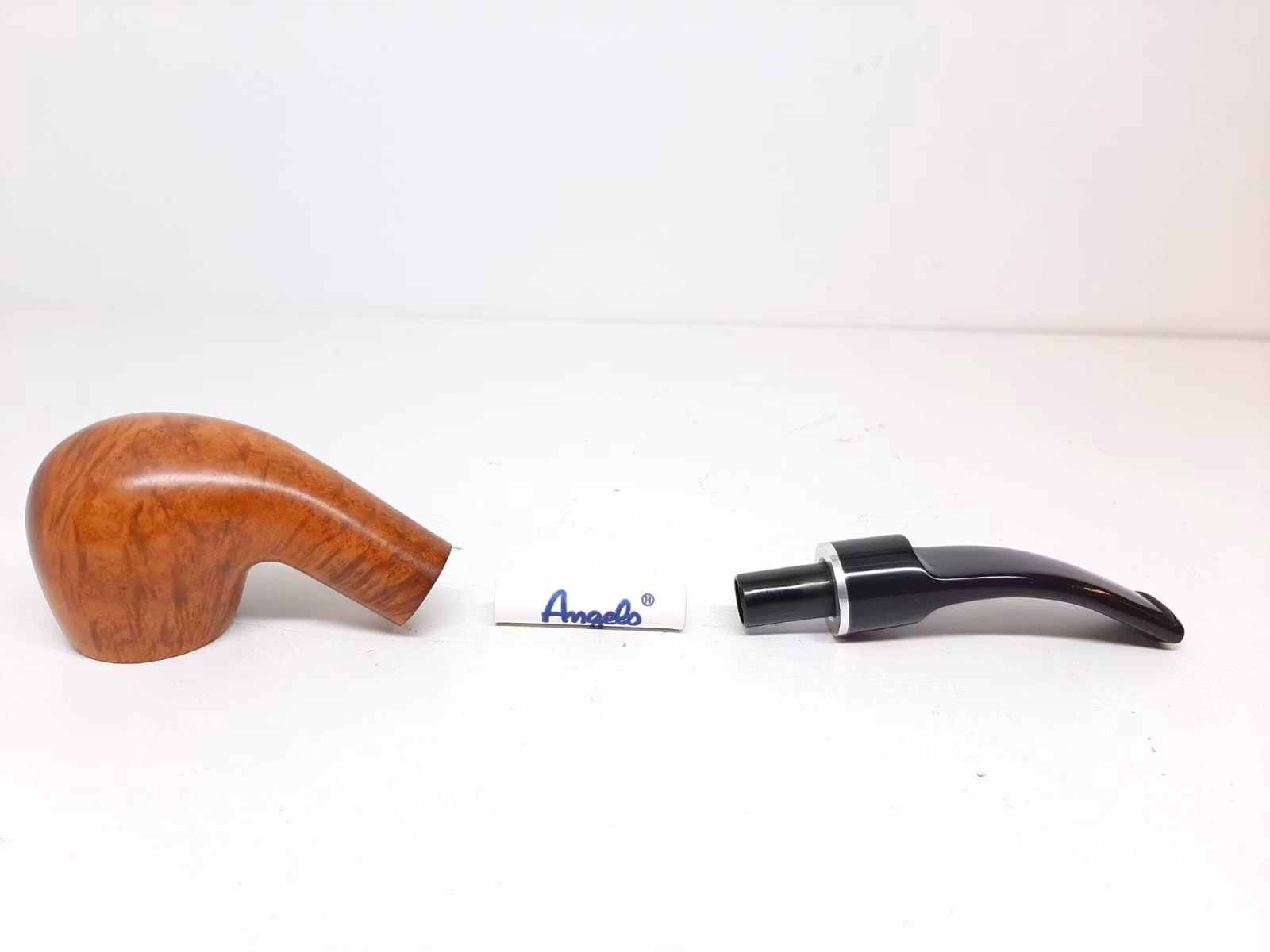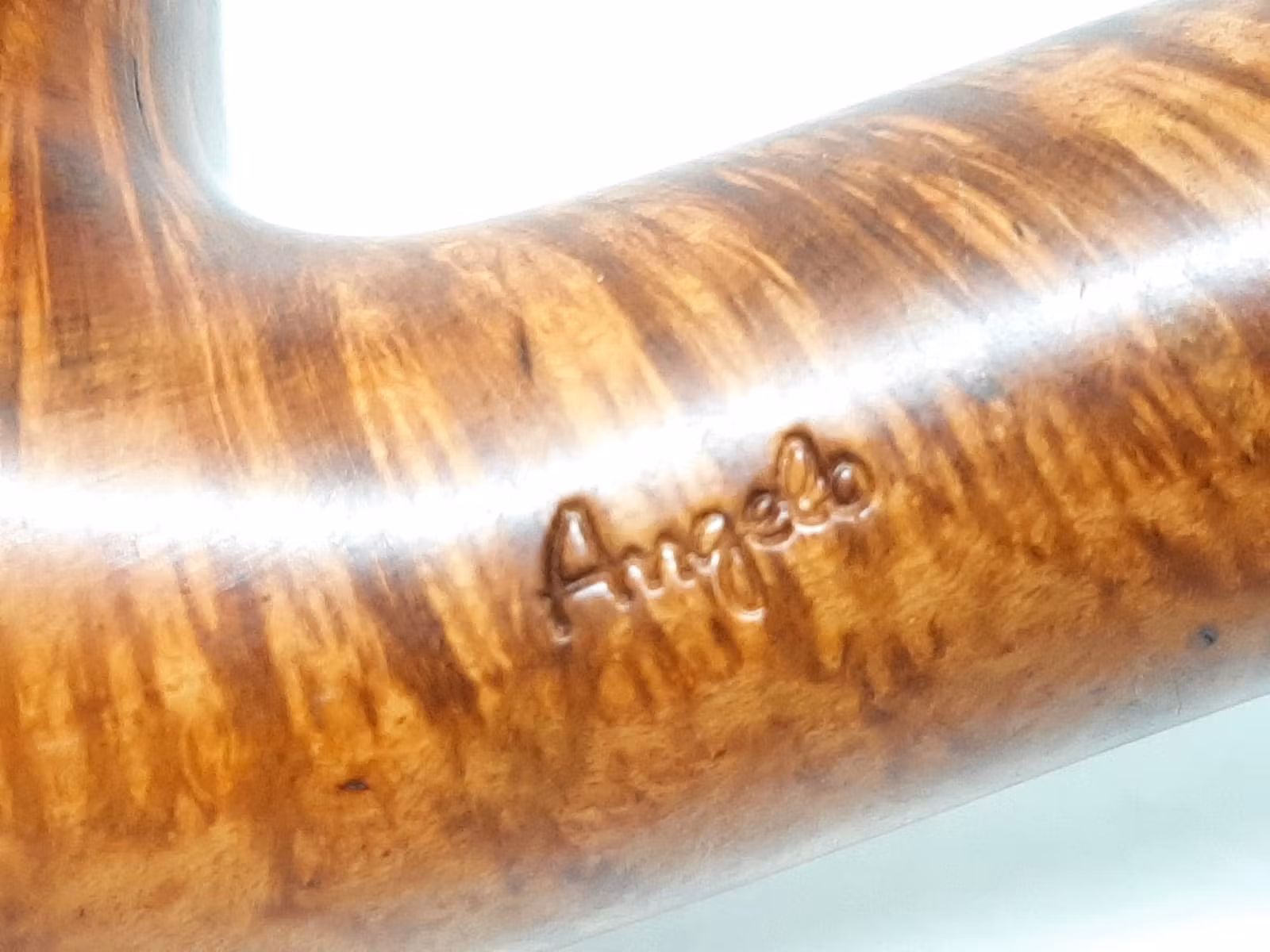 Du köper en pipa av märket Angelo, tillverkad inom EU. Pipan är tillverkad av äkta grekisk briarträ. På sidan av pipan finns texten "ANGELO" inristat.