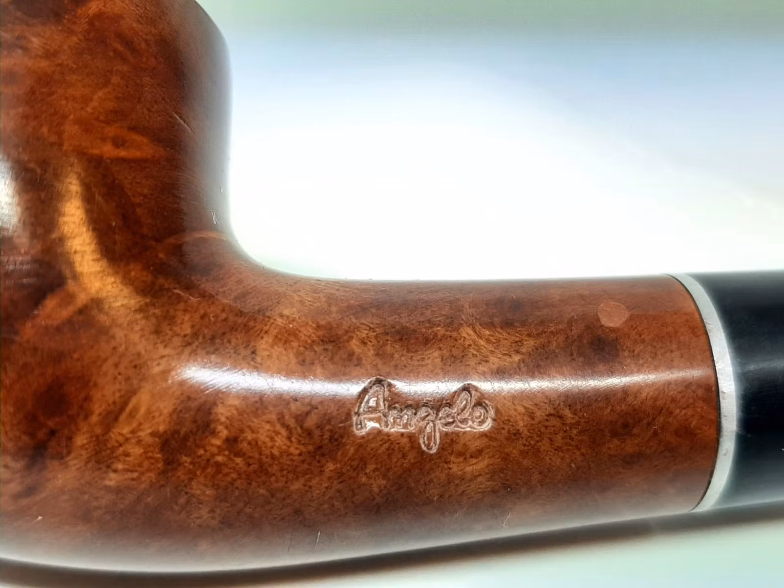 Du köper en pipa av det tyska märket Angelo. Pipan är tillverkad inom EU och är gjord av äkta briarträ. På sidan av pipan finns texten "ANGELO" inristat.