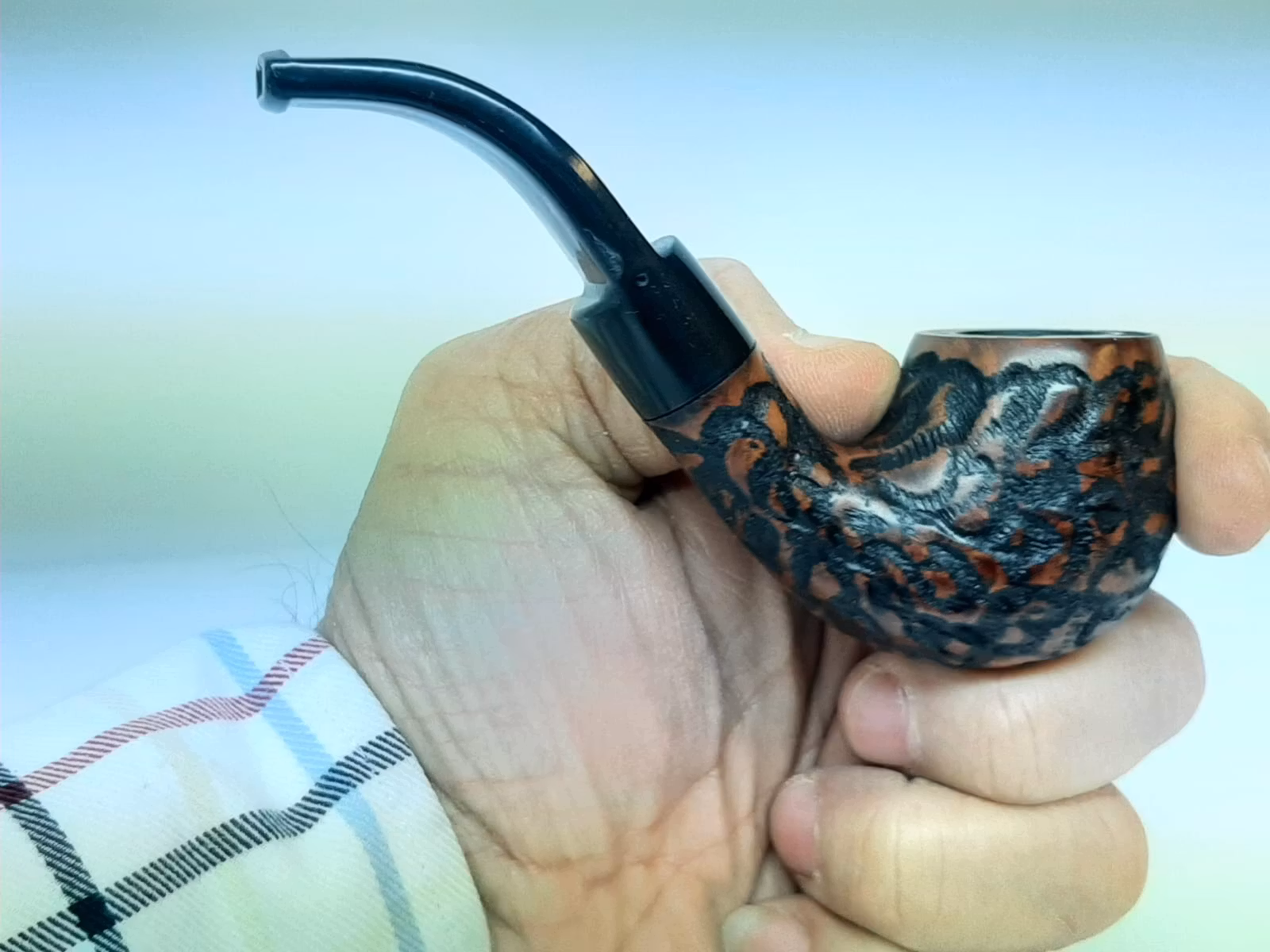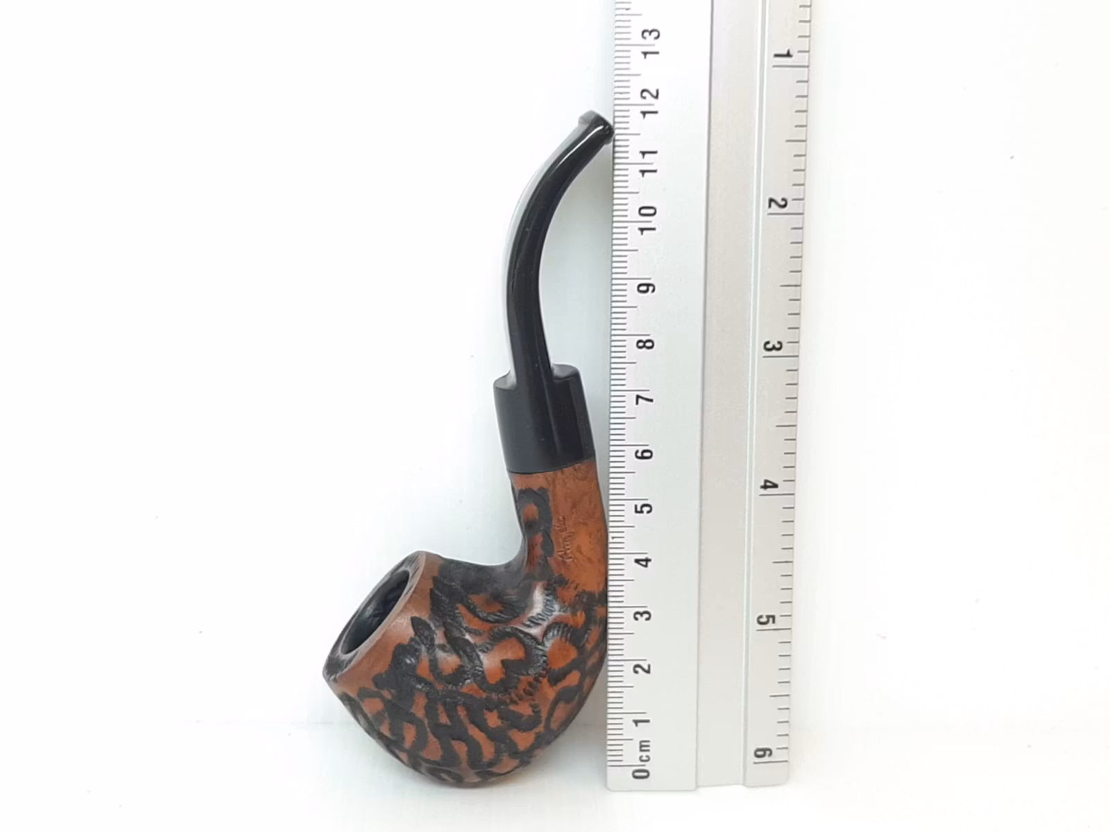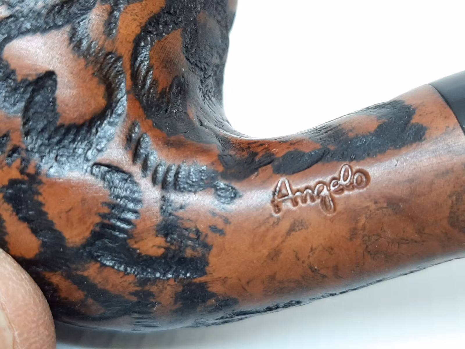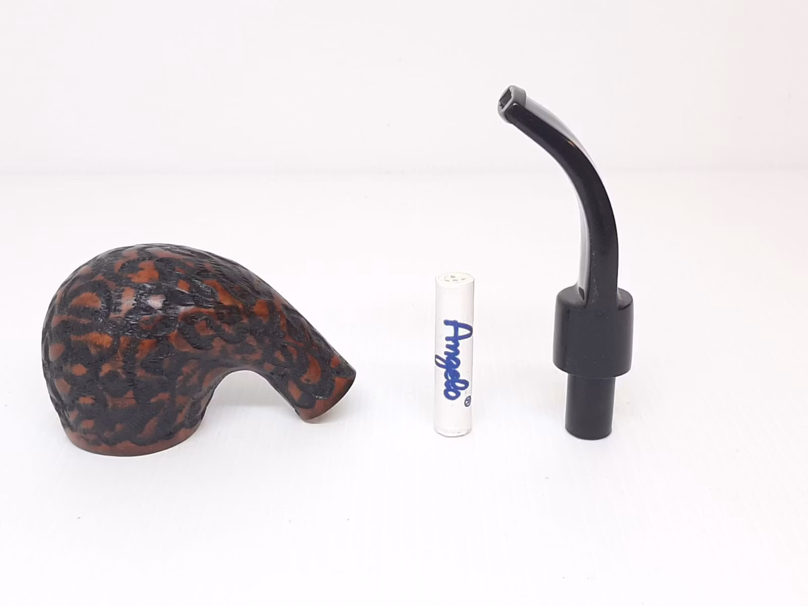 Du köper en pipa av märket Angelo som är tillverkad inom EU. Pipan är gjord av äkta briarträ. På sidan av pipan finns texten "ANGELO" inristat.