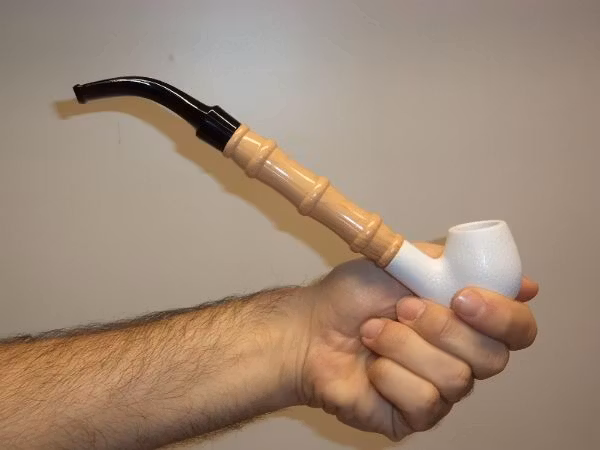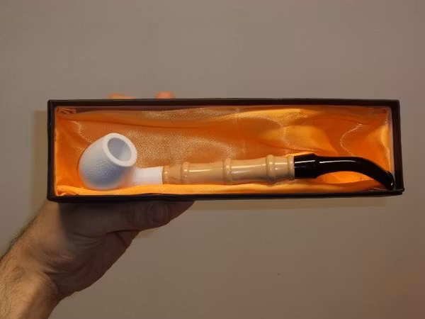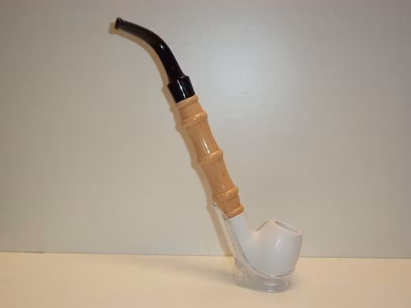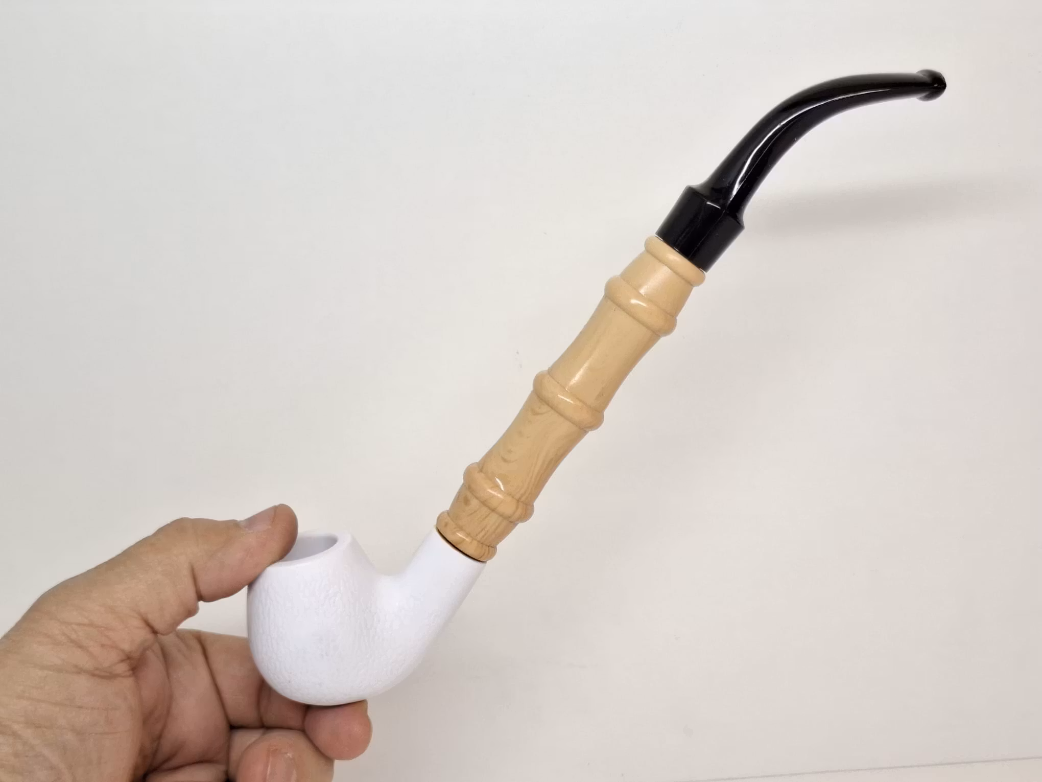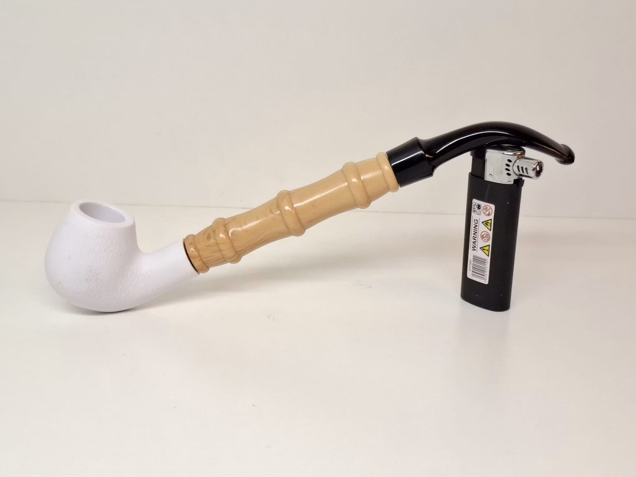 Du köper en lång pipa som är tillverkad i Kina. Pipkoppen har en unik vit färg. Pipan kommer i en förpackning av hård kartong (med lentyg på insidan).