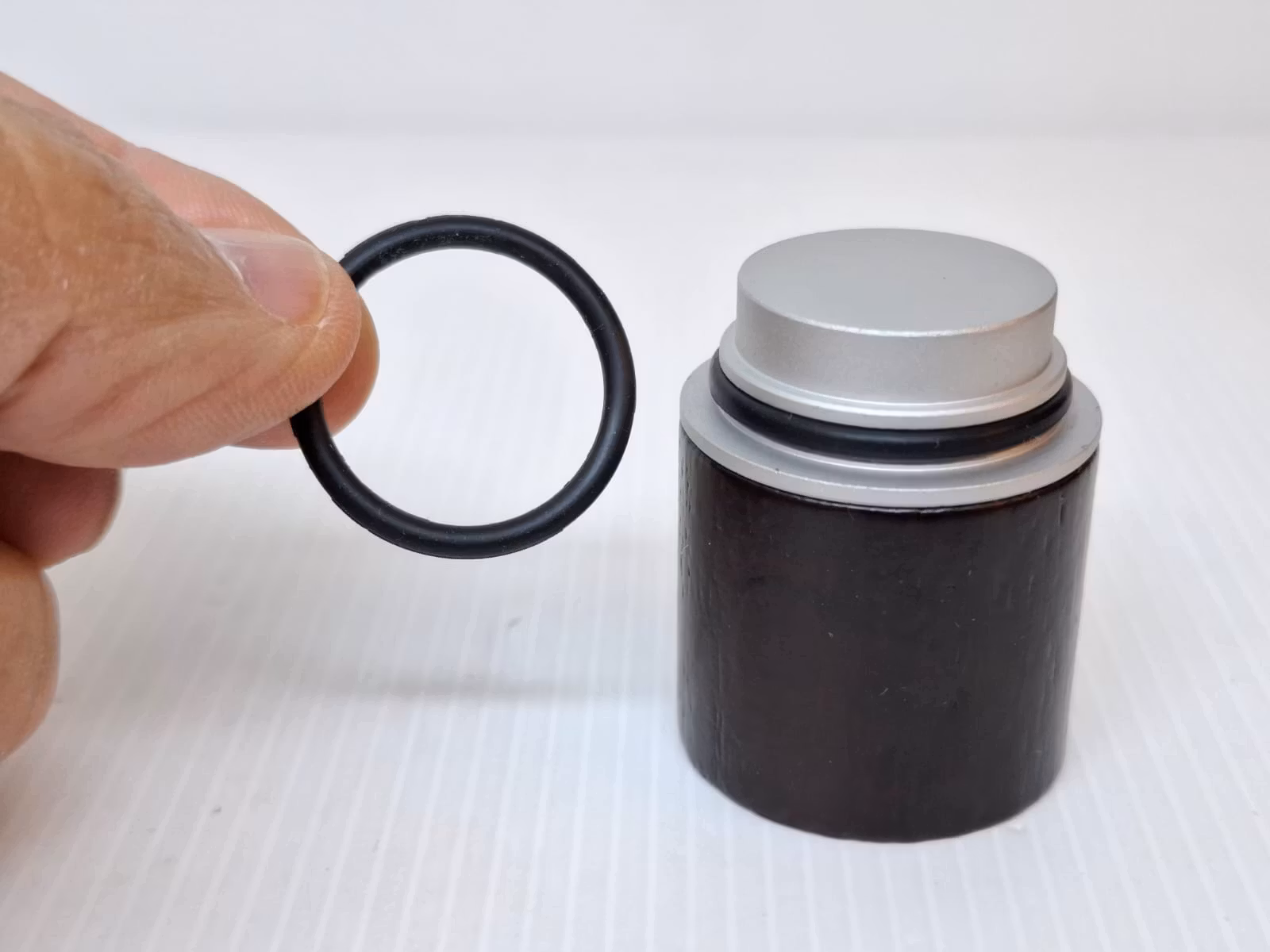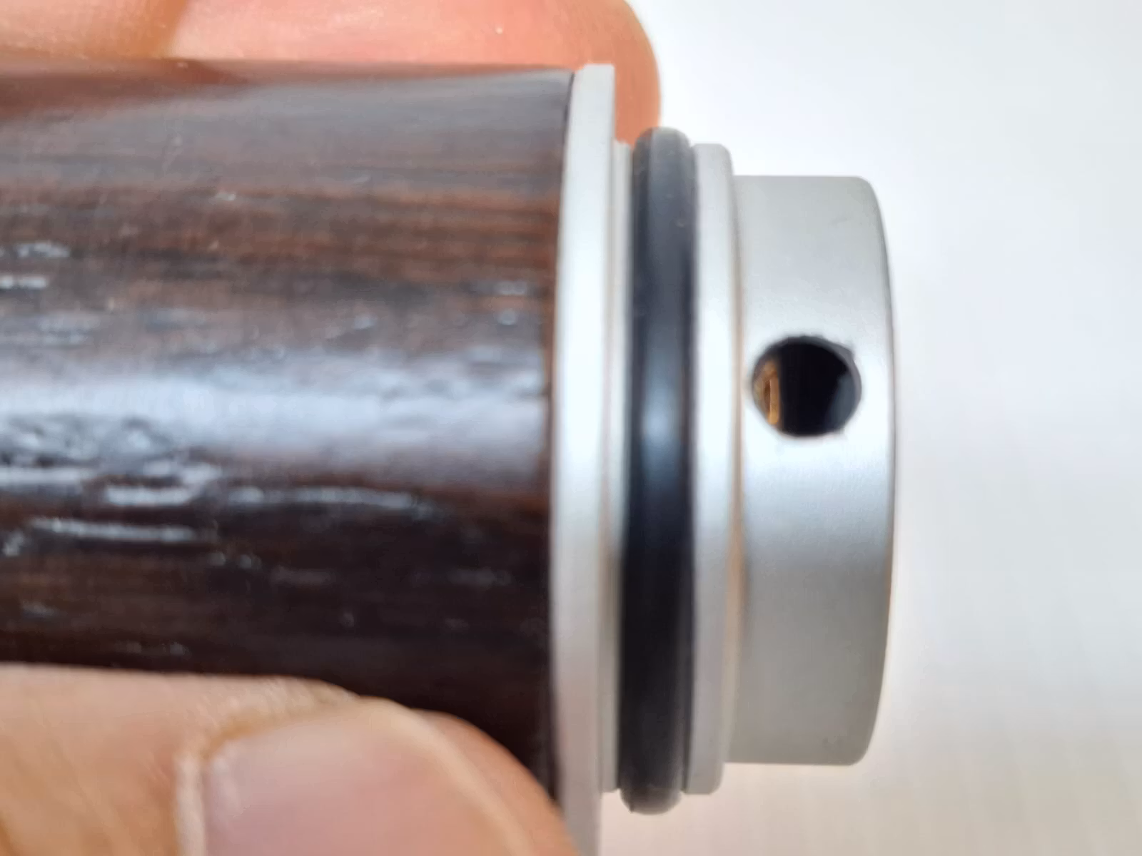 3) En extra gummiring. Denna gummiring är en reservdel och skall sitta på piphuvudets undersida (alltså på aluminiumdelen, se bilder). Finessen med denna ring är att skapa täthet, så att piphuvudet sitter tätt på pipstammen. Det sitter redan en gummiring på aluminiumdelen, så det medföljer alltså en extra gummiring separat som reserv.