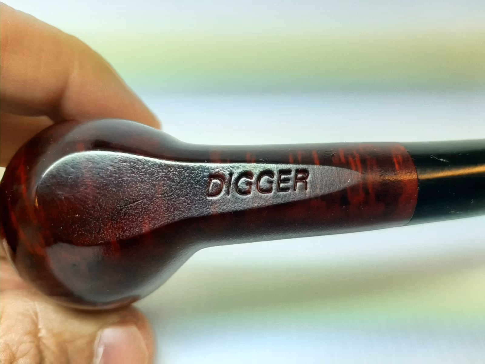 Du köper en äkta Digger pipa (rak) som är tillverkad i Italien. Den är gjord av Briarträ. Diggerpipan känns igen av den utbytbara koppen för enkel rengöring. Dessutom kan Diggerpipan stå utan stöd då den har plan botten. På undersidan av pipan finns texten "DIGGER" inristat. En pipask / presentask medföljer.