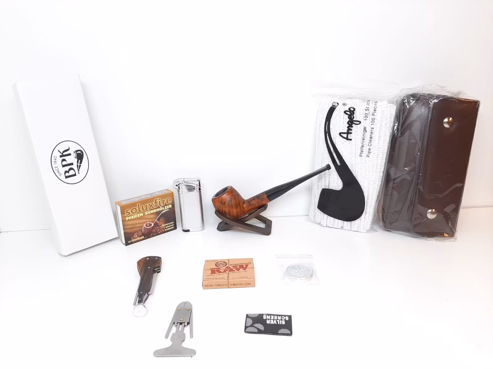 1) En rak pipa som är tillverkad av äkta Briarträ. På sidan av pipan finns texten "BPK" inristat. Pipan är tillverkad av BPK i Tjeckiska Republiken som har tillverkat pipor sedan generationer tillbaka. Pipan är ca ca 15 cm lång och väger ca 42 gram. En exklusiv pipask från BPK medföljer.