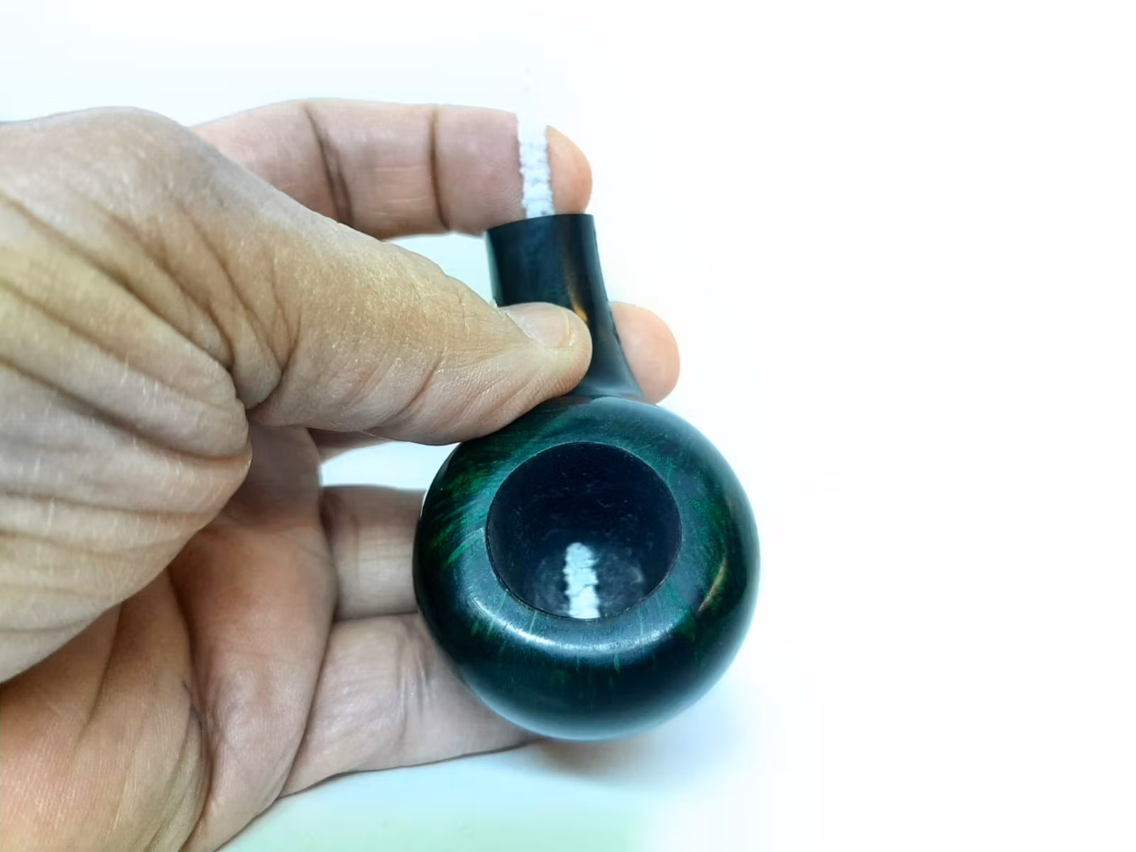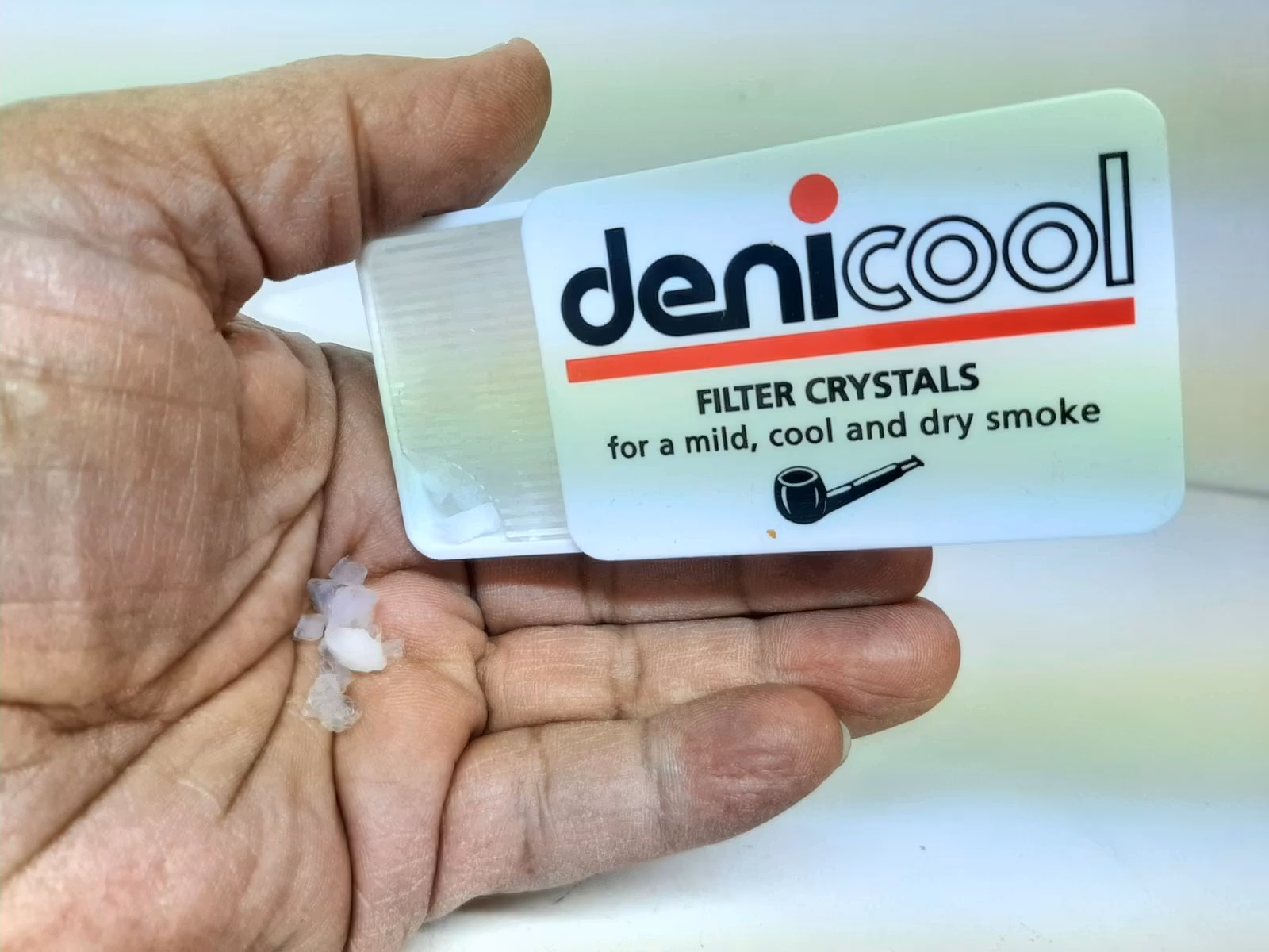9) En ask med kristaller (12 gram) från det tyska märket Denicool. Dessa kristaller placeras längst ner i pipkoppen och piptobaken ovanpå kristallerna. Finessen med dessa kristallstenar är att de absorberar ytterligare fukt vilket leder till en torr piprökning samtidigt som tobaken behåller sin smak. Dessutom så har den kylande egenskaper som gör rökningen mild samt att kristallerna reducerar halter av tjära och nikotin, vilket man kan se efter piprökningen då de genomskinliga kristallerna nu har blivit brunfärgade.